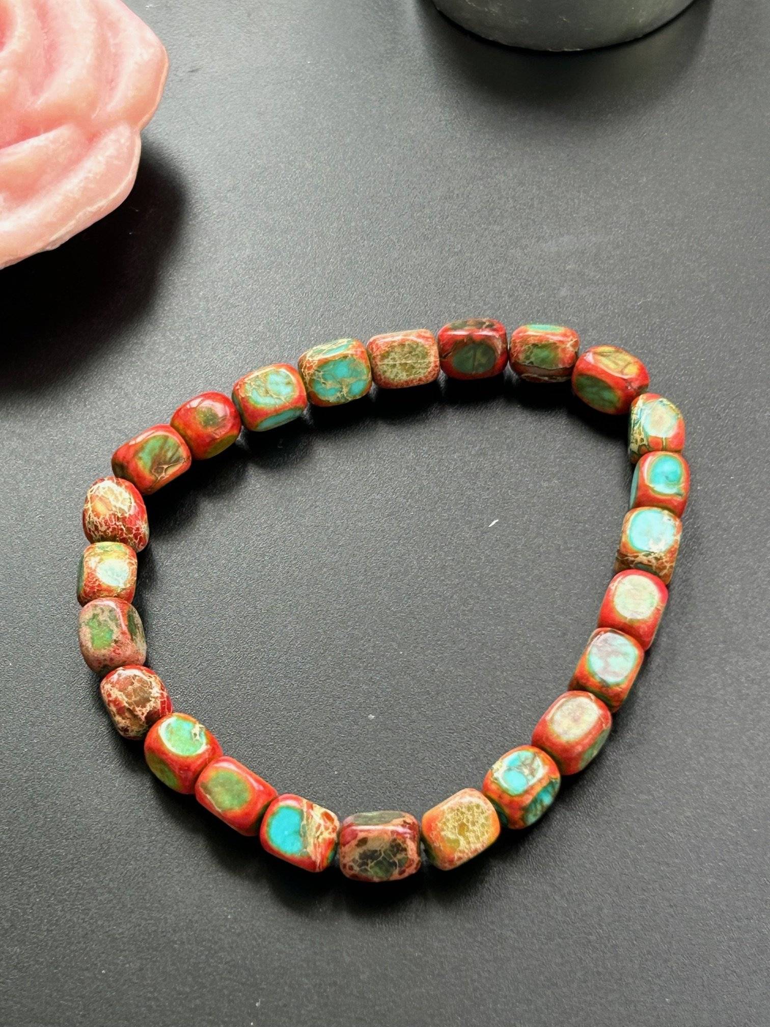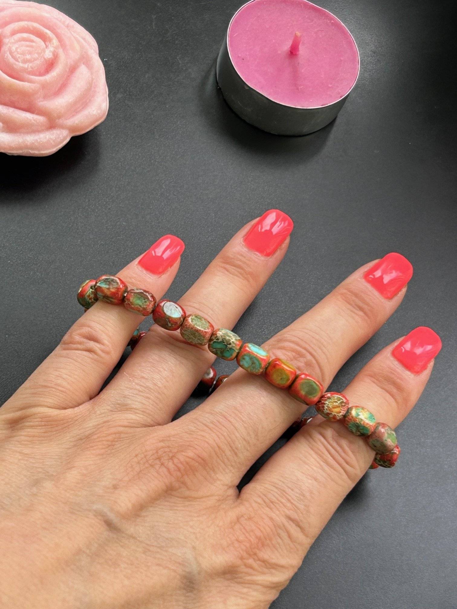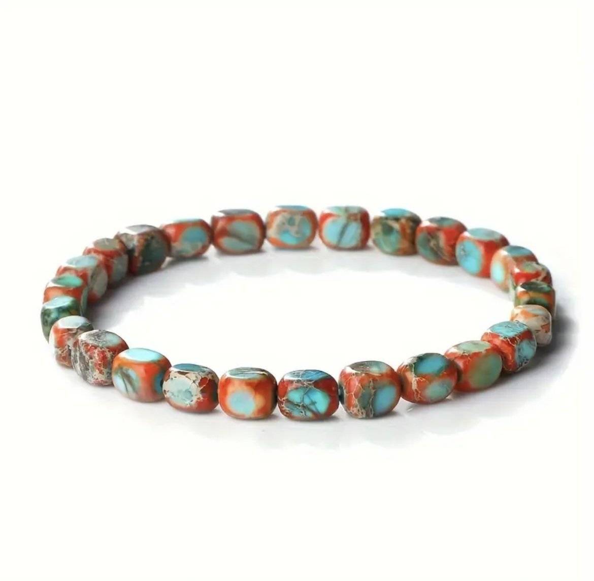 Circumferința brățării este de aprox. 18 cm, pietrele sunt înșirate pe fir silicon elastic.