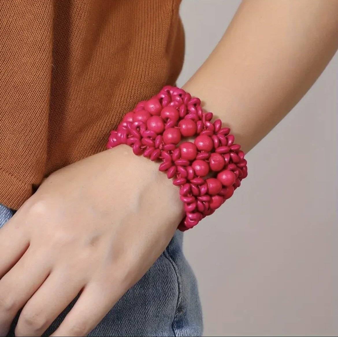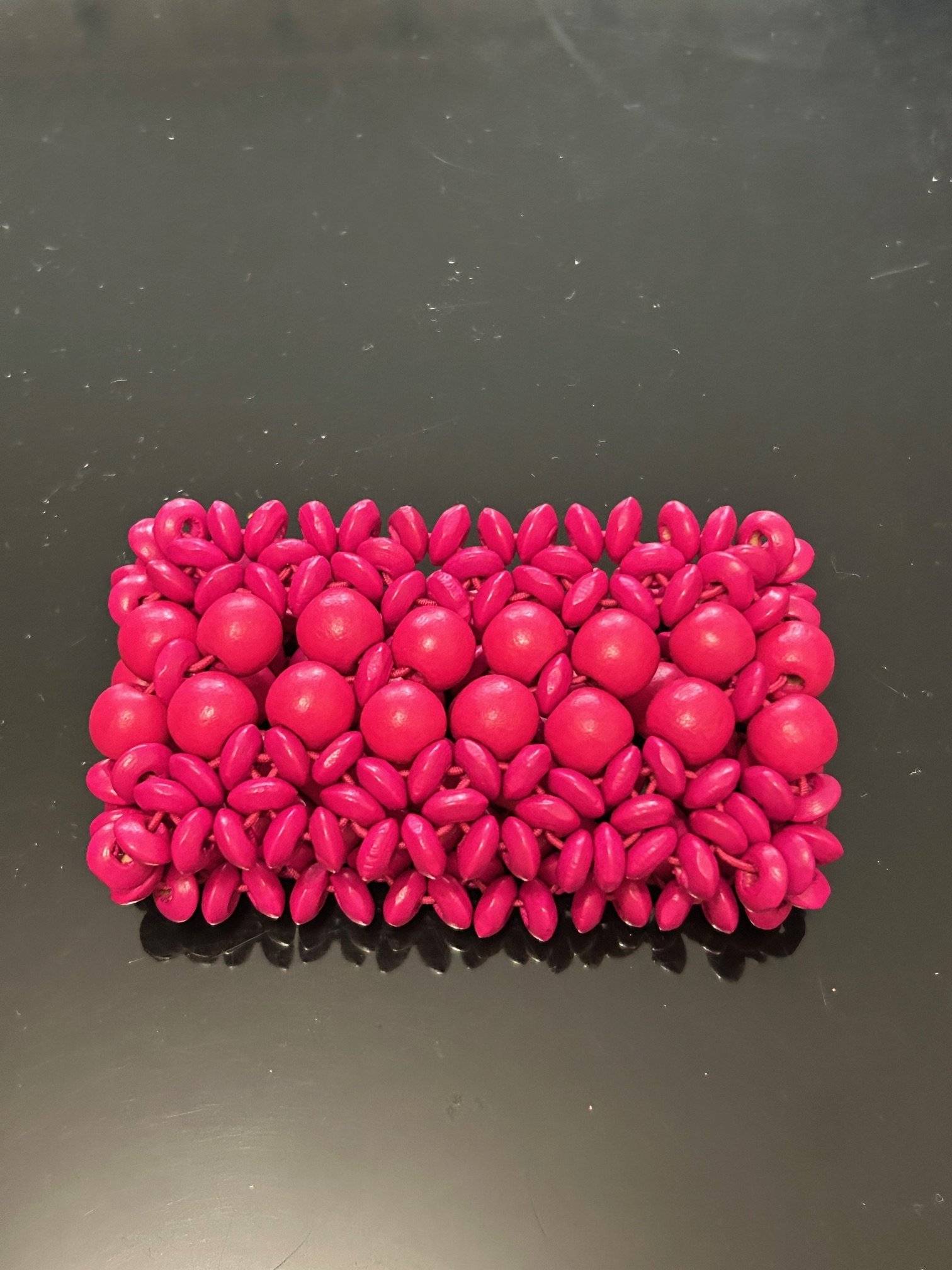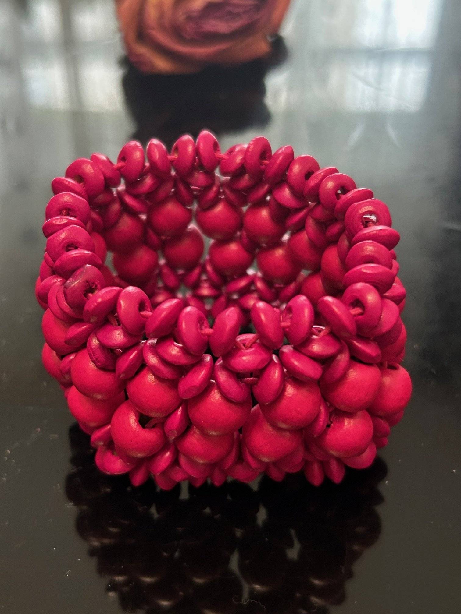 Brățară din lemn colorat, culoare roz fucsia, lucrată manual.