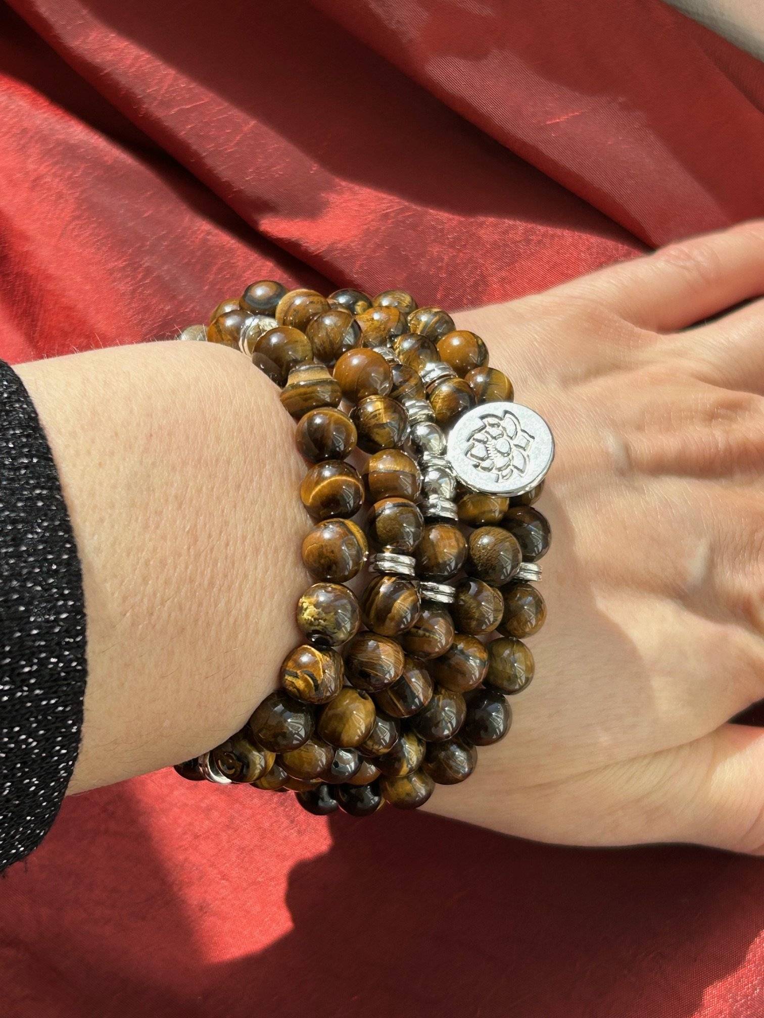 Poate fi și înfășurat de mai multe ori pe mână, ca o brățară, baza pe care sunt înșirate mărgelele de ochi de tigru fiind elastică.