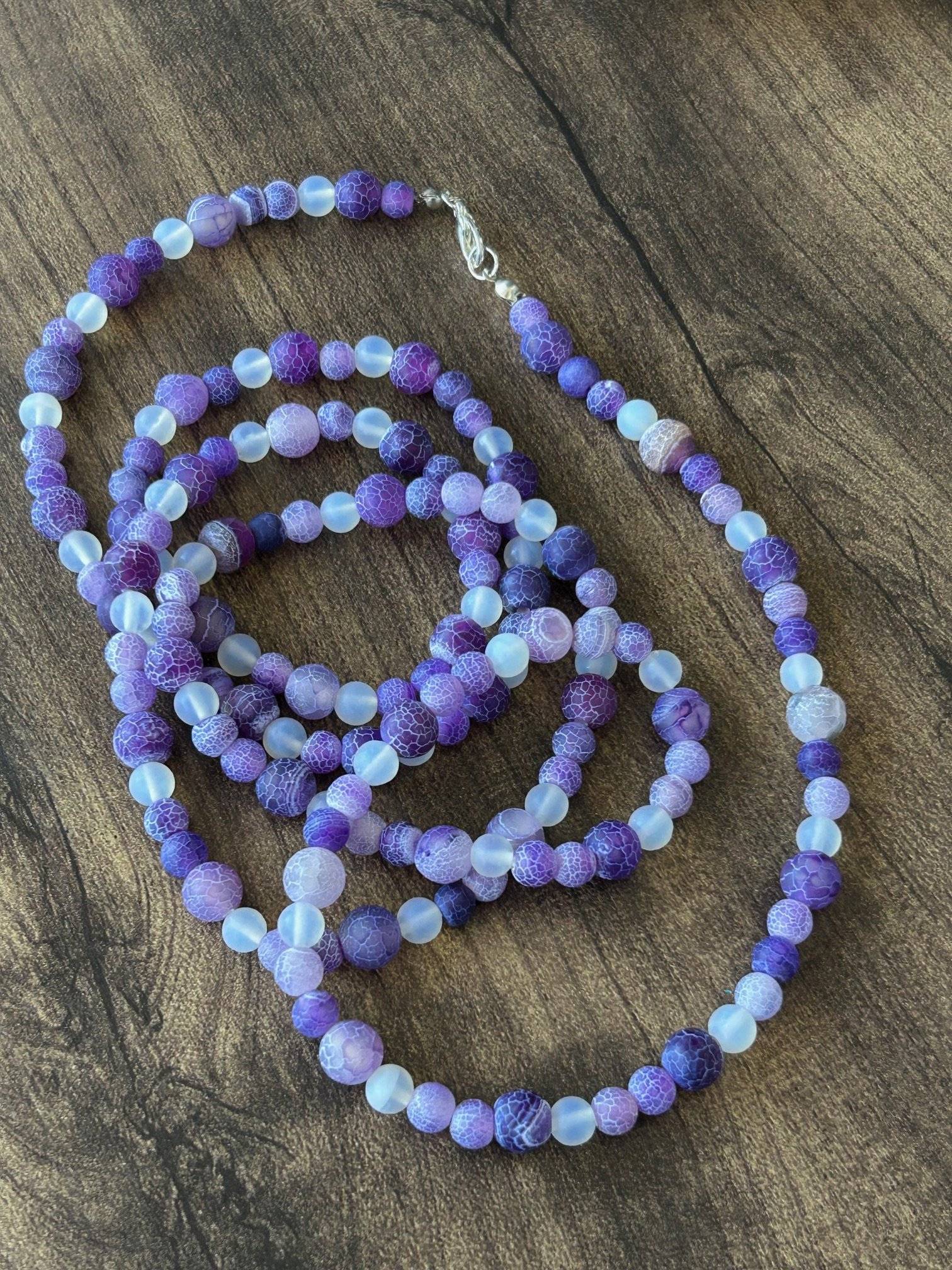 - agat frosted mov, sfere cu dimensiunea de 6 și 8 mm