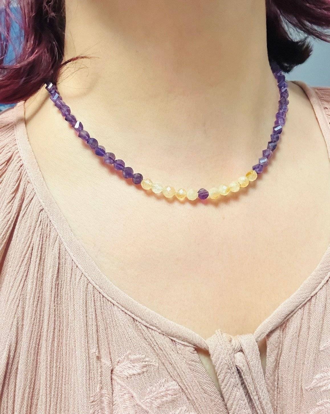 Aceasta este o bijuterie cu pietre semiprețioase de calitate, potrivite pentru a fi dăruite la orice ocazie. Ametistul este, prin excelență, piatra spiritualității și a vindecării emoționale, iar citrinul, o piatră solară, este recunoscut ca fiind cristalul prosperității și al succesului în afaceri.