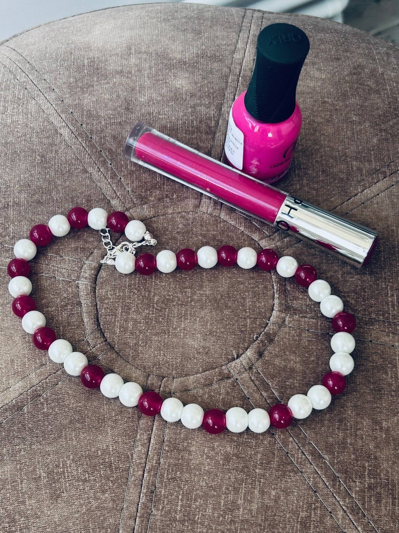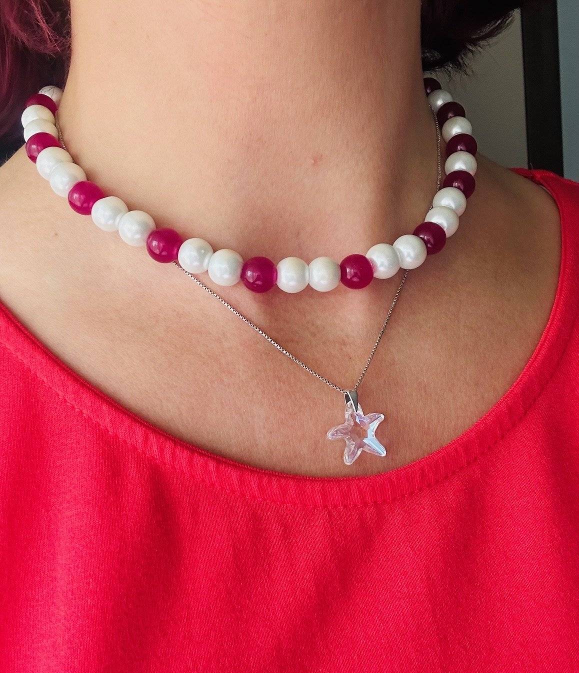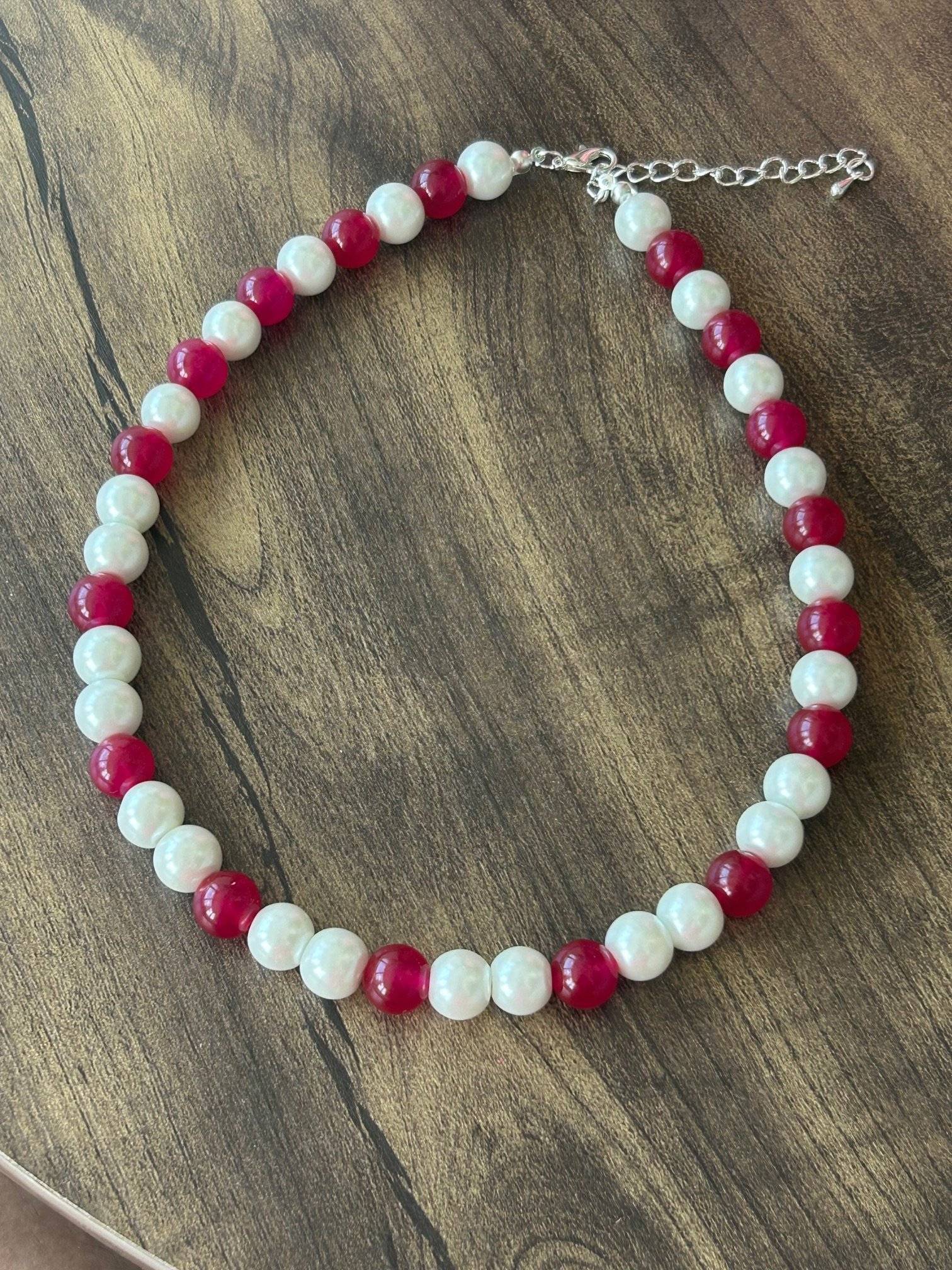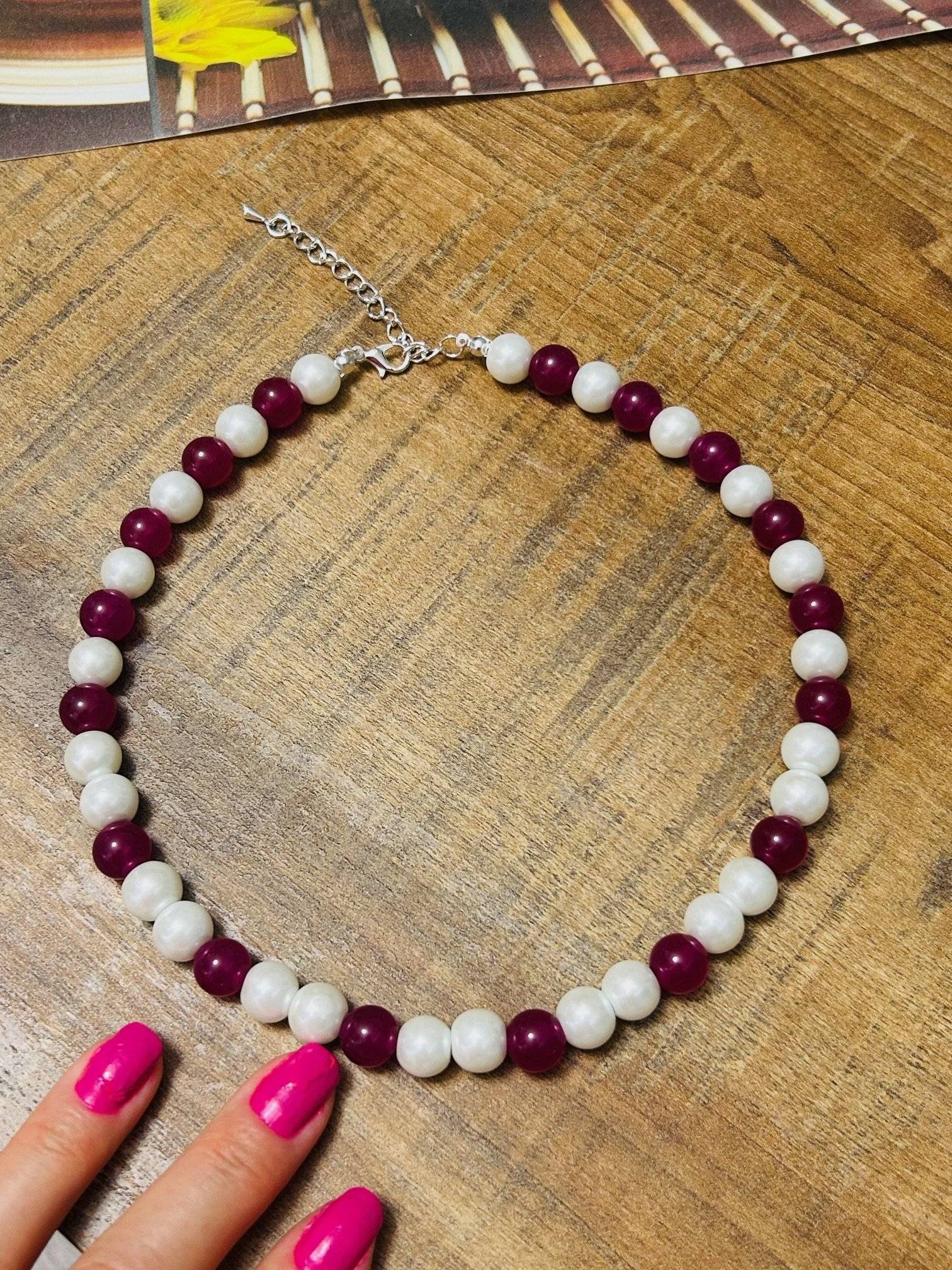 Pietrele sunt înșirate pe fir oțel siliconat de 0,45 mm grosime, iar închiderea se face cu închizătoare lobster, din aliaj placată cu argint și lănțișor prelungitor de 7 cm. Pietrele semiprețioase pot prezenta mici diferențe de nuanță de la o piatră la alta, iar culoarea poate varia puțin în funcție de setările monitorului Dvs.