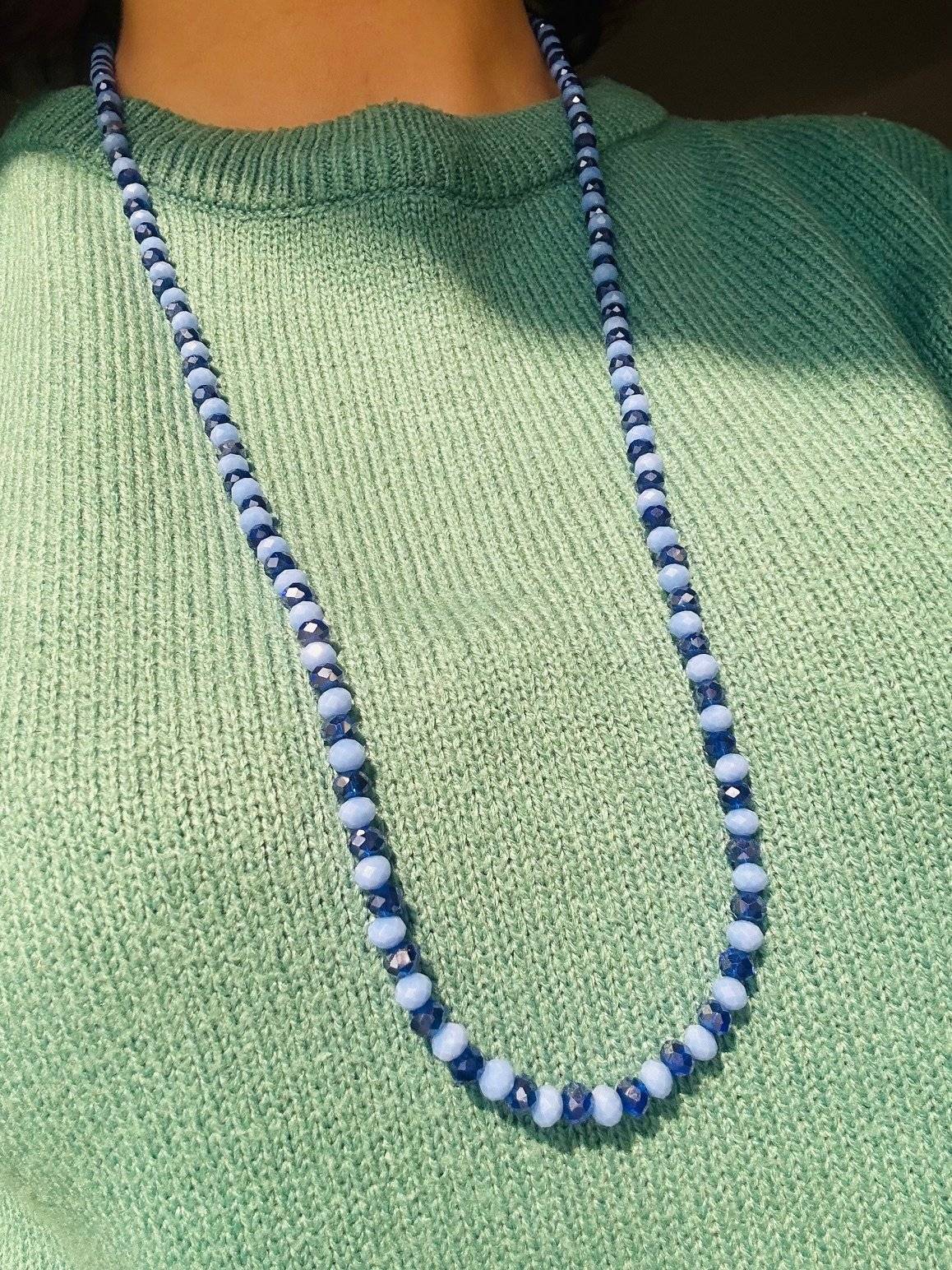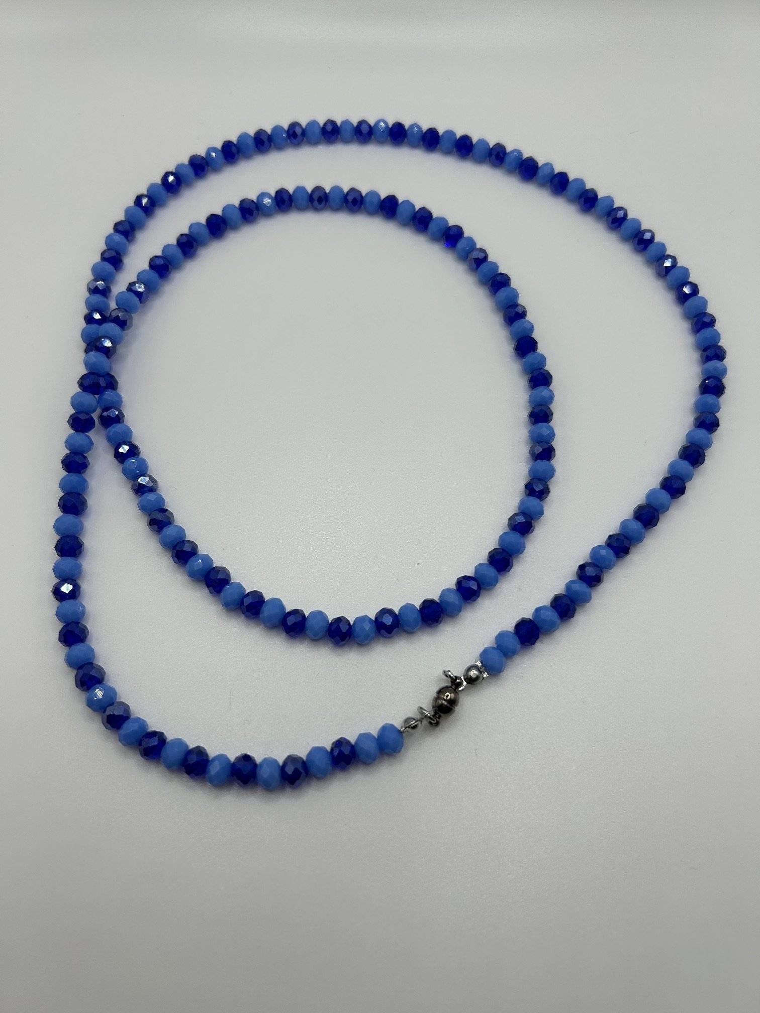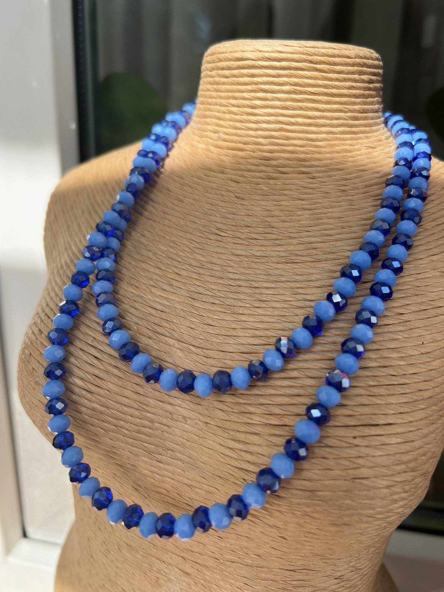 Un colier minunat, un albastru ce conferă calm spiritual, înțelepciune și încredere în propria vibrație și abundență. Este confecționat din cristale cu dimensiunea de 6x4 mm.