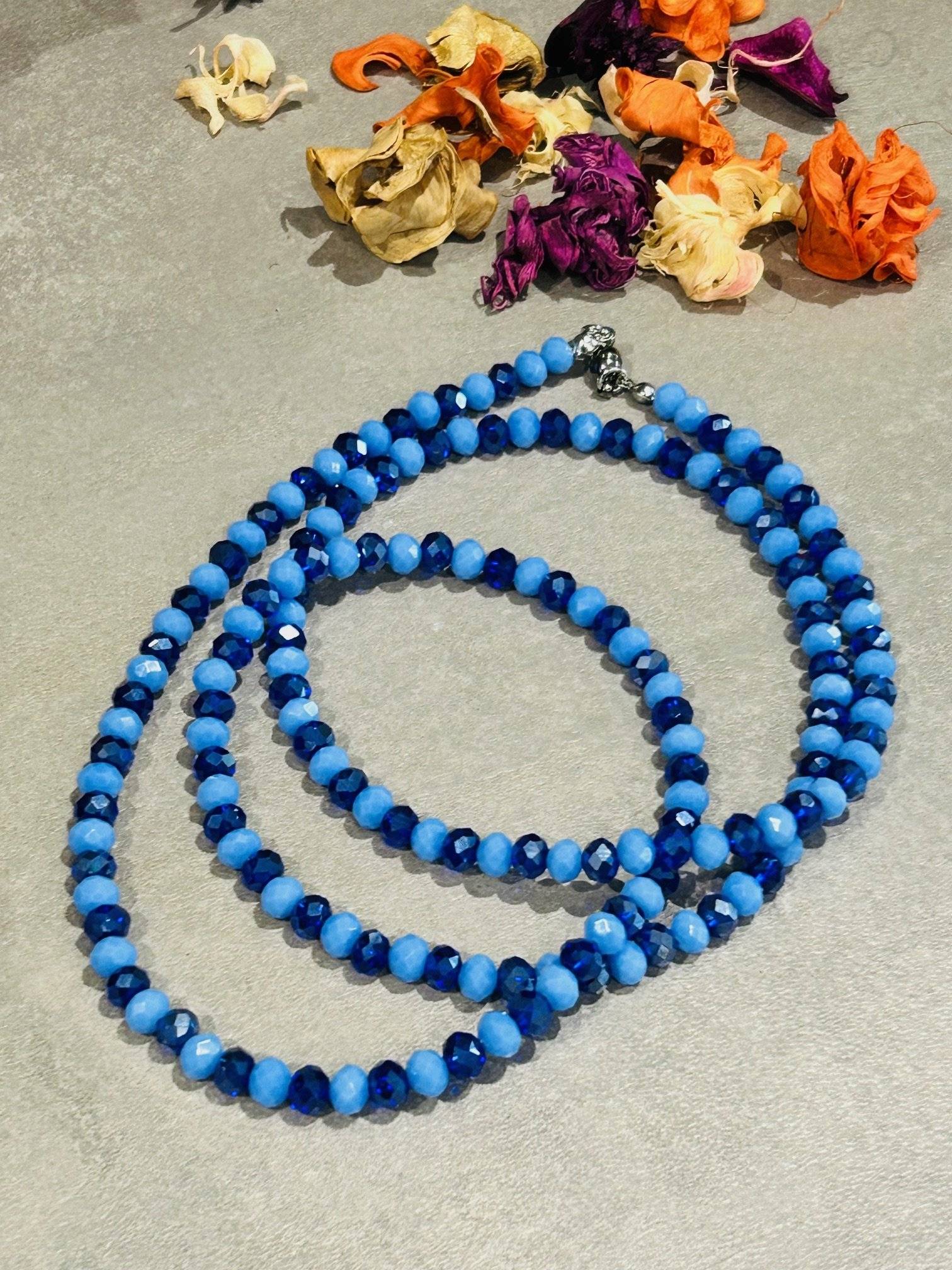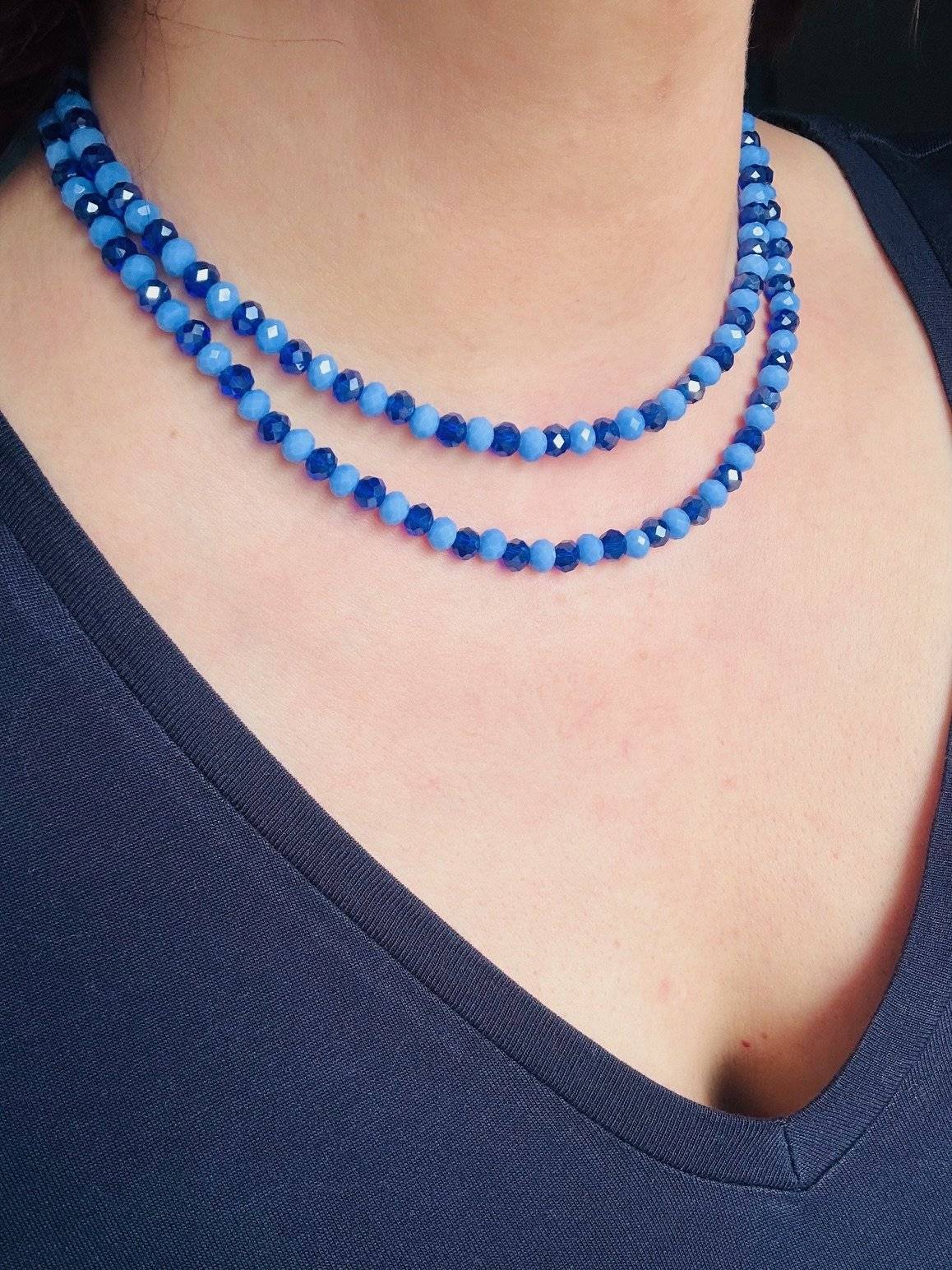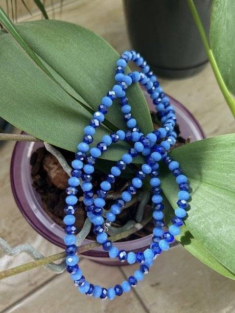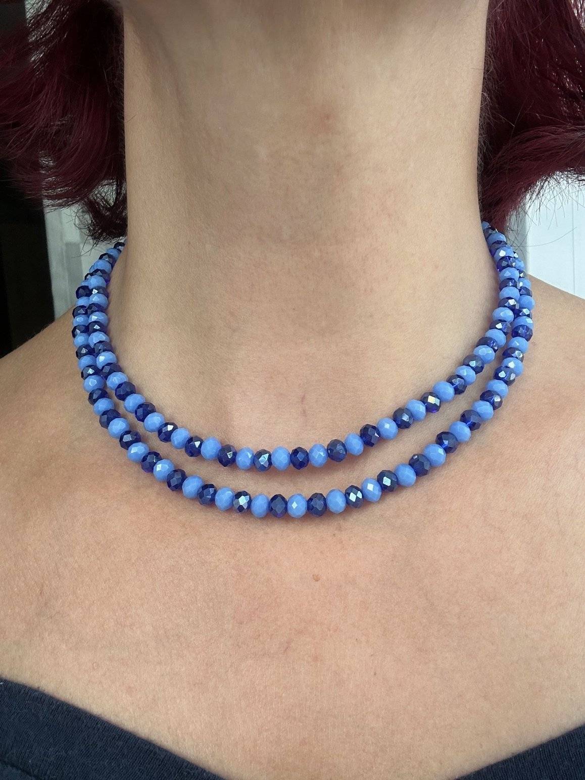 Un colier minunat, un albastru ce conferă calm spiritual, înțelepciune și încredere în propria vibrație și abundență. Este confecționat din cristale cu dimensiunea de 6x4 mm.
