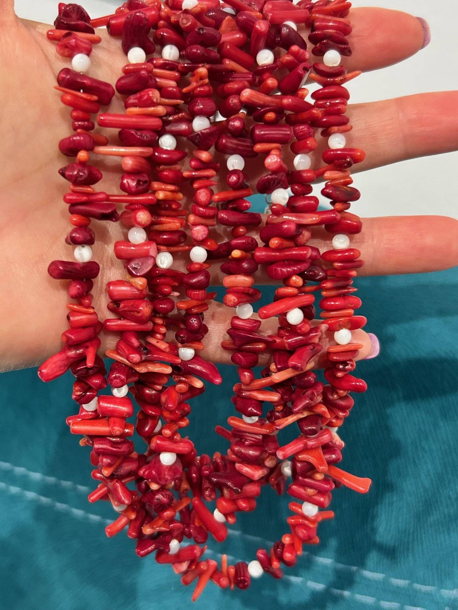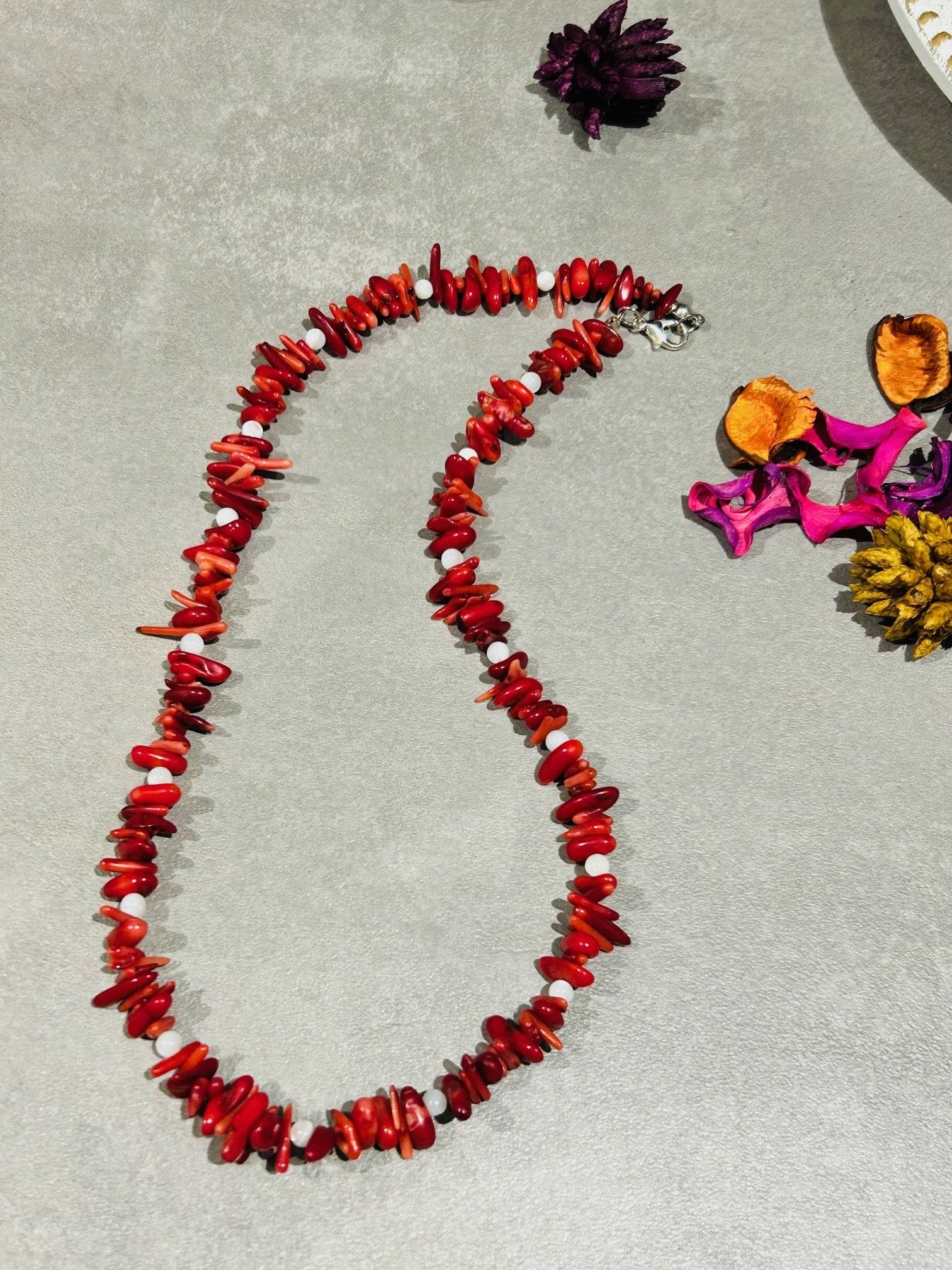 Un colier din coral autentic cu adevărat deosebit! Ideal de purtat în vara aceasta la mare, cu o rochie vaporoasă din pânză topită în culori vibrante.