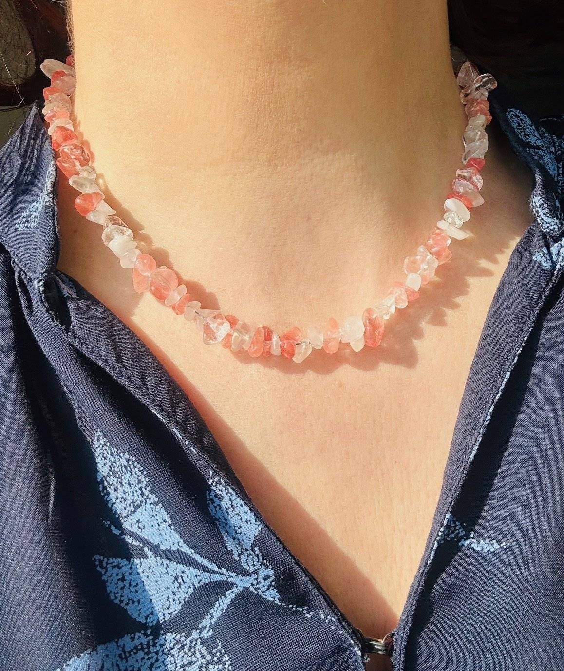 Colierul din chipsuri de pietre semiprețioase este confecționat din: