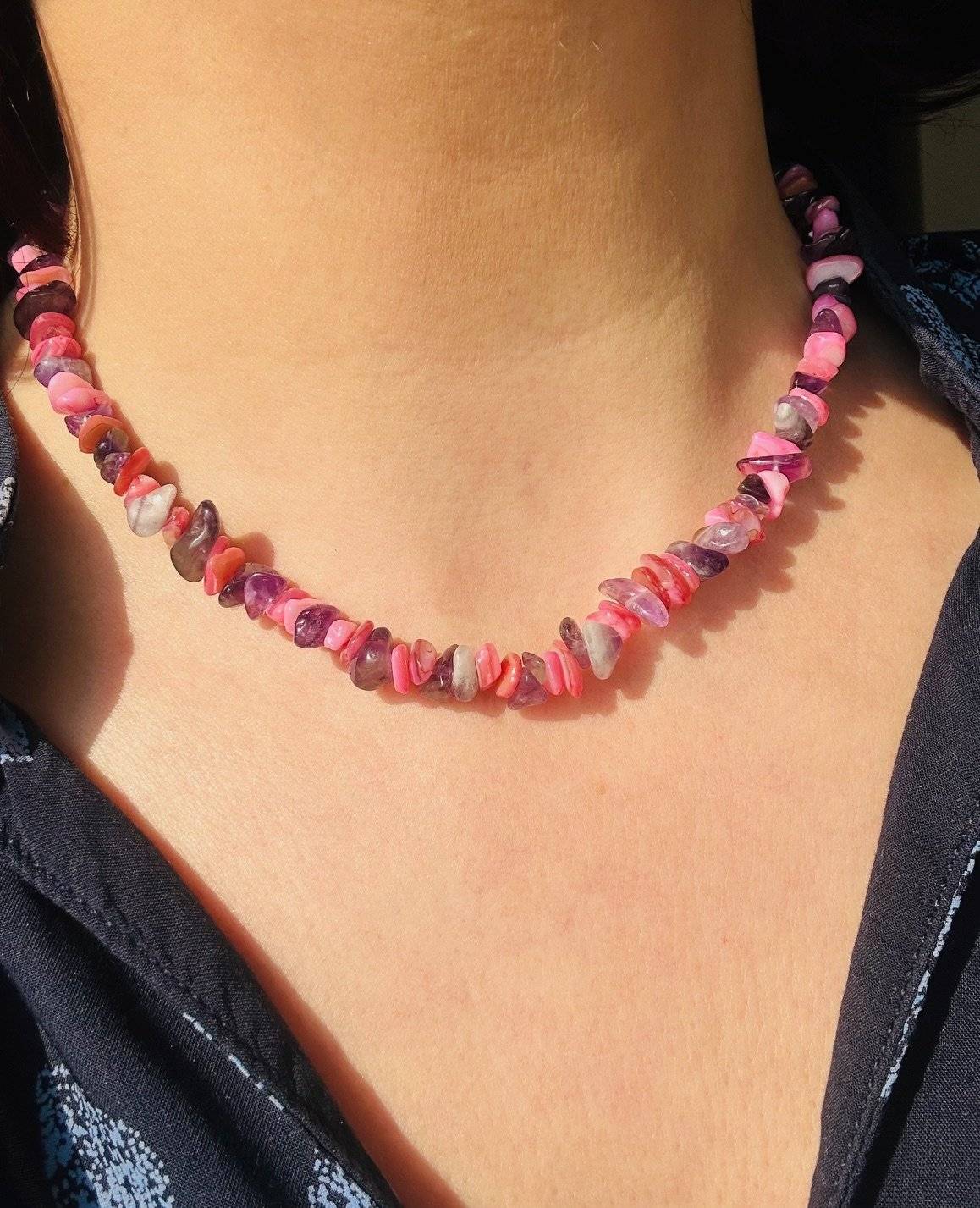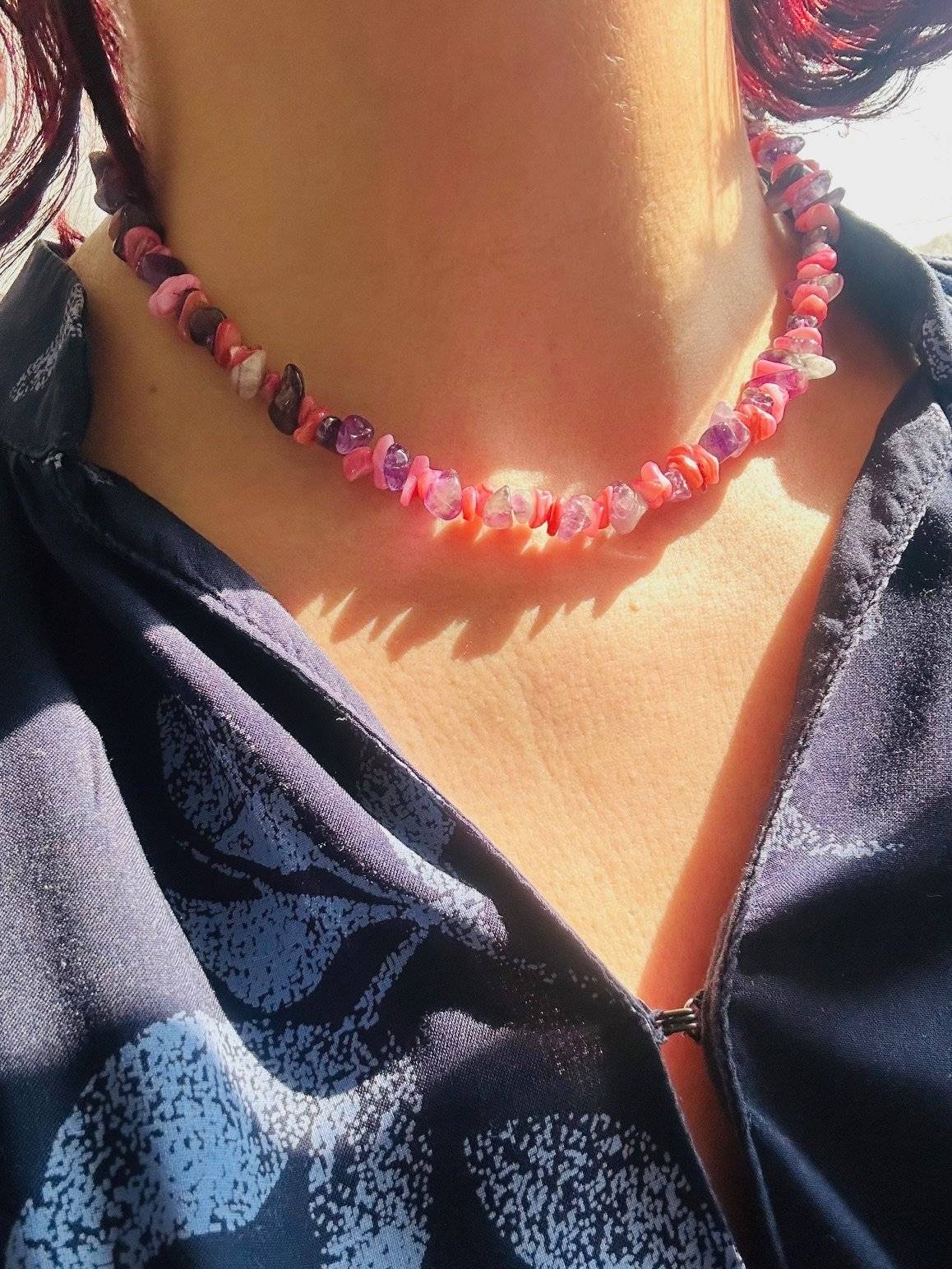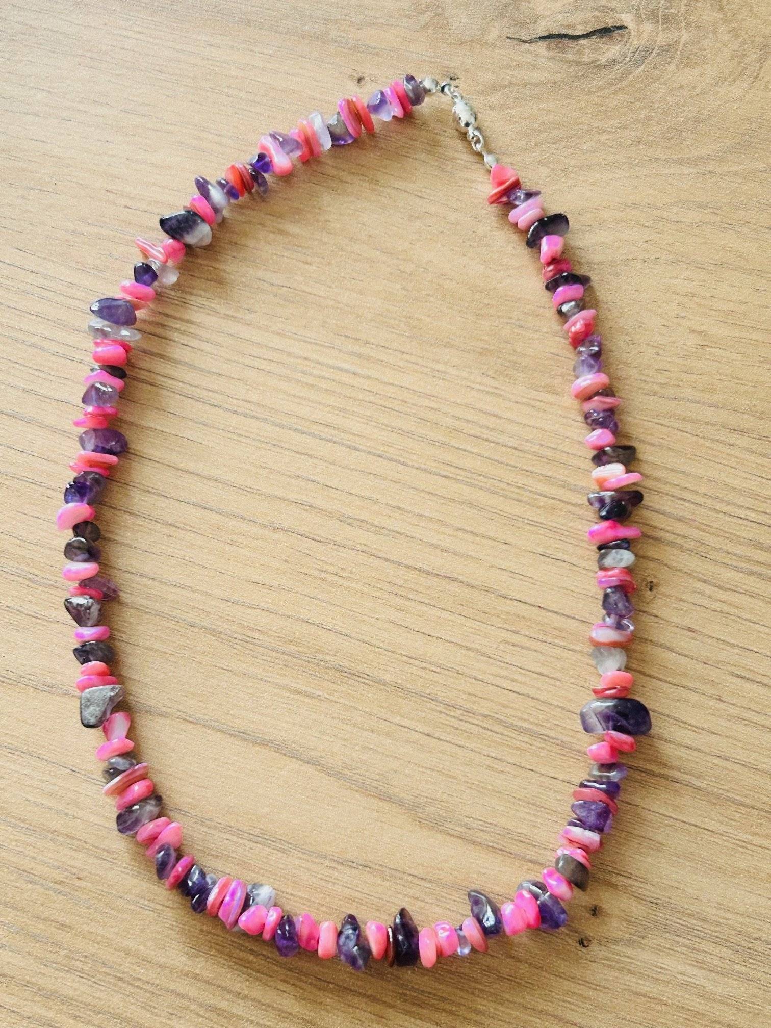 Colierul din chipsuri de pietre semiprețioase este confecționat din: