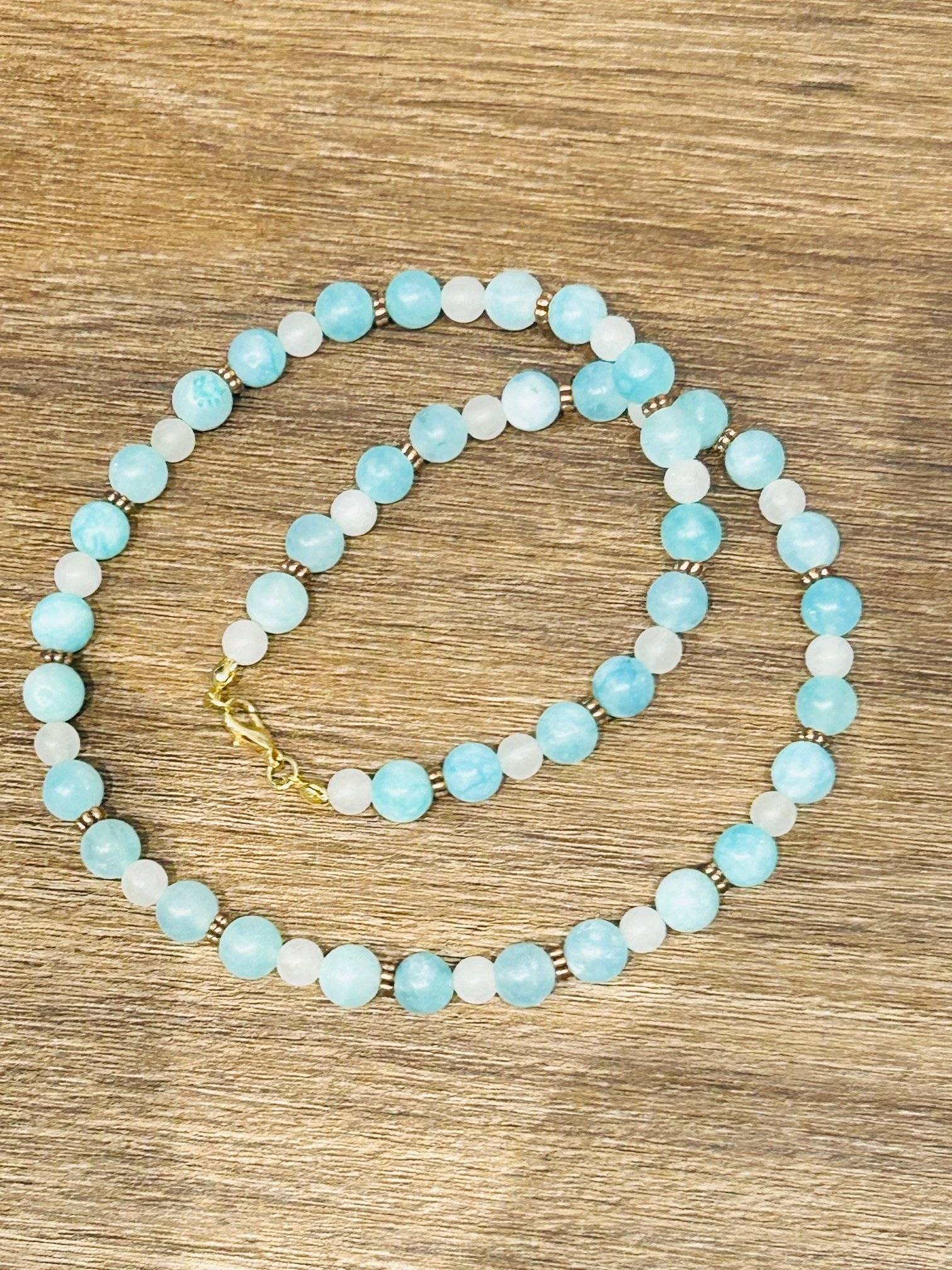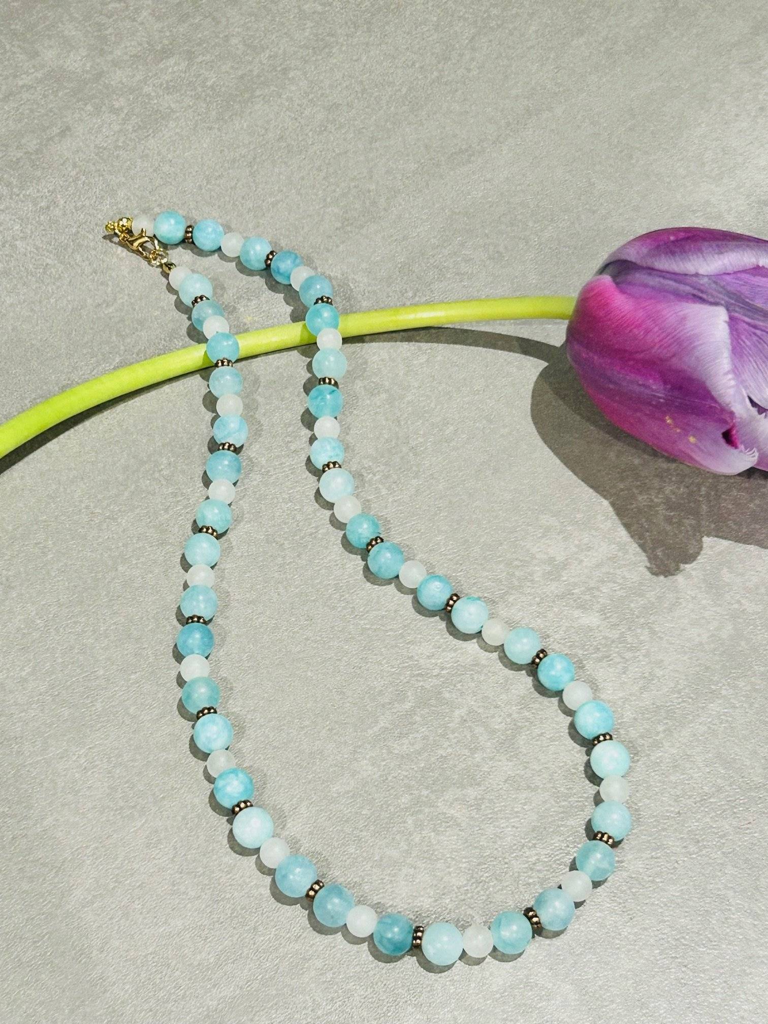Pietrele sunt montate pe fir oțel siliconat de 0,45 mm grosime, iar închiderea se face cu închizătoare lobster din aliaj, culoare aurie. Pietrele semiprețioase pot prezenta diferență de nuanță de la o piatră la alta, iar culoarea poate varia puțin în funcție de setările monitorului Dvs.