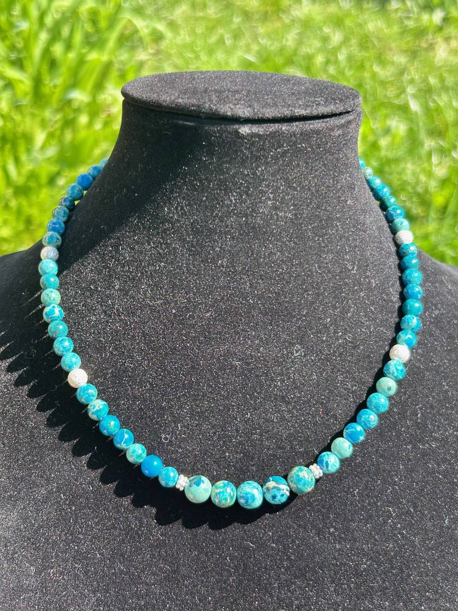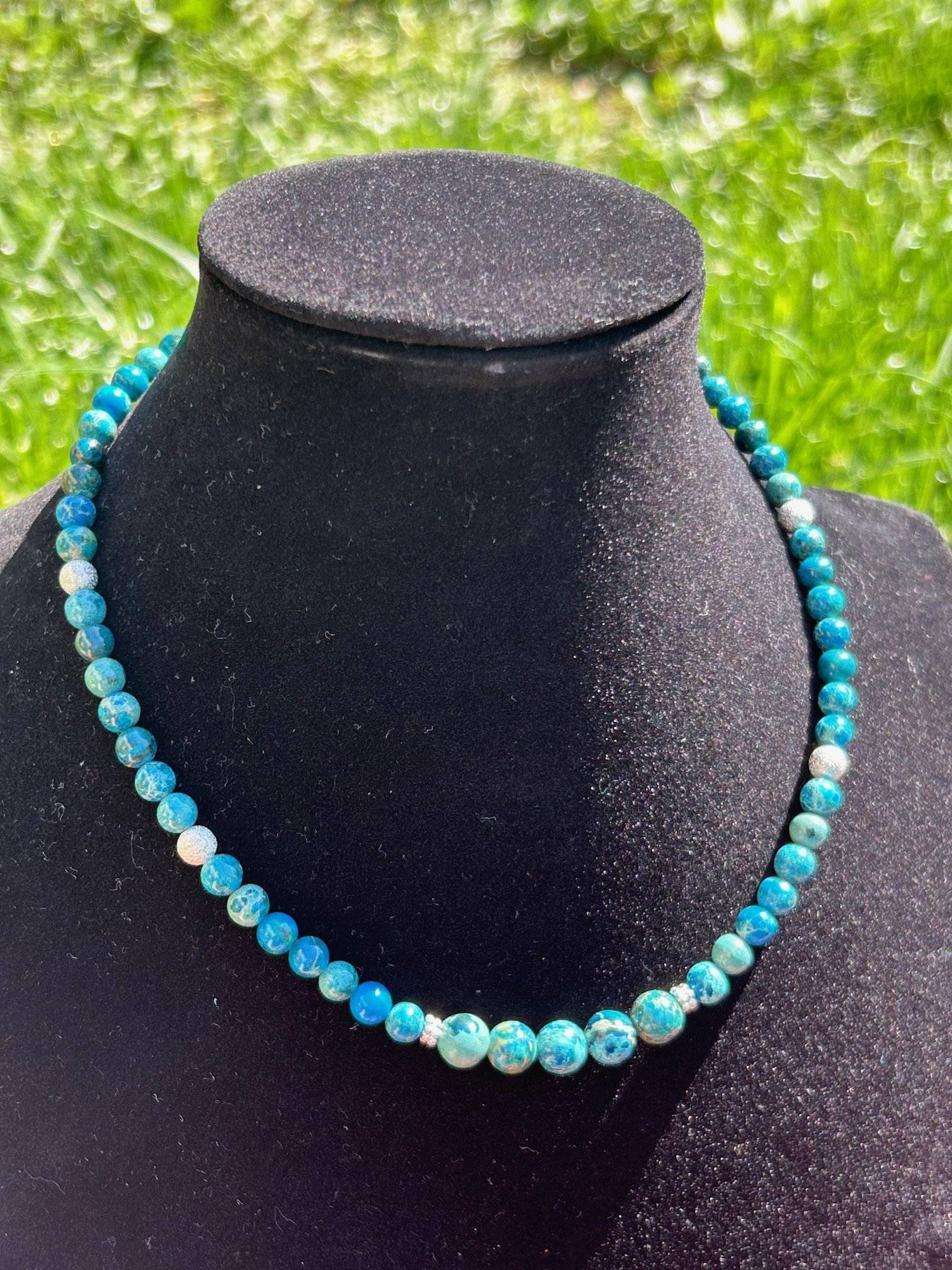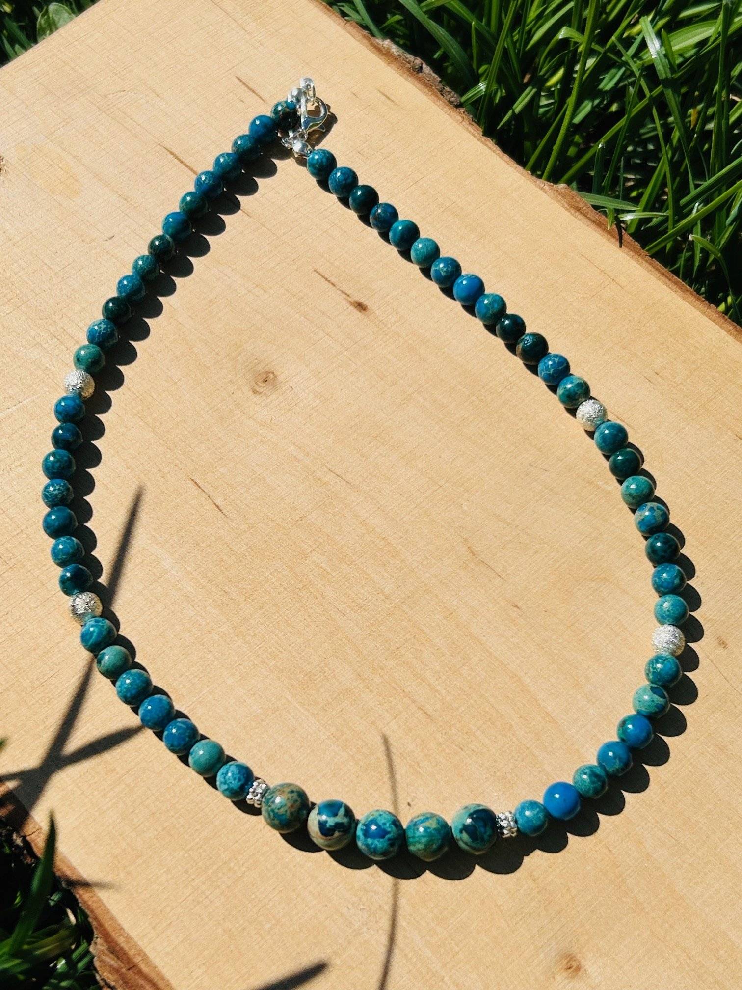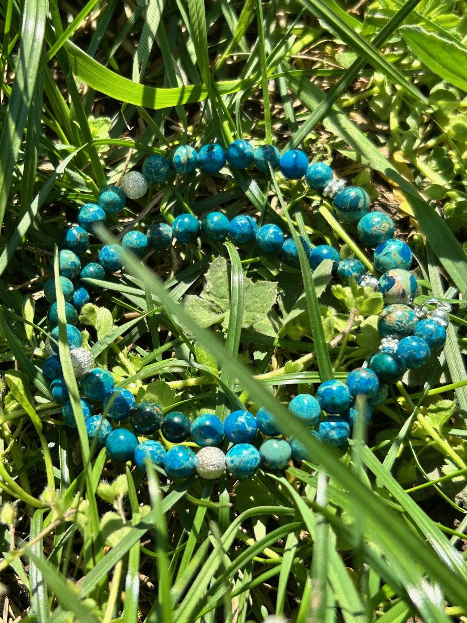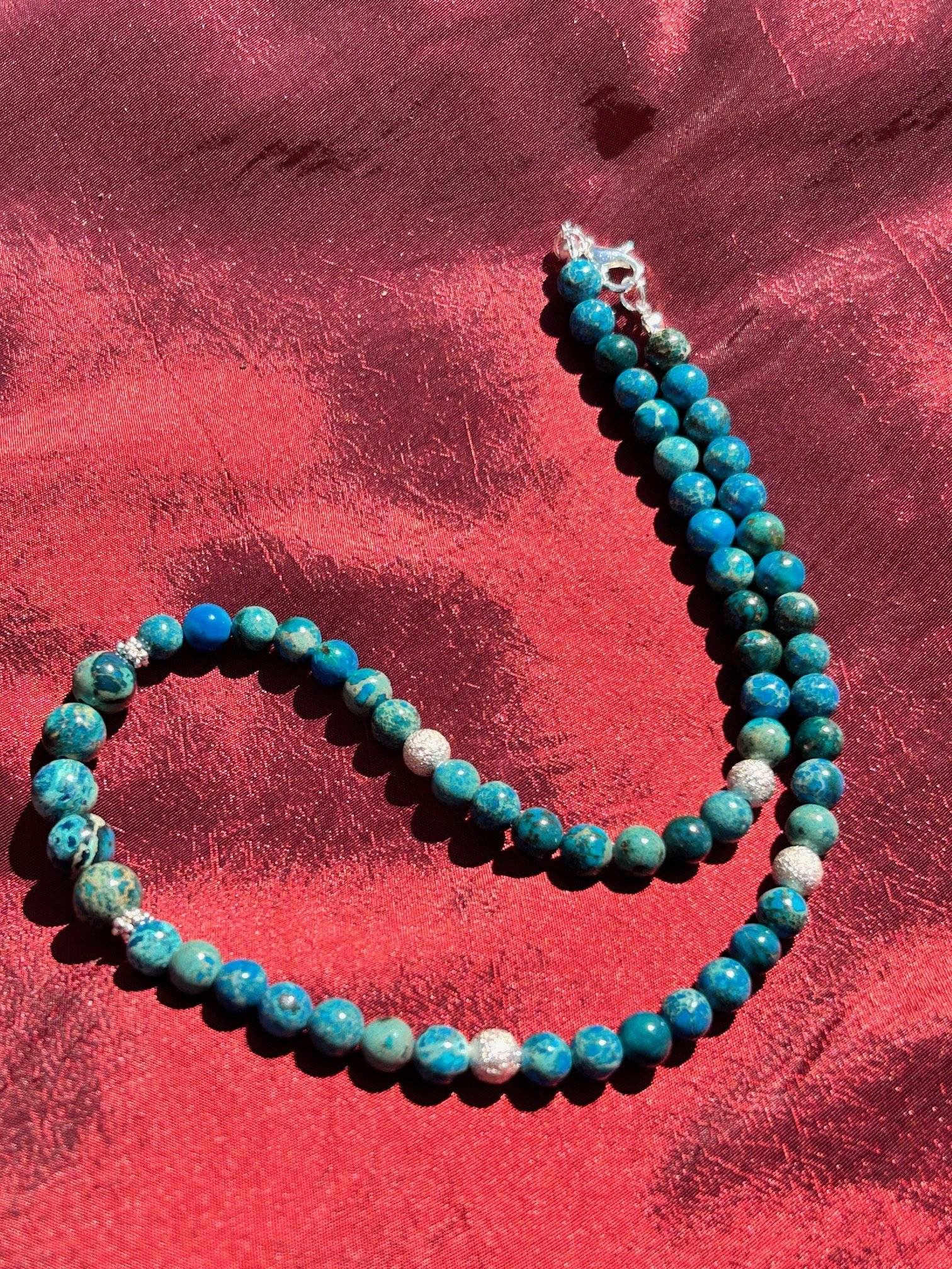 - Jasp Imperial albastru, sfere cu dimensiunea de 6 și 8 mm;