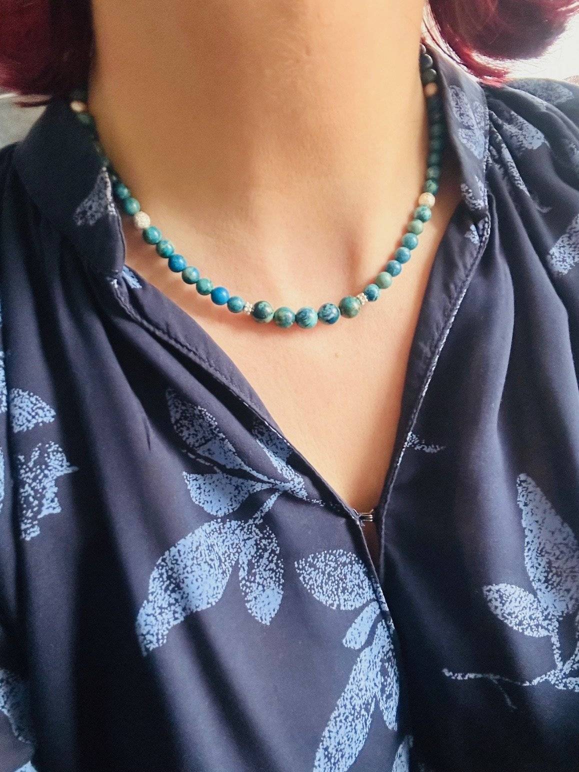 Pietrele semiprețioase sunt montate pe fir oțel siliconat, special pentru bijuterii, de 0,45 mm grosime, iar închiderea se face cu închizătoare magnetică din aliaj placat cu argint. Pietrele semiprețioase pot prezenta mici diferențe de nuanță de la o piatră la alta, acest aspect nefiind nicidecum un defect, ci o dovadă de autenticitate a cristalelor. Culoarea poate varia puțin în funcție de setările monitorului Dvs.