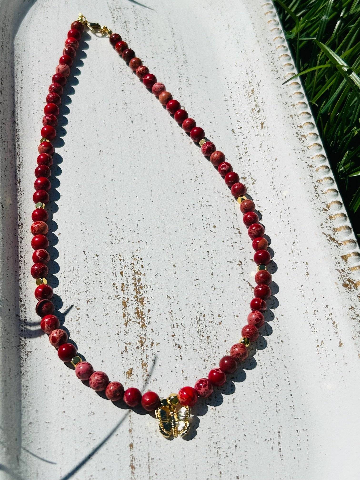 Colierul Akeelah prin pietrele sale ajută la Conectarea la Energiile Pământului și la Impământare, pentru a stimula creativitatea vizuală și tactilă, reducerea stresului, a anxietăților și fricilor. Jaspul Roșu asociat cu Energia Pământului, aduce un sentiment de stabilitate, calm și securitate emoțională.