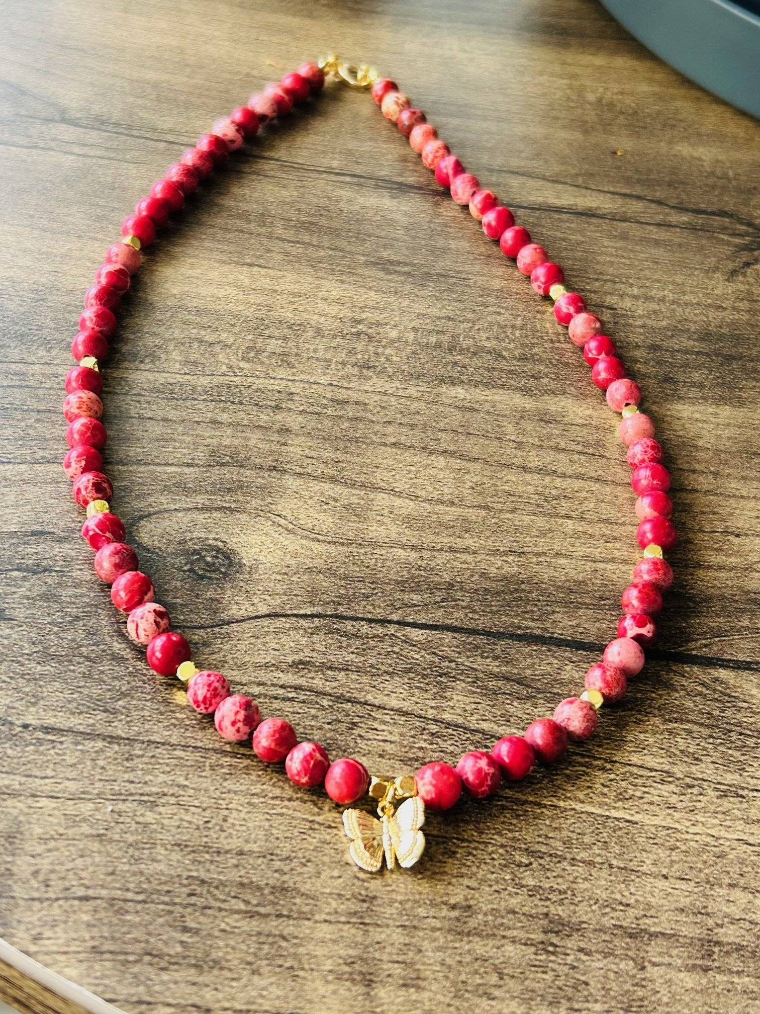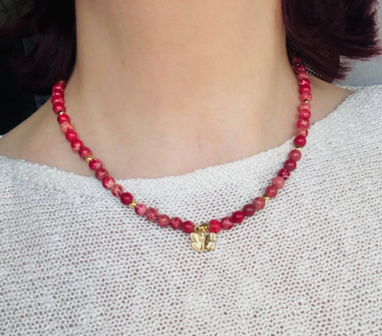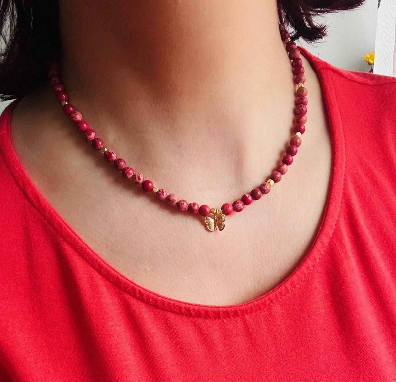 Pietrele sunt montate pe fir oțel siliconat, special pentru bijuterii, de 0,45 mm grosime, iar închiderea se face cu închizătoare lobster din aliaj placată cu aur. Pietrele semiprețioase pot prezenta diferență de nuanță de la o piatră la alta, iar culoarea poate varia puțin în funcție de setările monitorului Dvs.