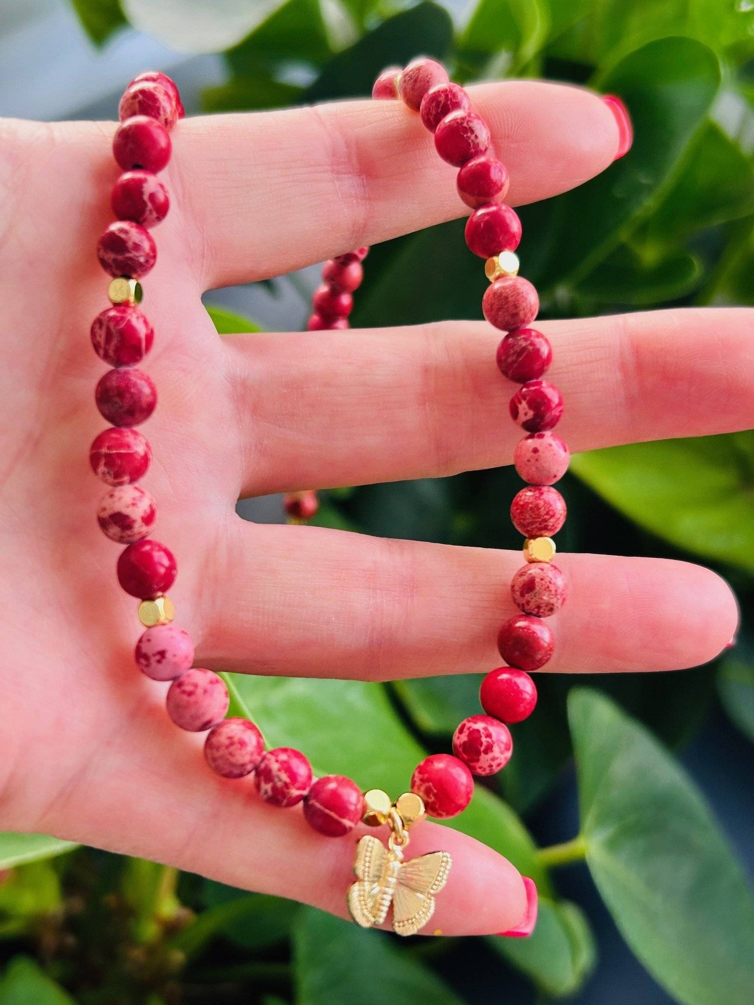 - Jasp Imperial Roșu, sfere cu dimensiunea de 6 mm