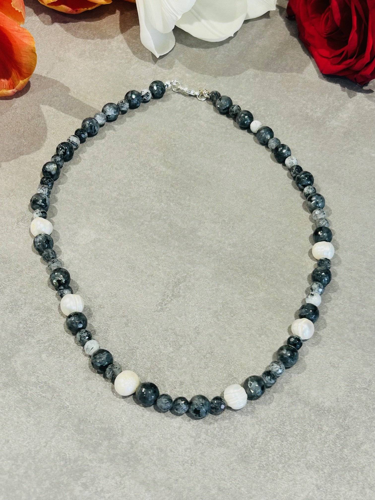 Colierul ODETTE este un colier elegant realizat din labradorit, cuarț rutilat fațetat și perle de cultură, creat pentru femeile care apreciază bijuteriile rafinate și atemporale. Designul său delicat îl face ușor de purtat atât la ținute de zi, cât și la evenimente speciale.