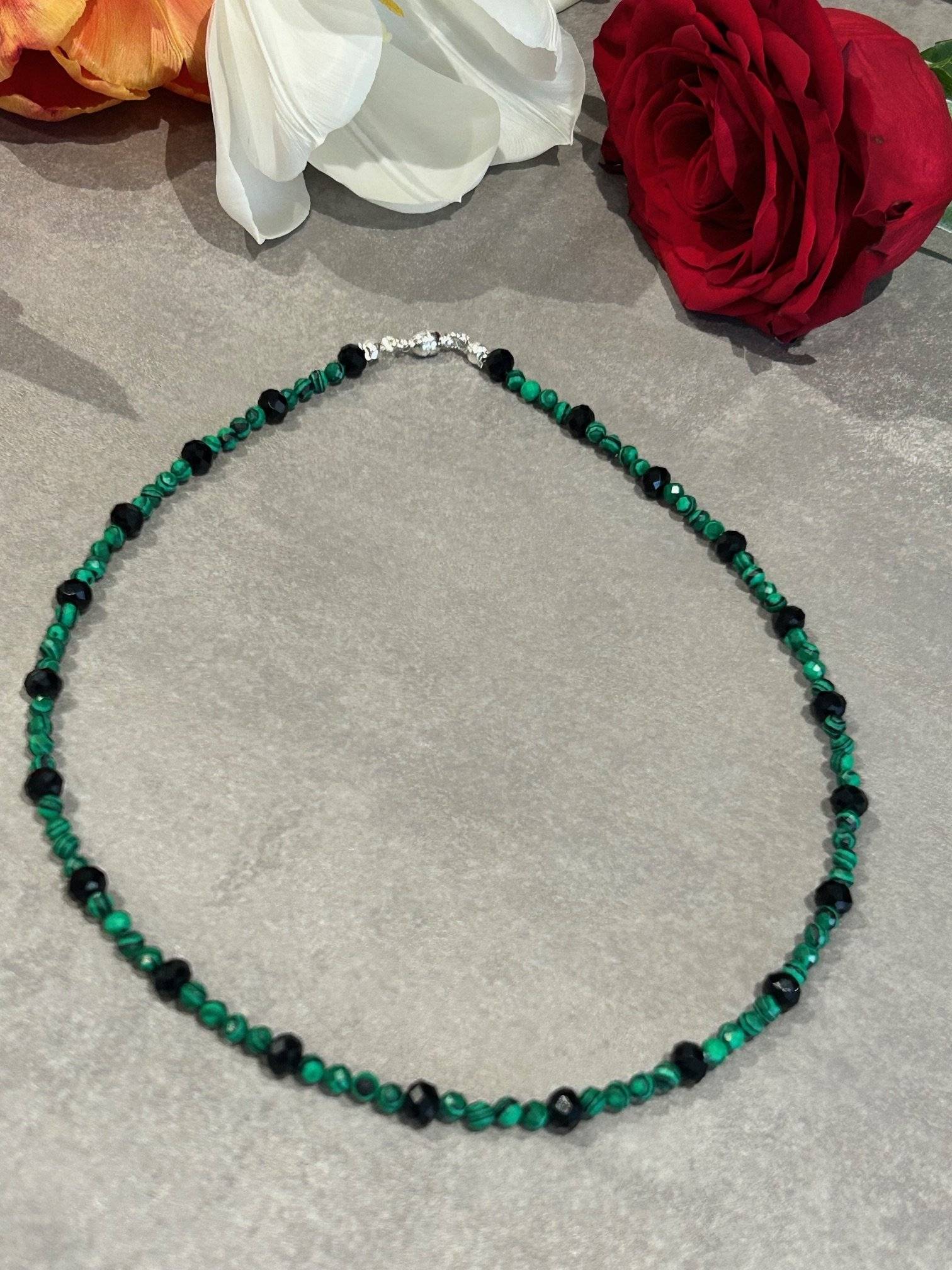 Pietrele sunt montate pe fir oțel siliconat de 0,45 mm grosime, iar închiderea se face cu închizătoare magnetică din aliaj placat cu argint. Pietrele semiprețioase pot prezenta o mică diferență de nuanță de la o piatră la alta, iar culoarea poate varia puțin în funcție de setările monitorului Dvs.