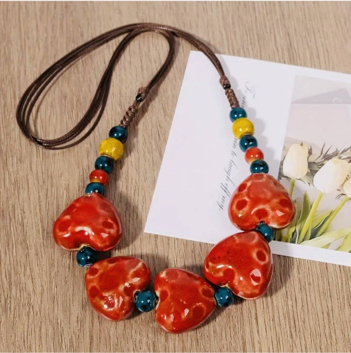 Colier inimioare roșii ceramică THANKFUL HEART