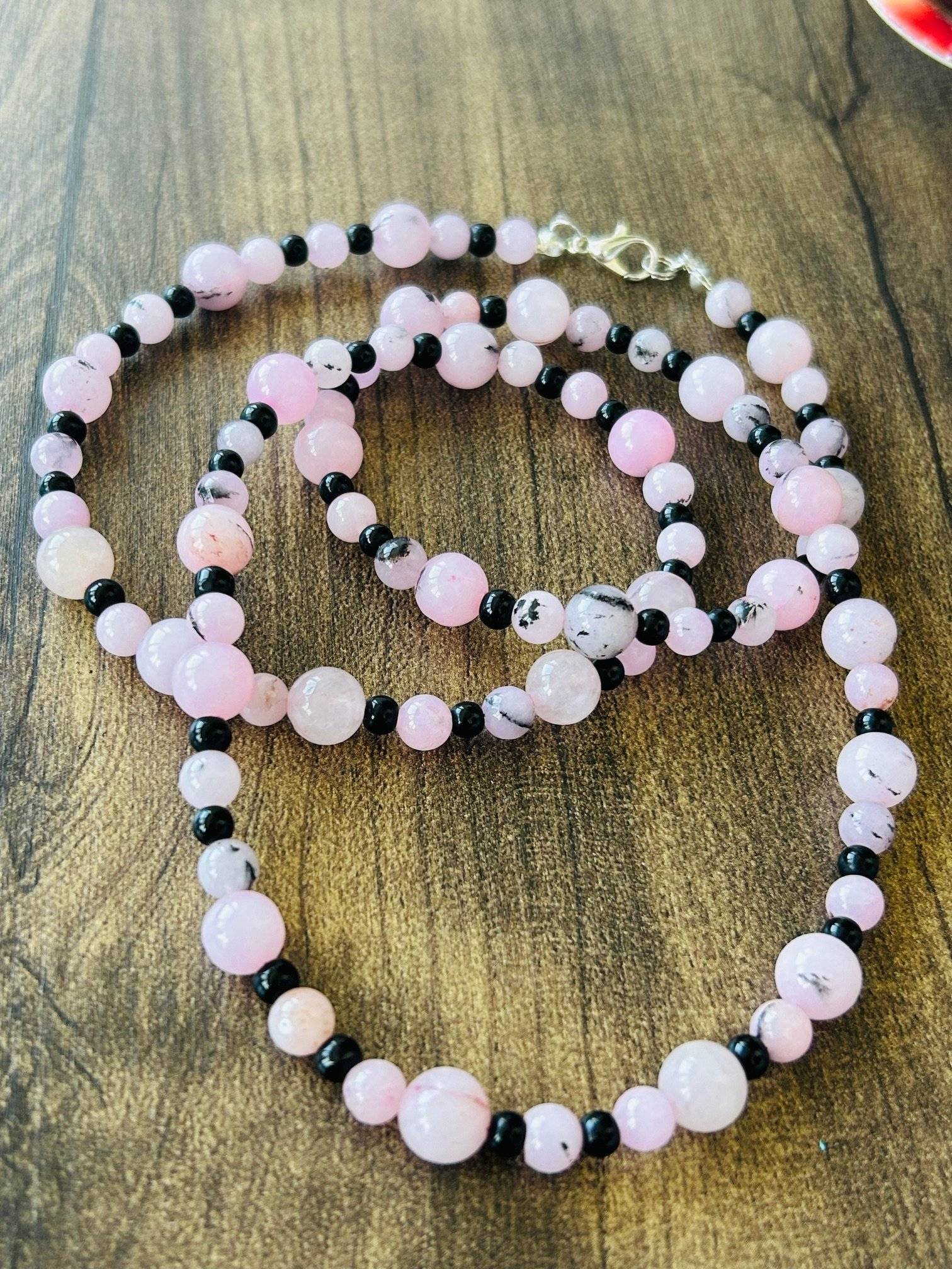 Pietrele sunt montate pe fir oțel siliconat special pt. bijuterii cu grosimea de 0,45 mm, iar închiderea se face prin închizătoare lobster, din aliaj placat cu argint. Pietrele semiprețioase pot prezenta o mică diferență de nuanță de la una la cealaltă, aceasta fiind o dovadă de autenticitate a cristalului natural, iar culoarea poate varia puțin și în funcție de setările ecranului Dvs.