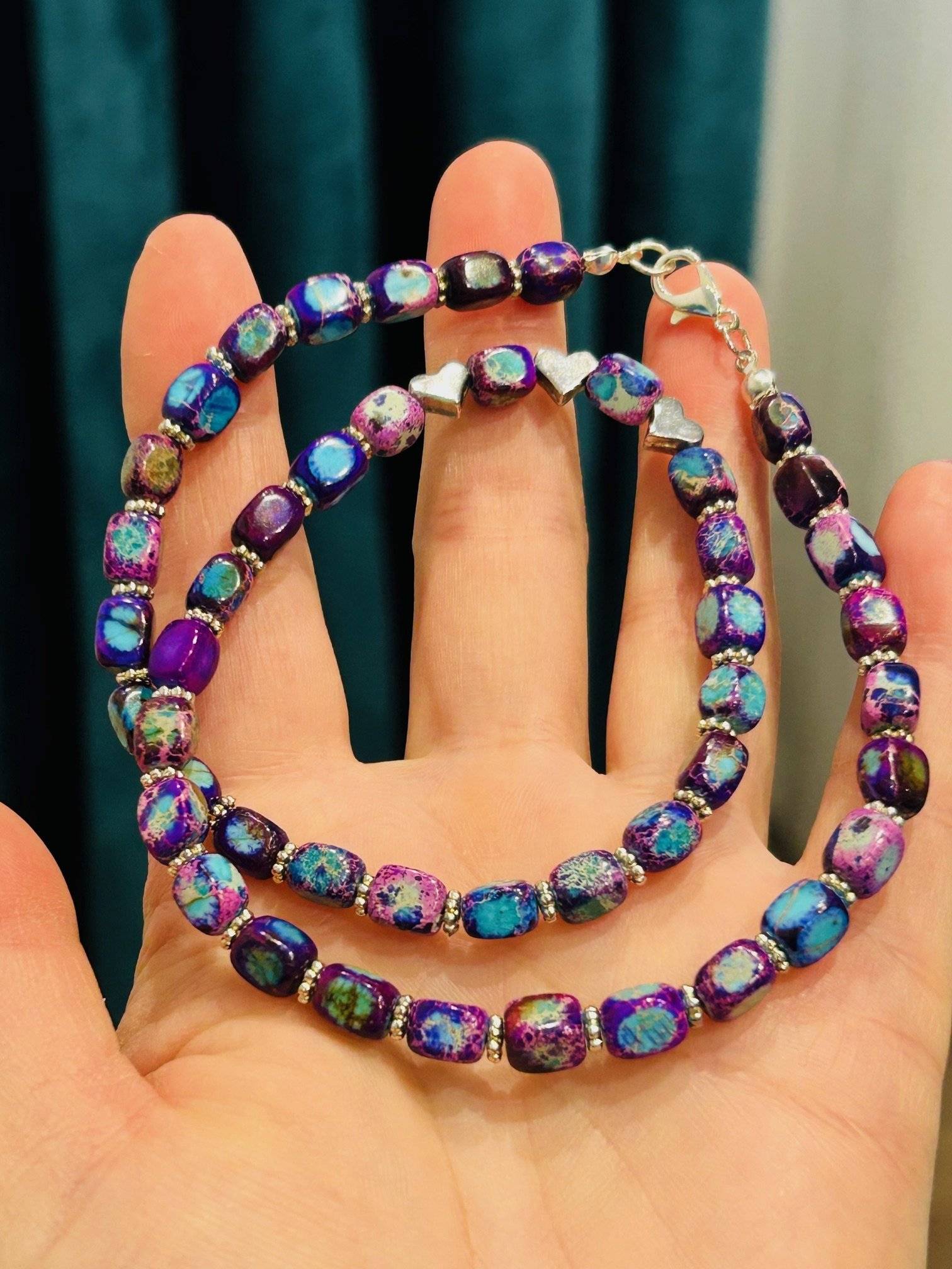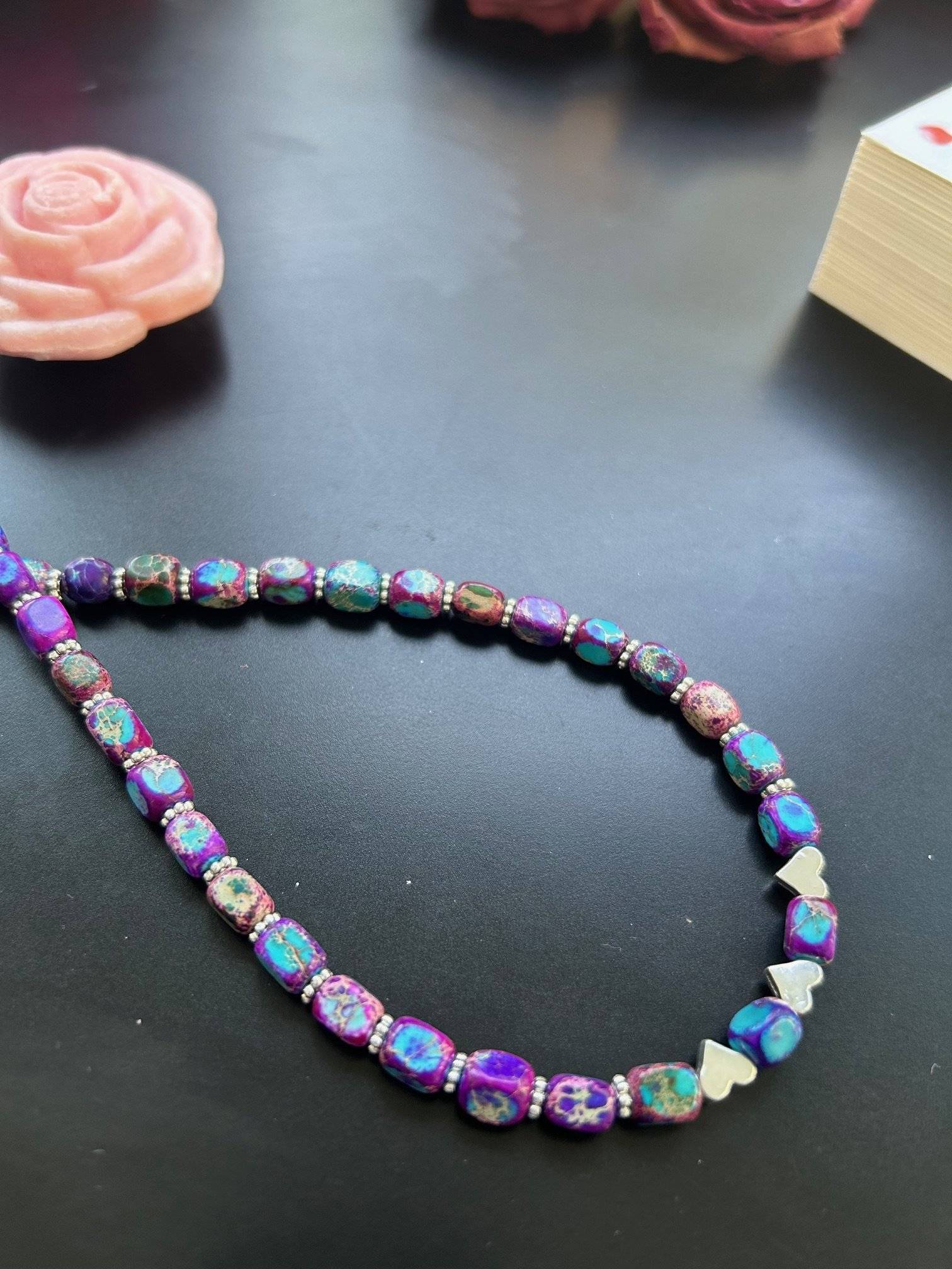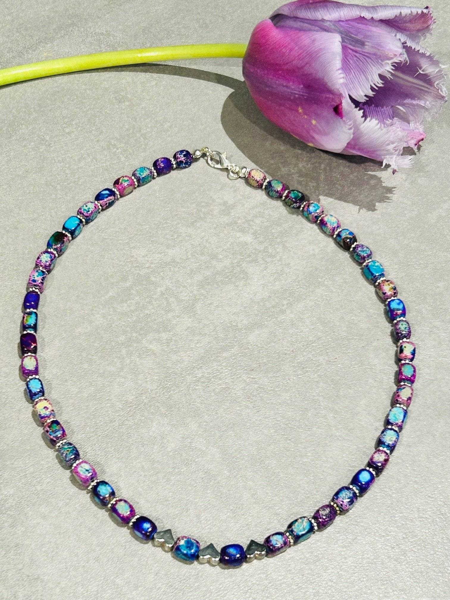 - mărgele de jasp imperial albastru și violet, mărgele dreptunghiulare cu dimensiunea de 5x7 mm.