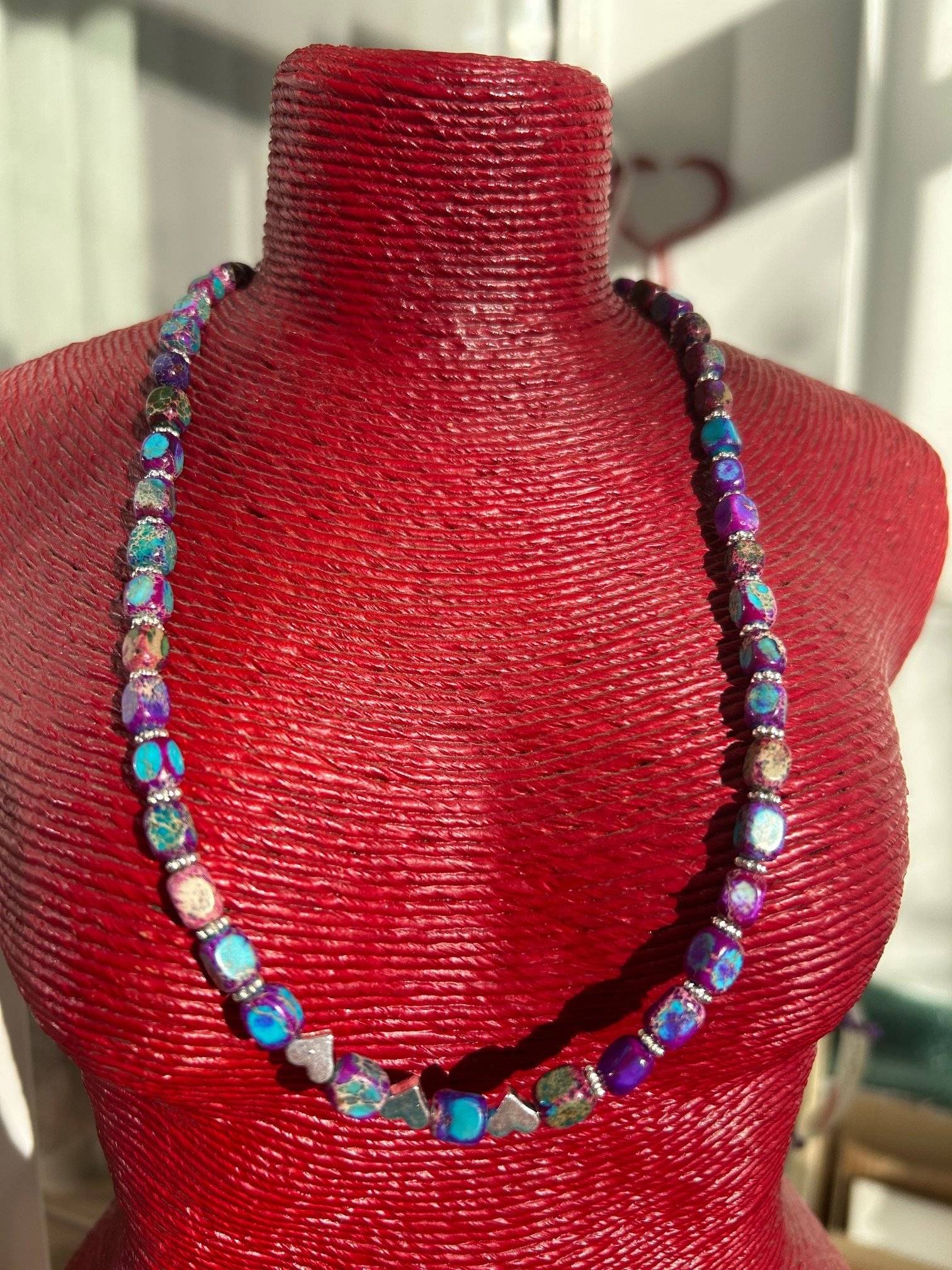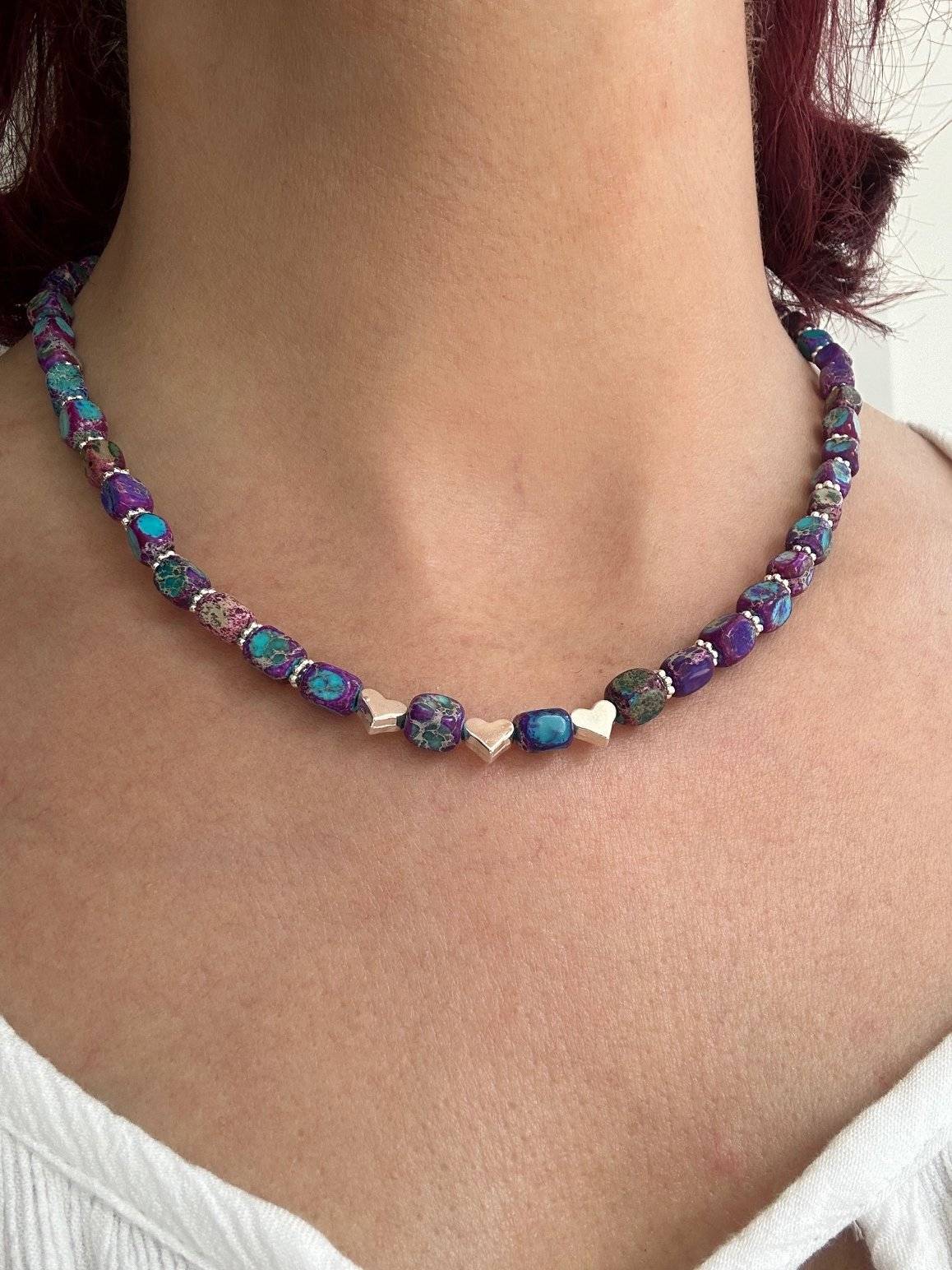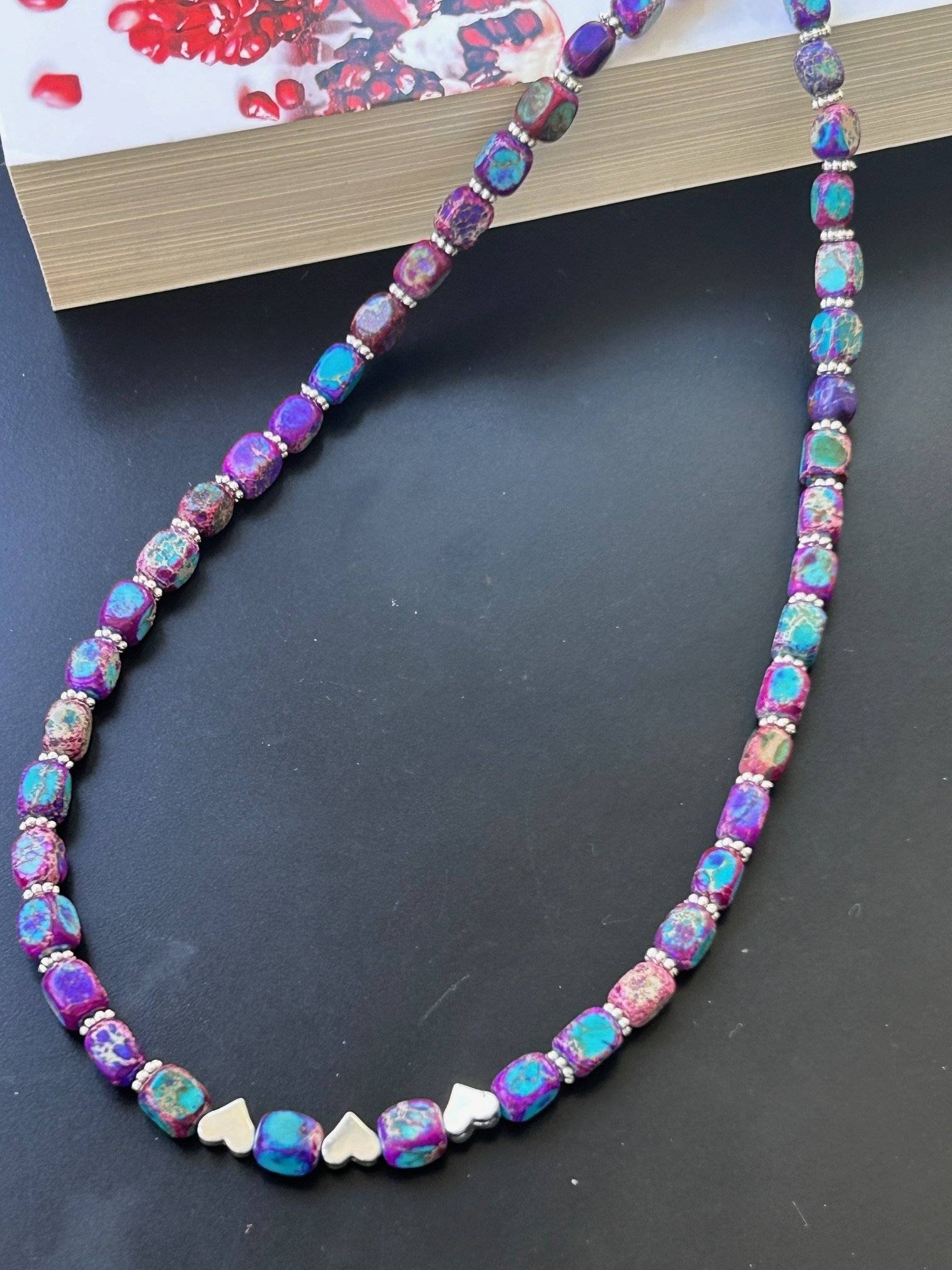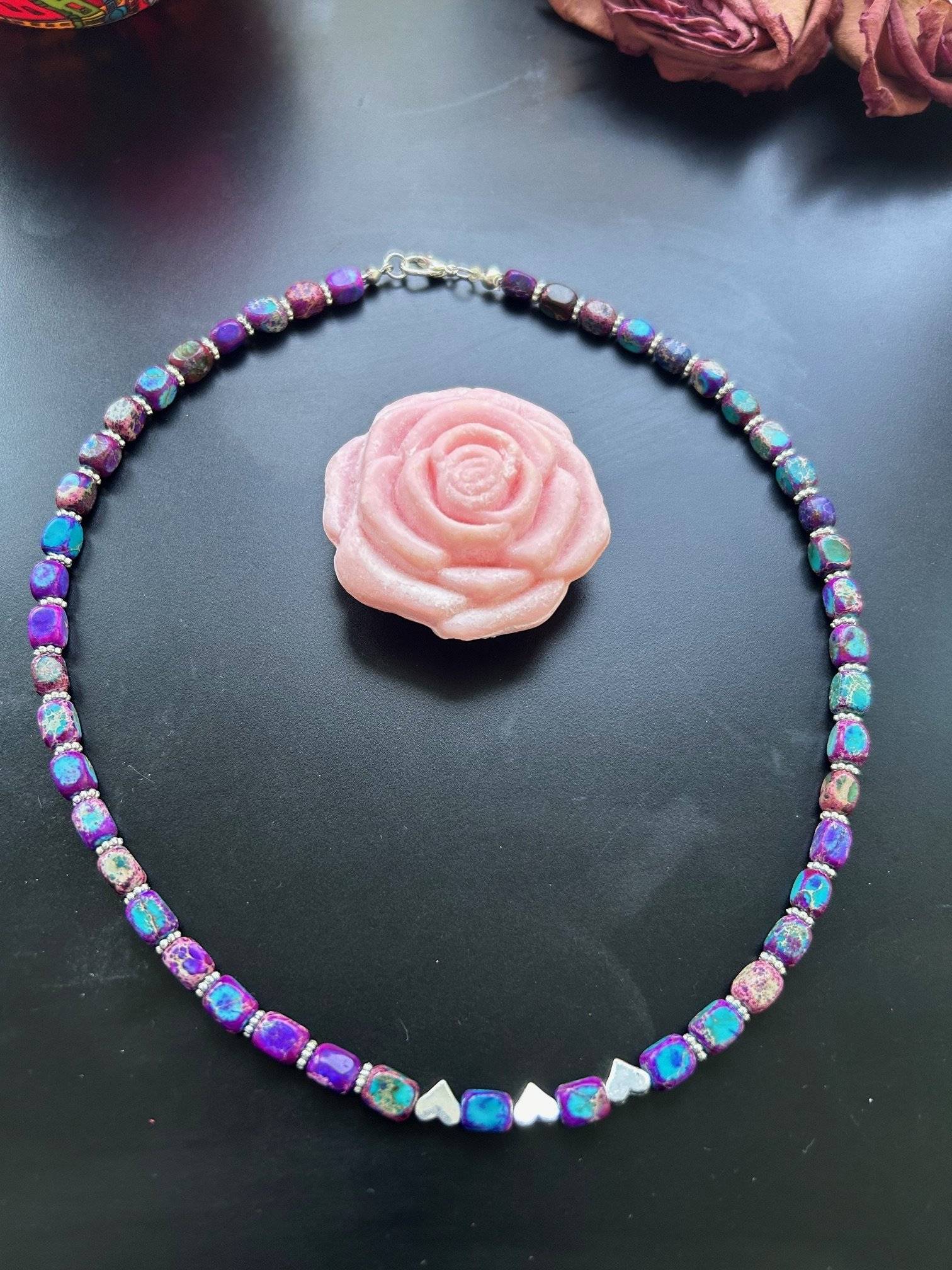 - mărgele de jasp imperial albastru și violet, mărgele dreptunghiulare cu dimensiunea de 5x7 mm.