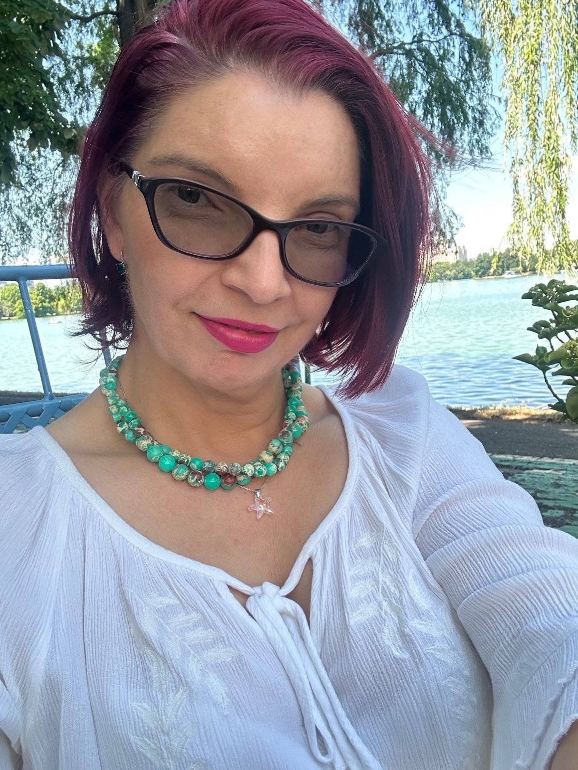 DISCLAIMER *** Pentru un plus de efect și eleganță, modelul din ultimele fotografii poartă la gât înlănțuite două coliere din jasp impression, disponibile momentan pe site-ul nostru. Prețul afișat este pentru un singur colier, nu pentru amândouă. Mulțumim pentru înțelegere! Pentru a observa detaliile colierului, vă rugăm să vă focusați pe fotografiile în care colierul Marilyn apare de sine stătător.