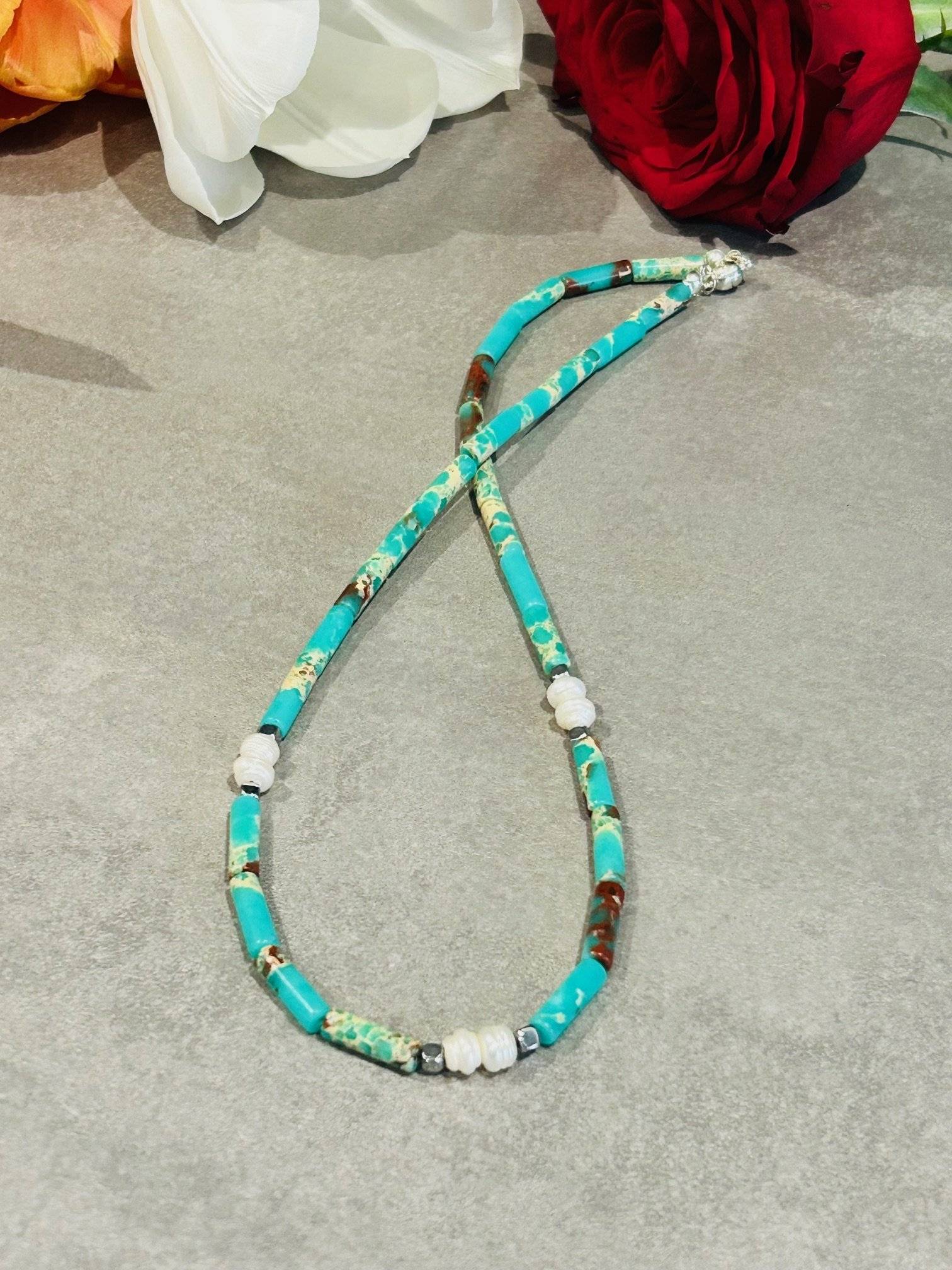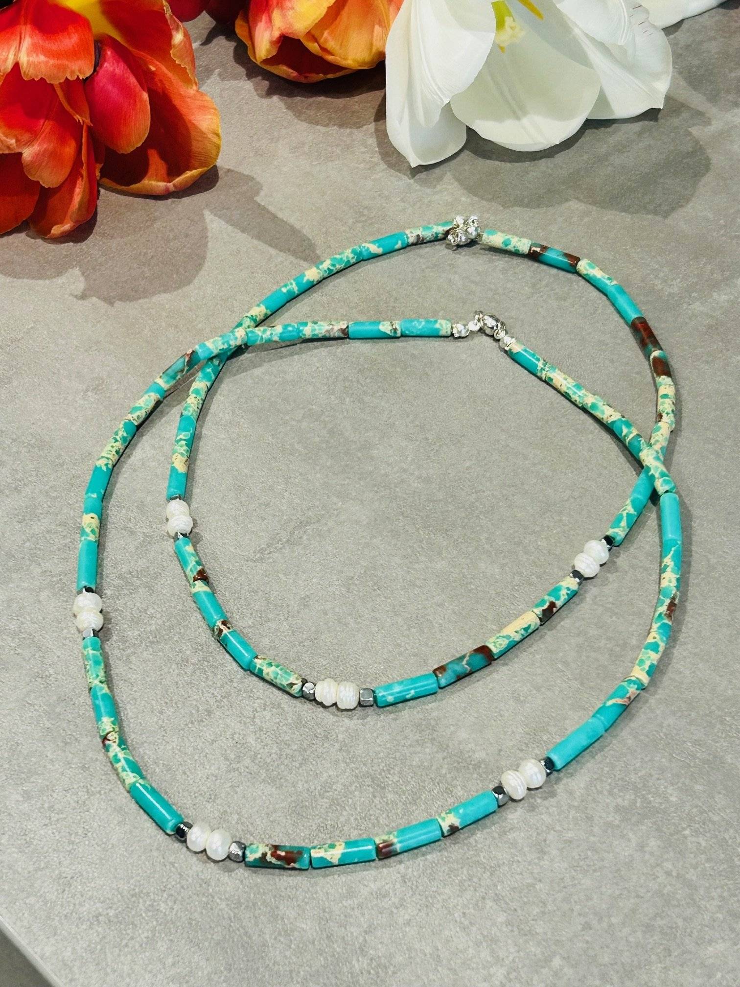 DISCLAIMER *** Modelul din fotografii poartă la gât ambele coliere din jasp impression disponibile momentan pe site-ul nostru. Prețul afișat este pentru un singur colier, nu pentru amândouă. Mulțumim pentru înțelegere !