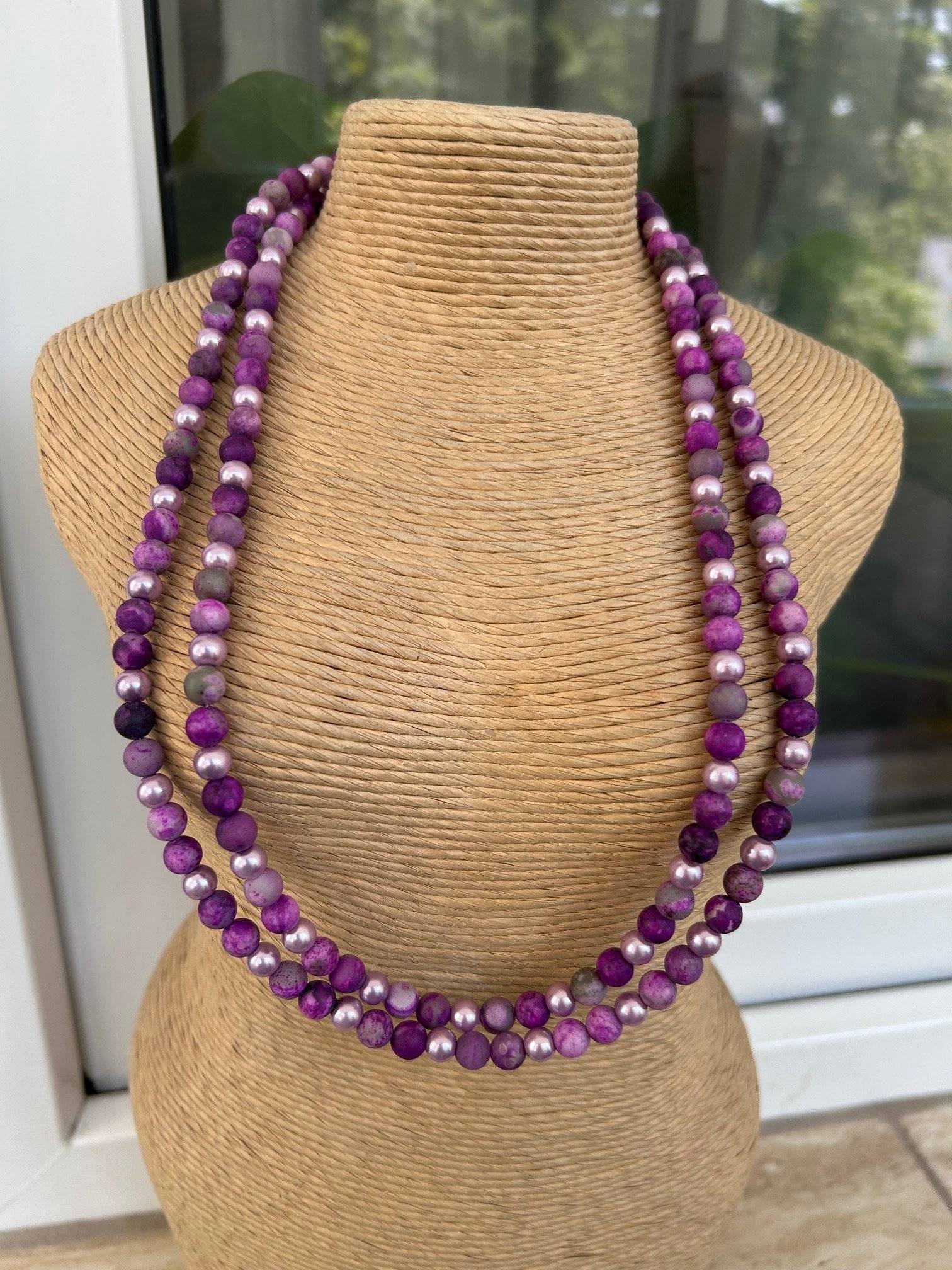 Lungimea acestui minunat colier de mărgele este de cca. 104 cm. Poate fi purtat dublat la gât, datorită sistemului de prindere/închizătoare lobster.
