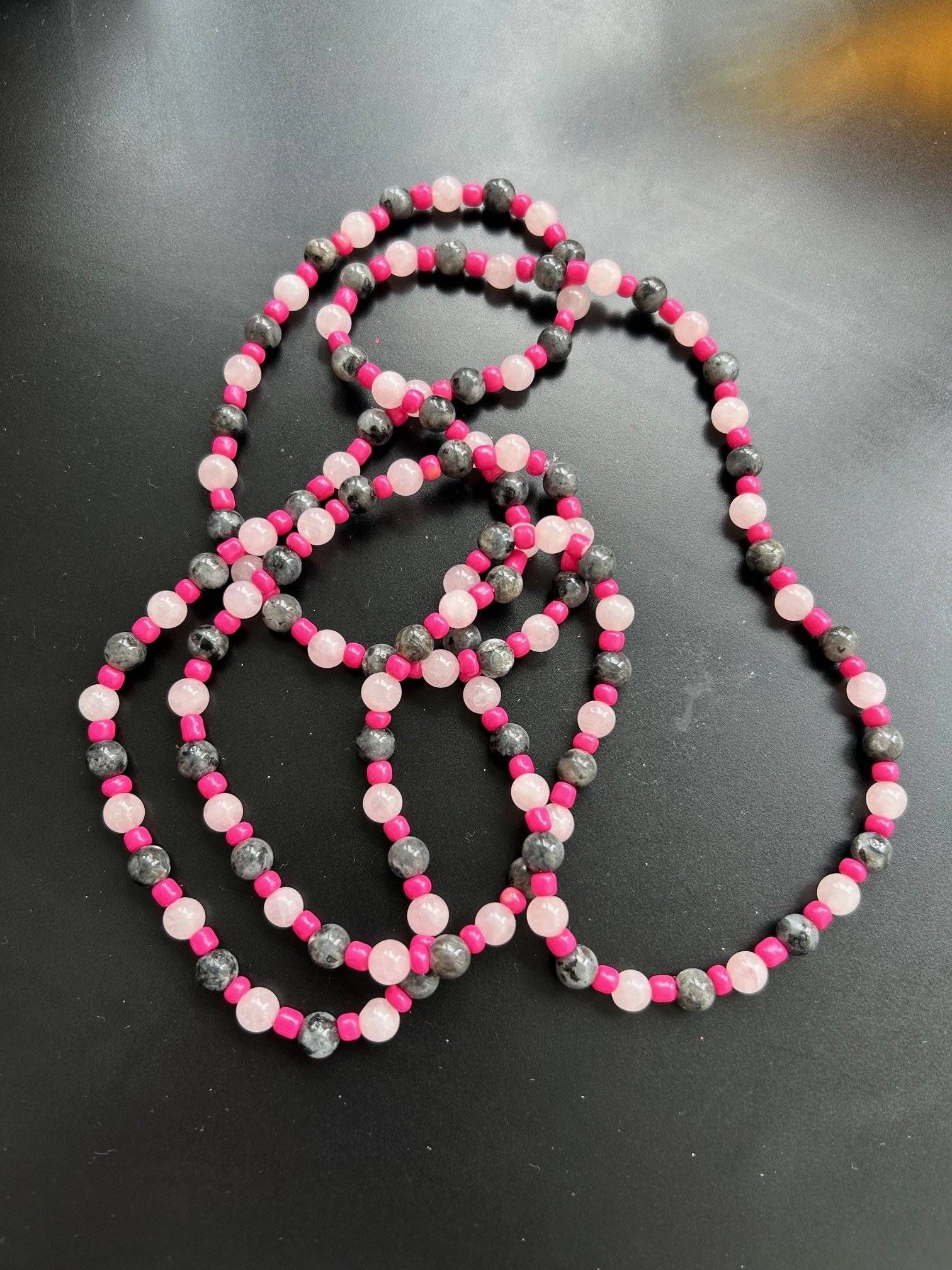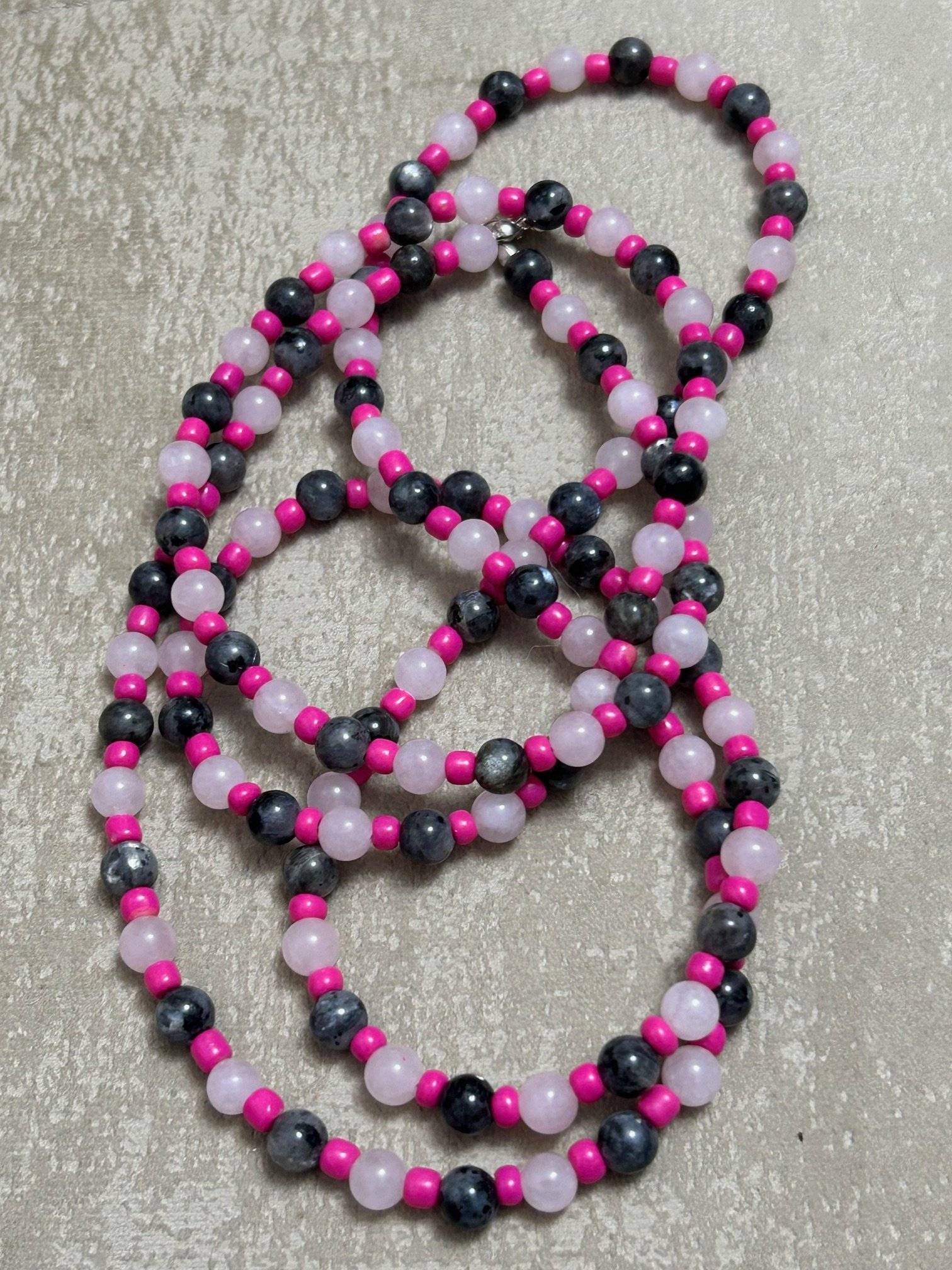 Pietrele sunt montate pe fir oțel siliconată de 0,45 mm grosime, iar închiderea se face cu închizătoare lobster din aliaj placată cu argint. Pietrele semiprețioase pot prezenta diferență de nuanță de la o piatră la alta, iar culoarea poate varia puțin în funcție de setările monitorului Dvs.