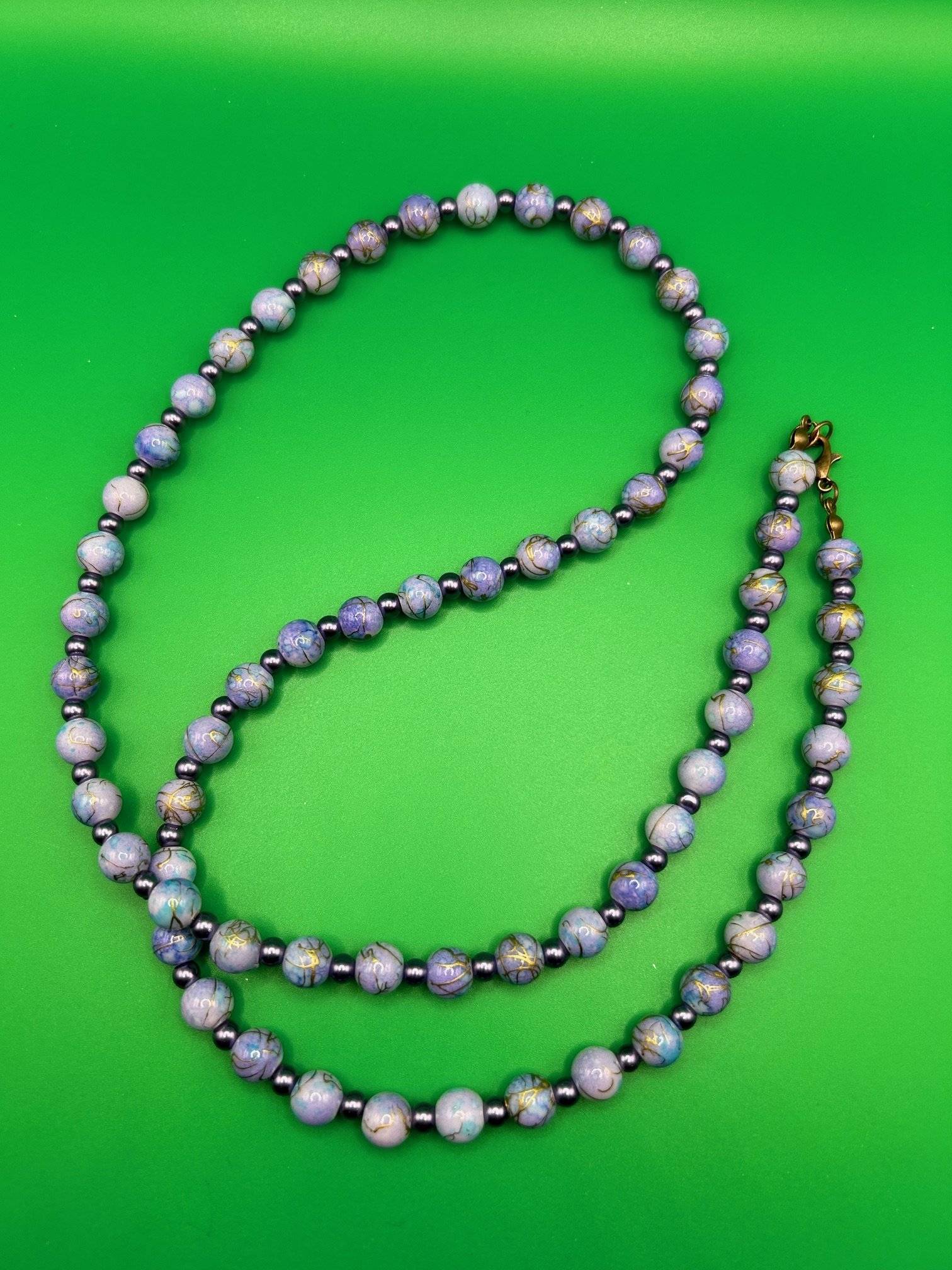Mărgelele sunt înșirate pe sârmă siliconată de 0,45 mm grosime, iar închiderea se face cu închizătoare din aliaj în culoarea bronzului.