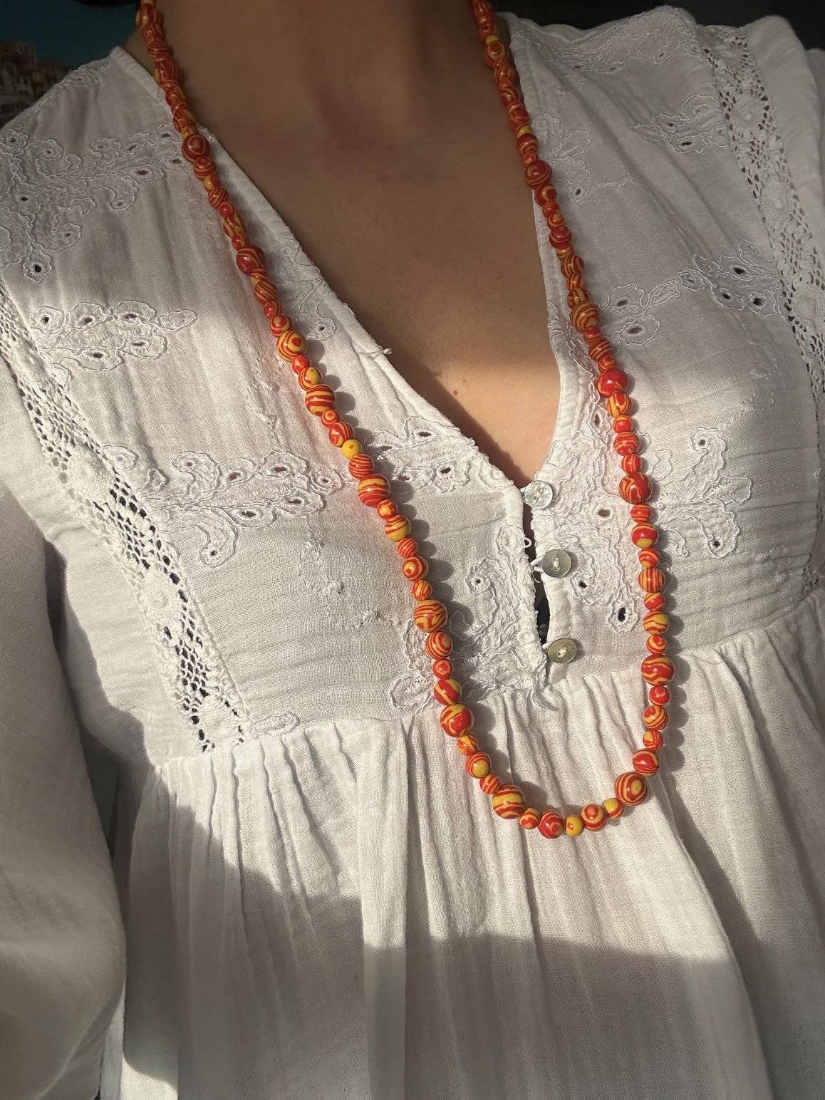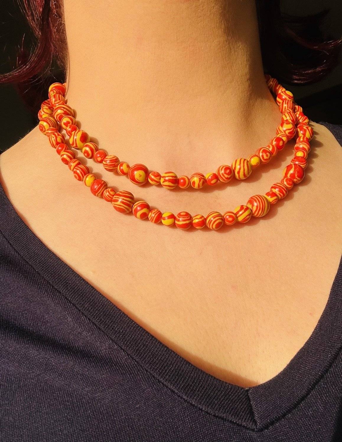 Lungimea colierului este de cca. 100 cm și poate fi purtat dublat la gât.