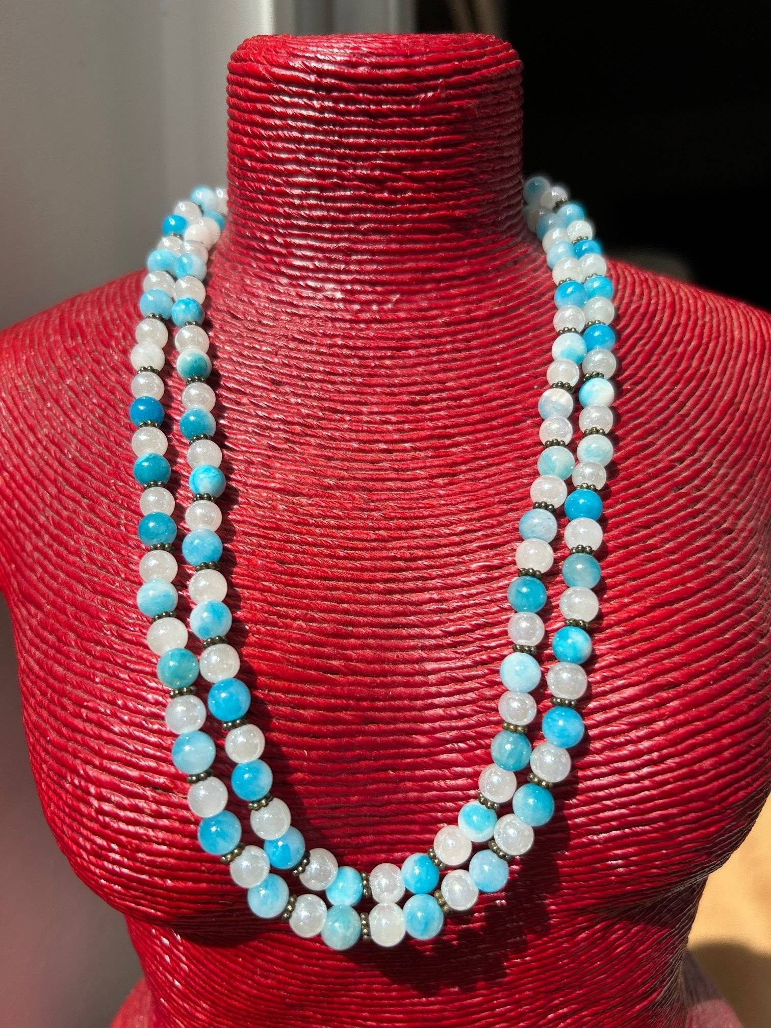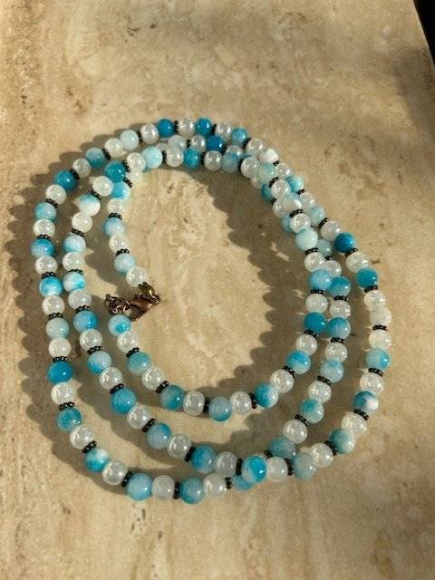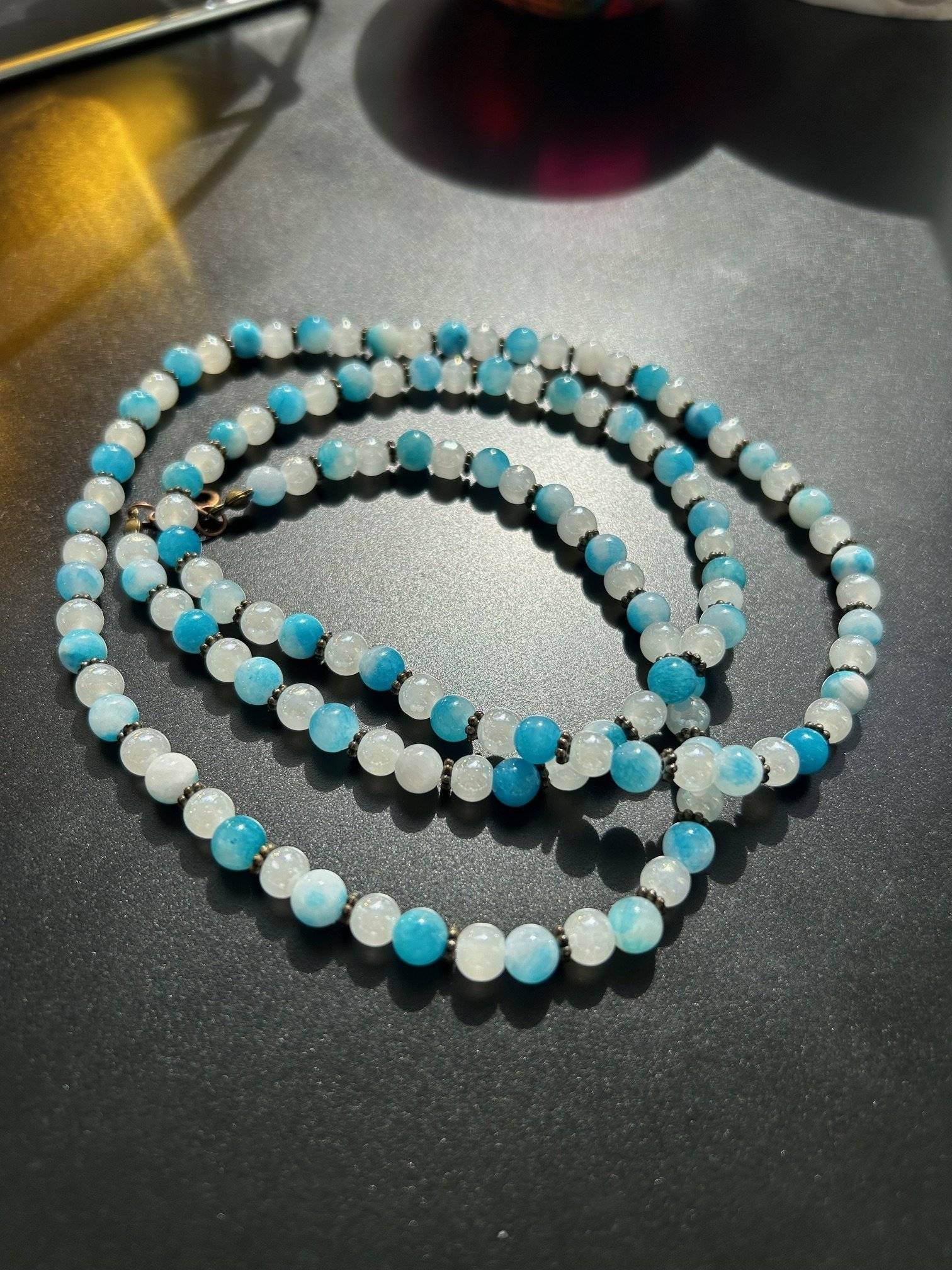 Pietrele sunt montate pe fir oțel siliconată de 0,45 mm grosime, iar închiderea se face cu închizătoare lobster din aliaj, culoare cupru. Nuanța din fotografii poate varia puțin și în funcție de setările monitorului Dvs.