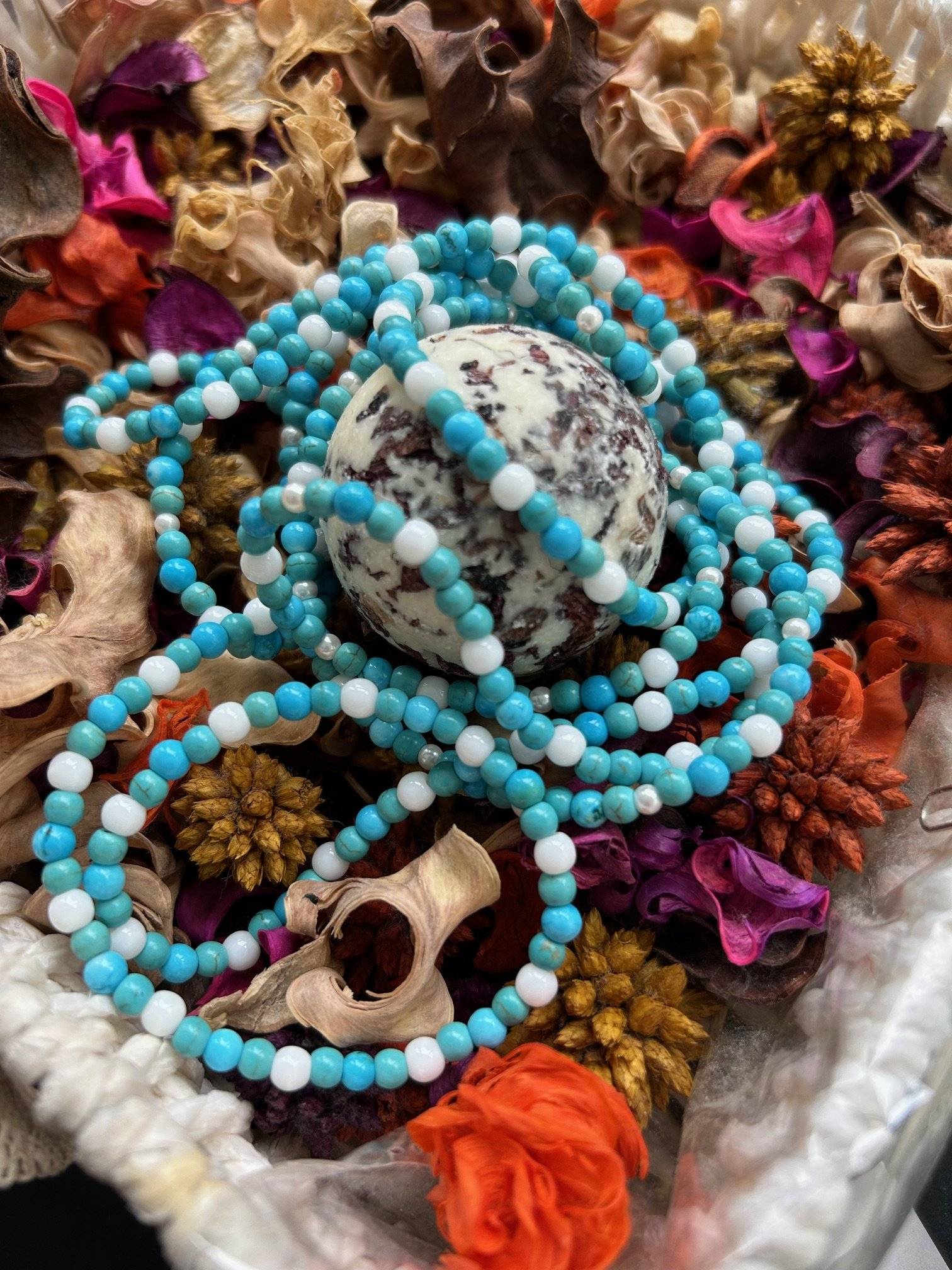 Colierul de mărgele TURCOAZUL MĂRII este compus din: