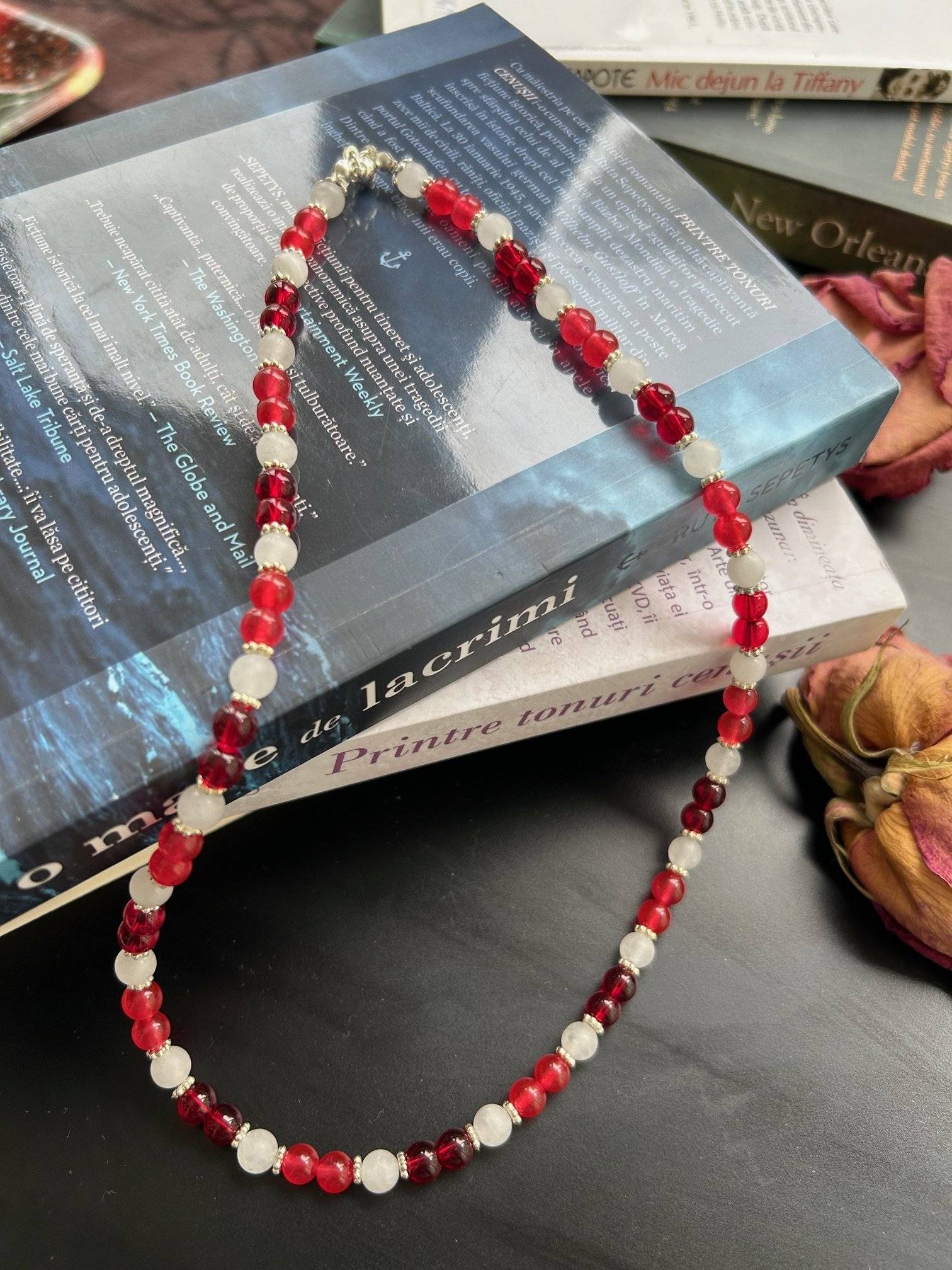 Lungimea colierului de mărgele este de cca. 47 cm.Pietrele sunt înșirate pe fir oțel siliconat de 0,40 mm grosime, iar închiderea se face prin închizătoare magnetică din aliaj placată cu argint. Culoarea pietrelor poate varia puțin în funcție de setările monitorului Dvs.Pozele sunt reale, veți primi exact produsul din imagine și sperăm să fie dragoste la prima vedere.
