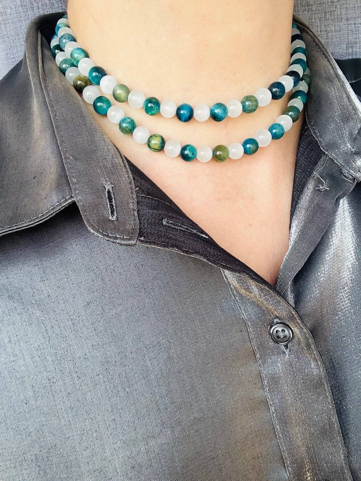 Pietrele sunt montate pe fir oțel siliconat de 0,45 mm grosime, iar închiderea se face cu închizătoare lobster din aliaj placată cu argint. Pietrele semiprețioase pot prezenta mici diferențe de nuanță de la o piatră la alta, iar culoarea poate varia puțin în funcție de setările monitorului Dvs.