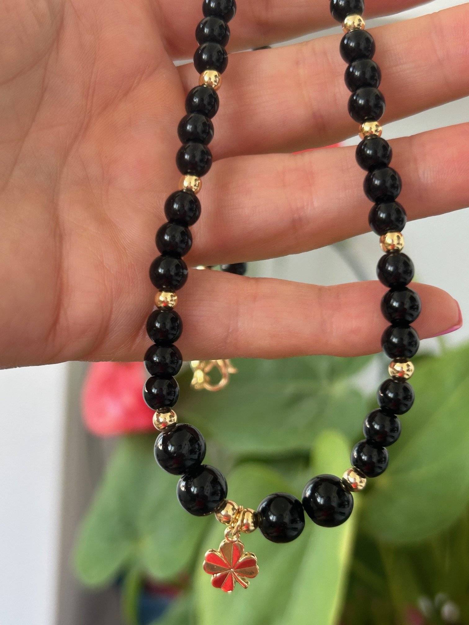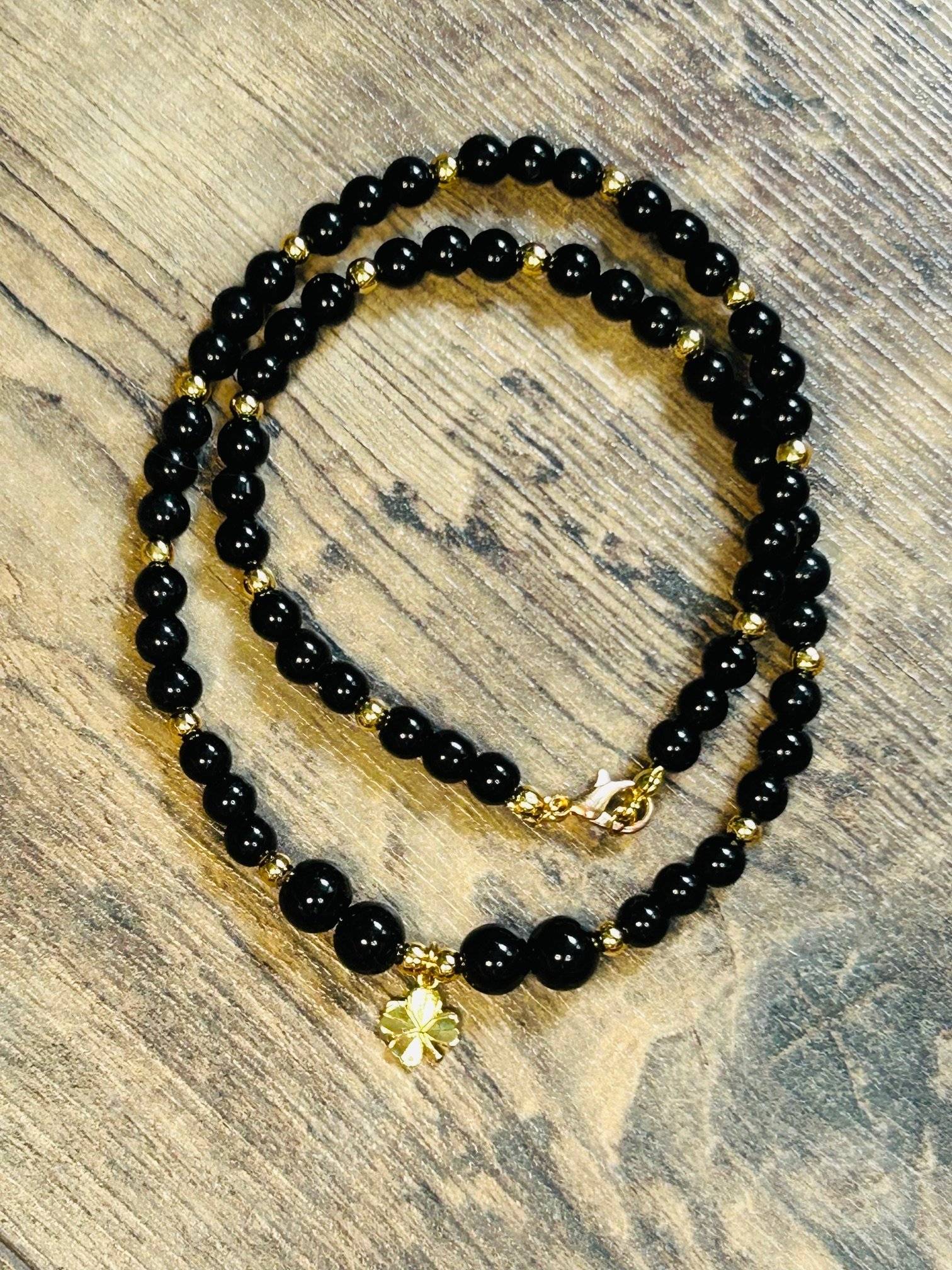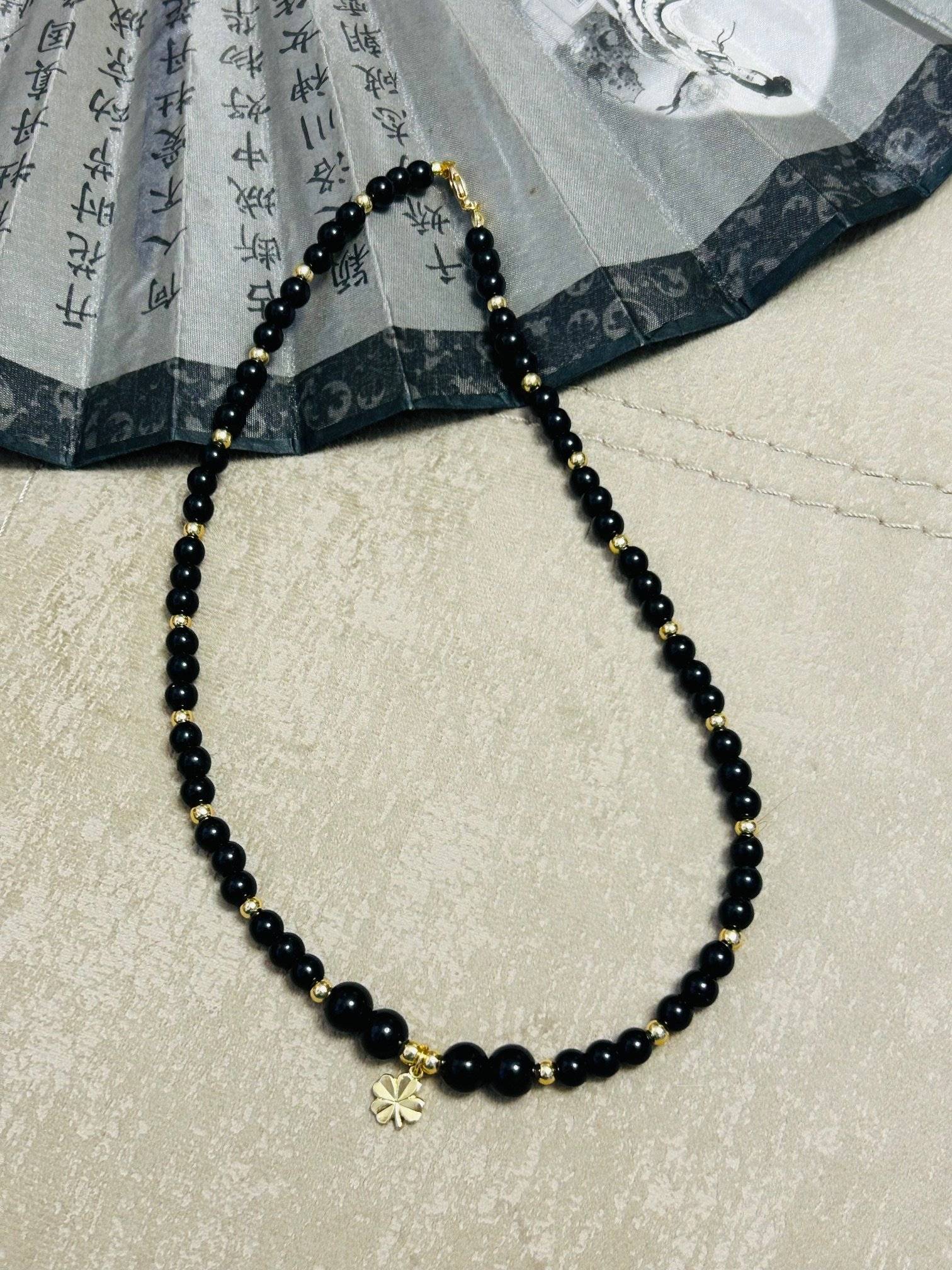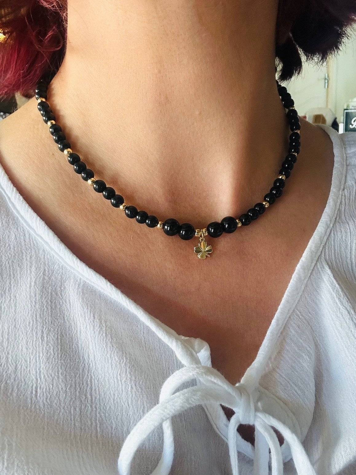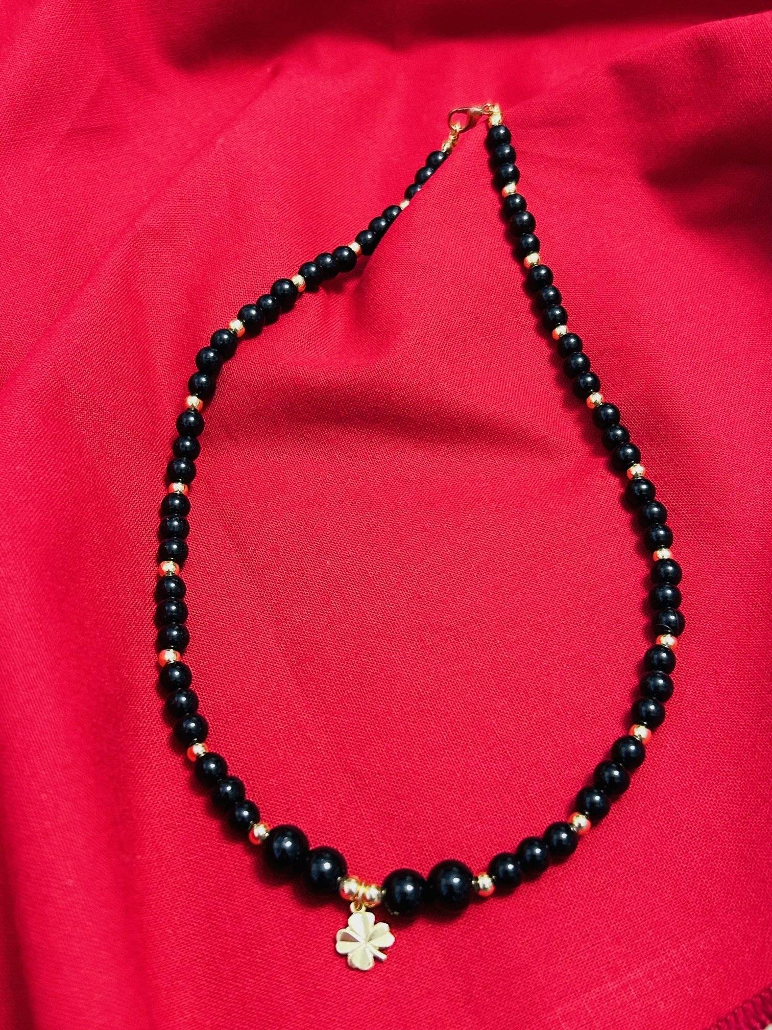 Colierul de mărgele Onix CLOVER este confecționat din: