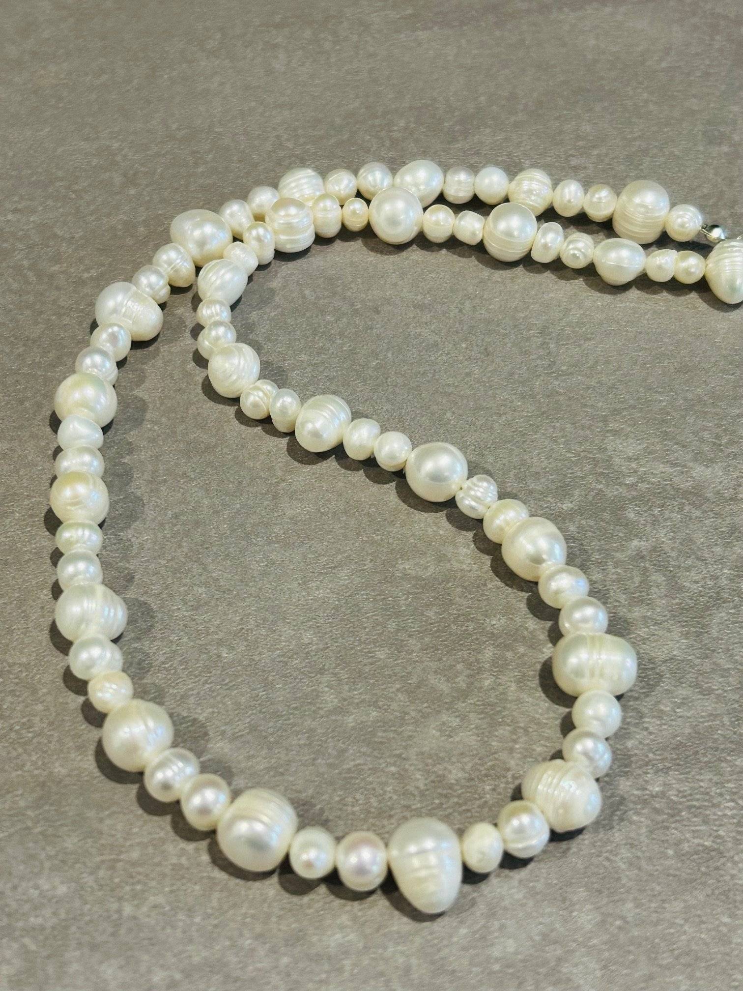 Colierul din pietre semiprețioase JACQUELINE este tot ce vă trebuie pentru a adăuga o notă de eleganță oricărei ținute! Este un colier delicat, realizat din perle de cultură de diferite dimensiuni, fiecare purtând amprenta naturii prin mici striații și imperfecțiuni care le fac cu adevărat unice. Fiecare perlă are o formă ușor diferită, o textură subtilă și o strălucire organică, semn al autenticității și rafinamentului natural. Imperfecțiunile fine nu sunt defecte, ci dovezi ale formării lor naturale, transformând fiecare colier într-o piesă unicat și autentică, cu farmec și personalitate proprii - exact ca tine ! Este ideal pentru cele care apreciază bijuteriile cu poveste, aducând un plus de distincție și naturalețe oricărei ținute.
