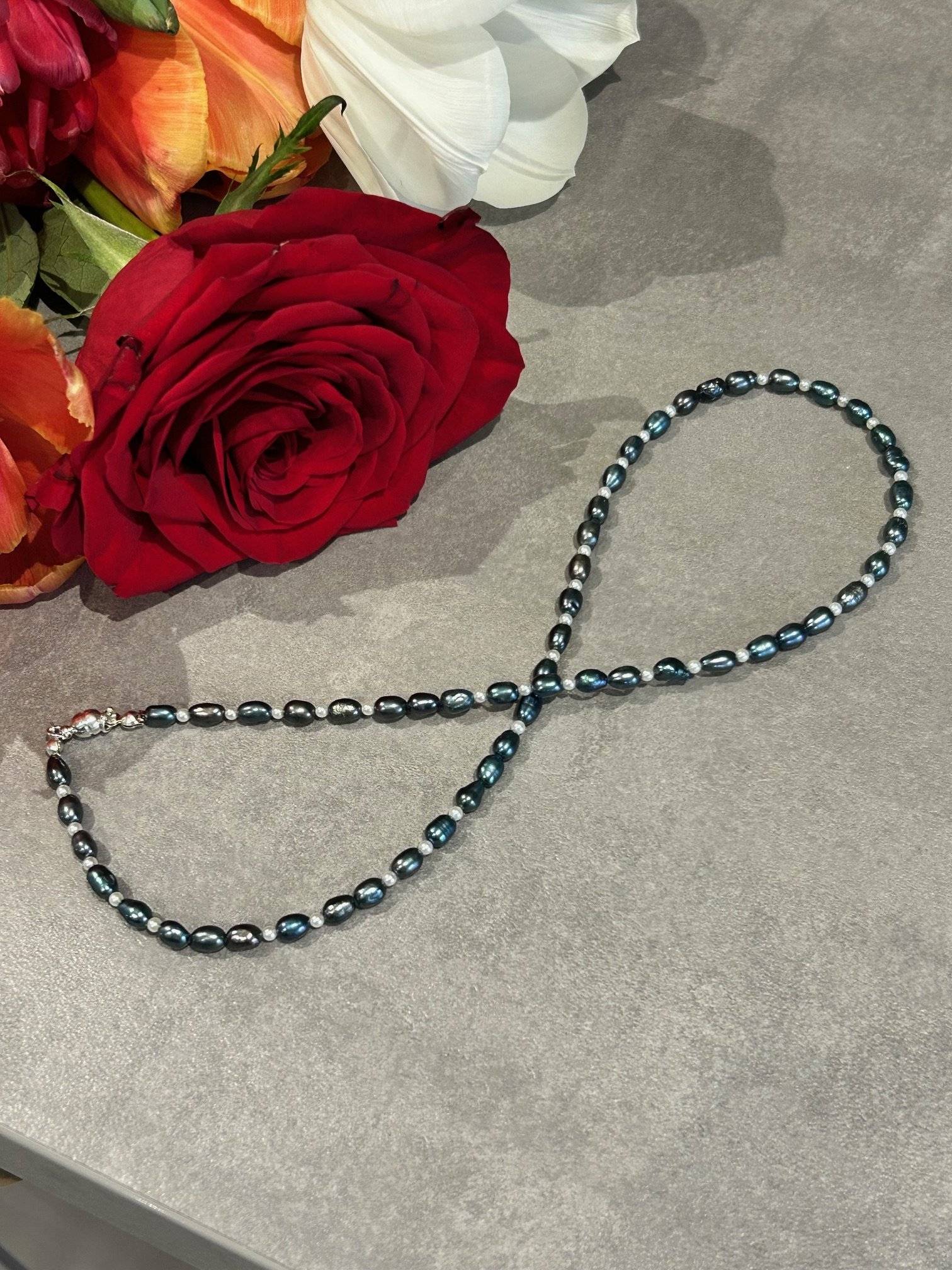 Perlele de cultură sunt montate pe fir oțel siliconat, special pentru bijuterii, de 0,40 mm grosime, iar închiderea se face cu închizătoare magnetică din aliaj placat cu argint. Perlele sunt tratate și pot prezenta mici diferențe de nuanță, iar culoarea poate varia puțin în funcție de setările monitorului Dvs.