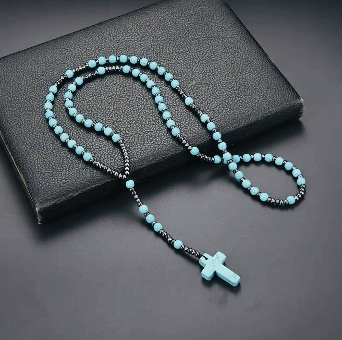 - cruce confecționată din cristal turcoaz, dimensiune de 20x30 mm.