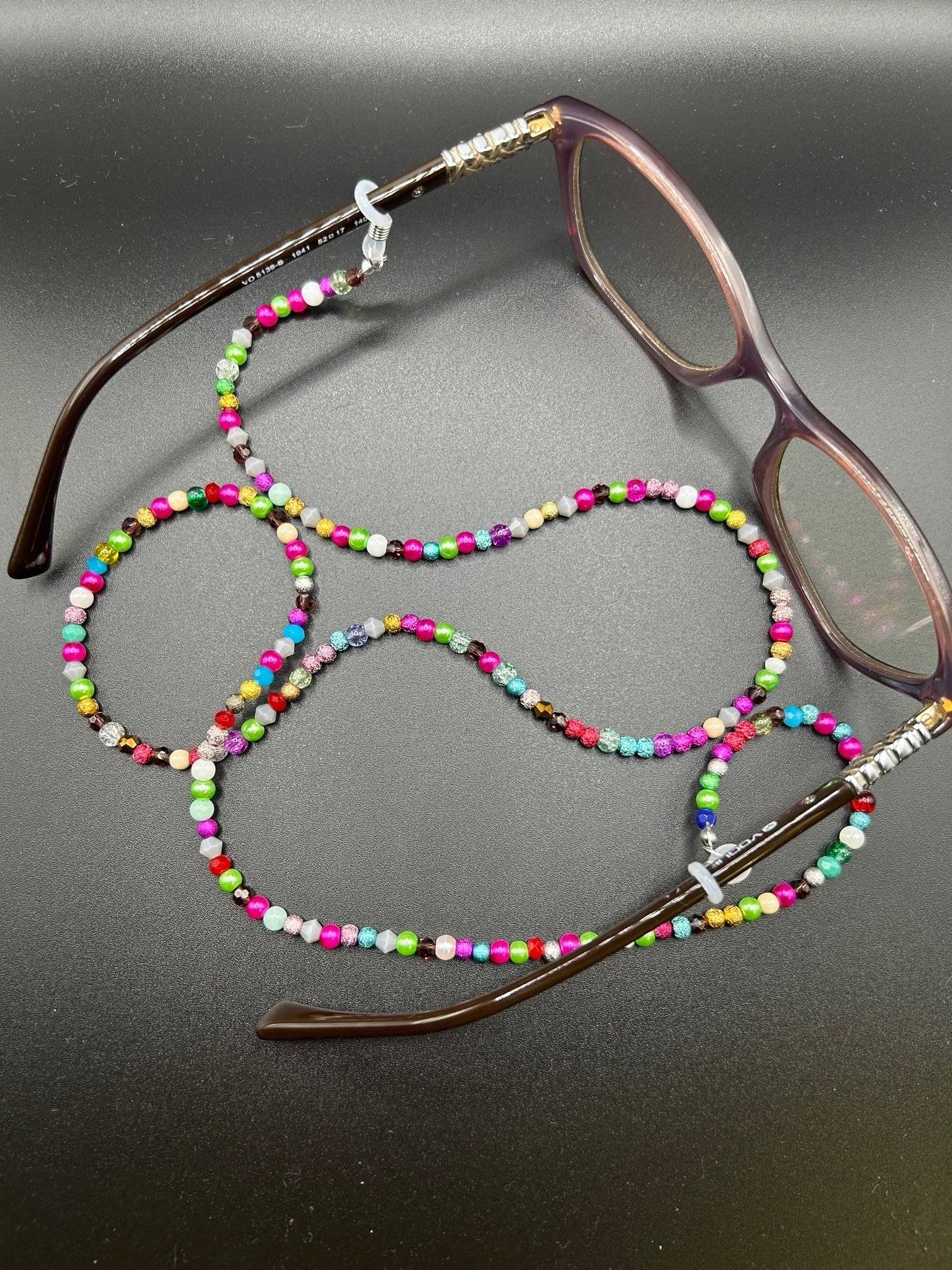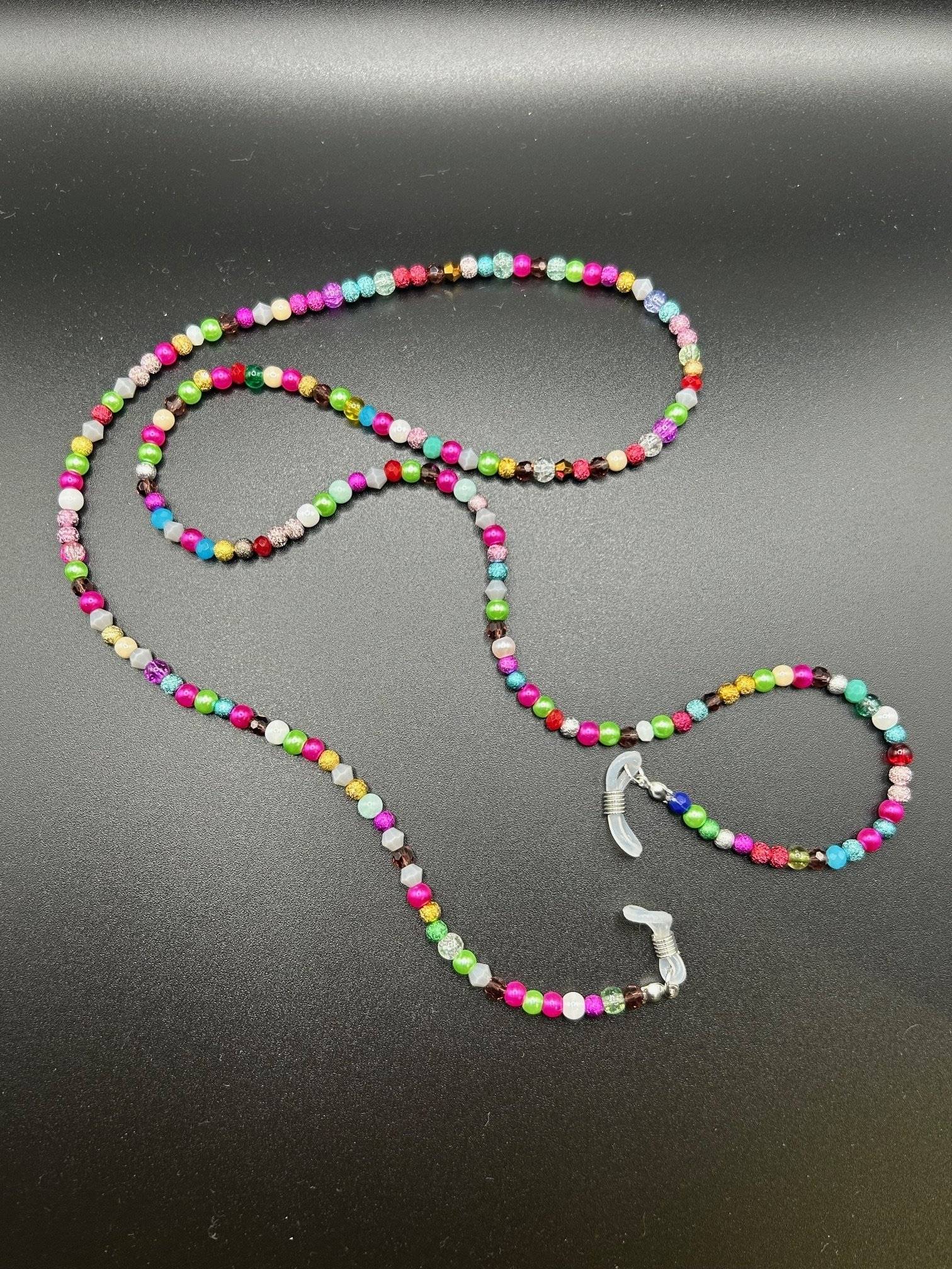 Lanț de ochelari finuț, elegant, versatil din cristale și mărgeluțe colorate, lungimea de cca.75 cm.