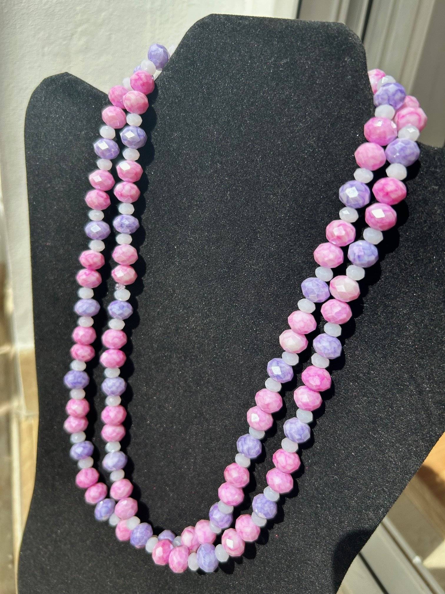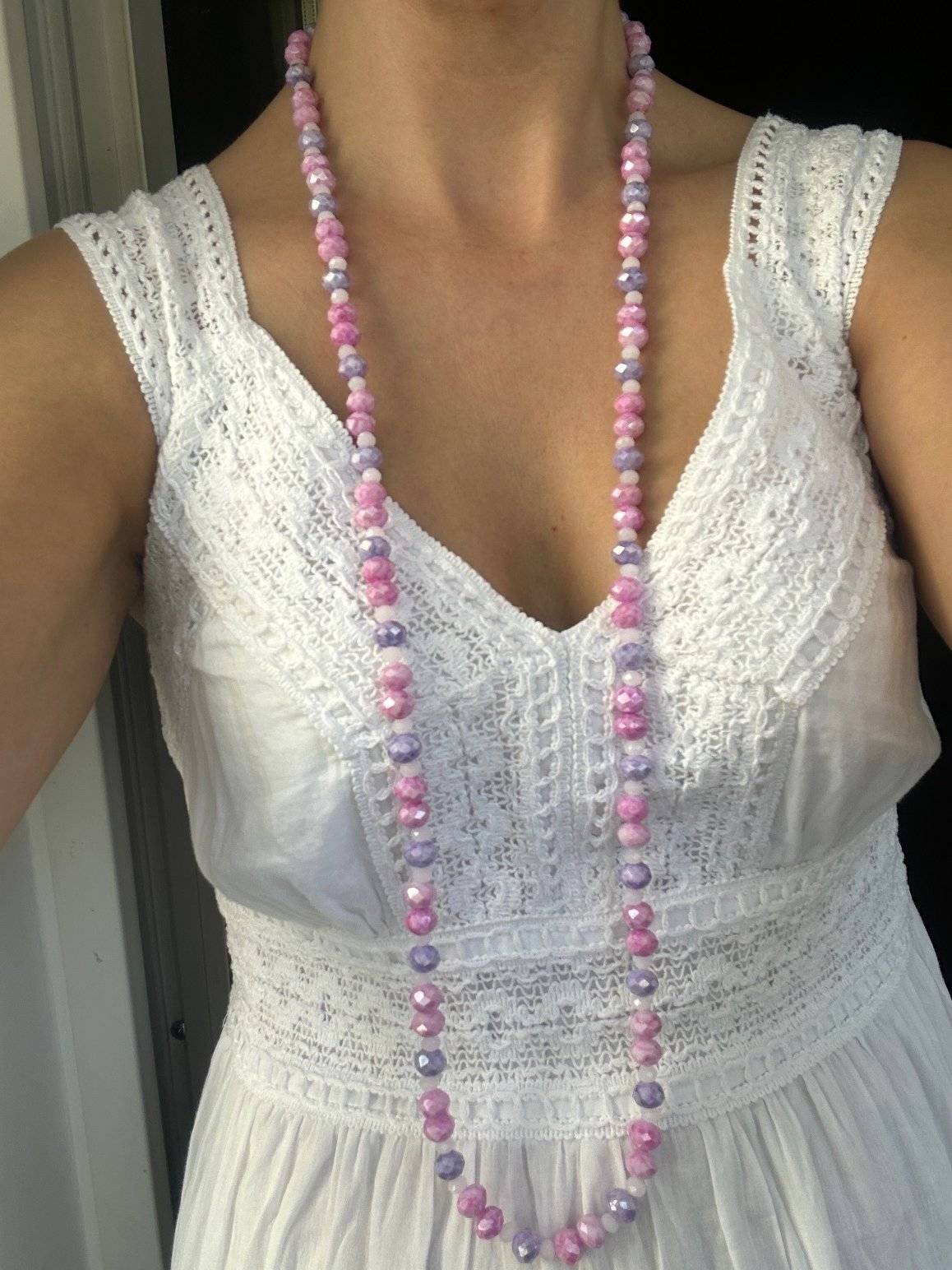 Lungimea șiragului de cristale este de cca. 104 cm. Greutate 250 gr.