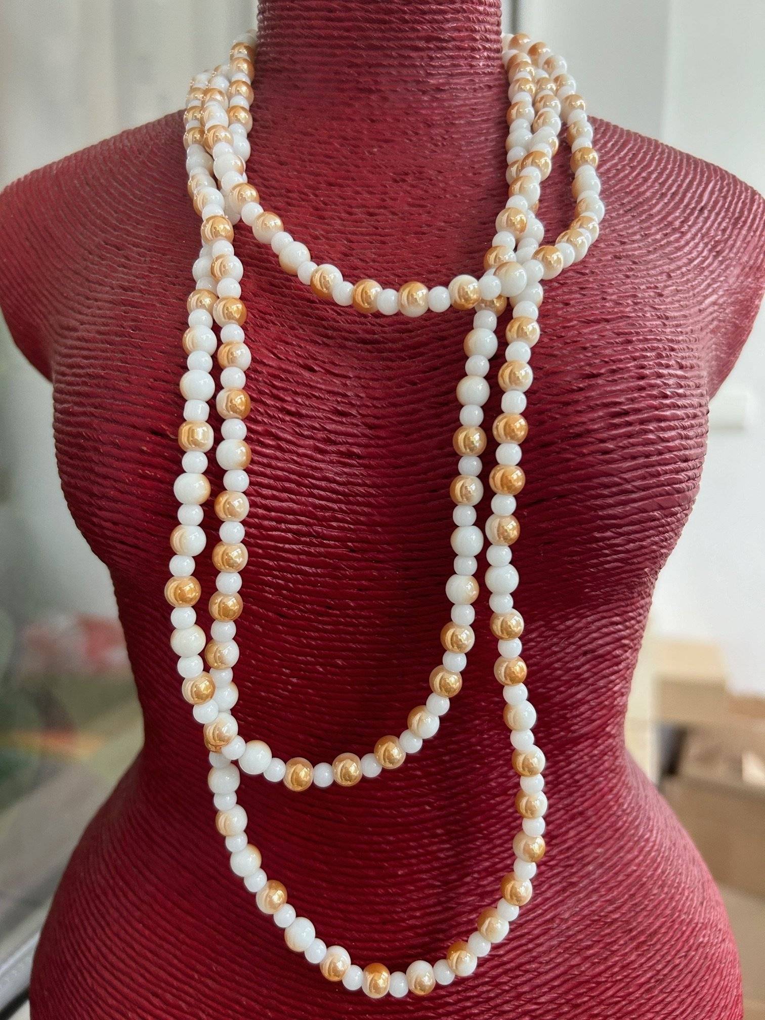 Lungimea șiragului de mărgele este de cca. 154 cm, ceea ce dă senzația de abundență și permite purtarea dublat la gât.