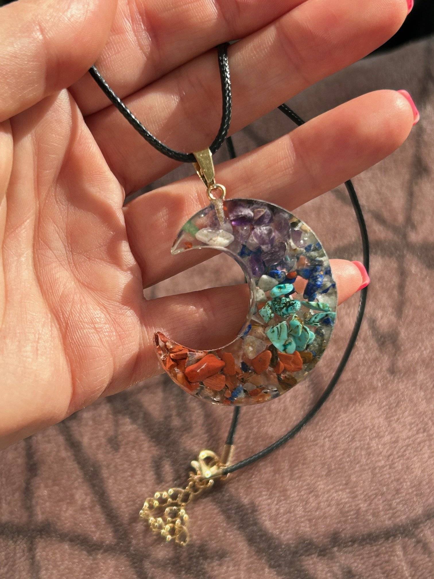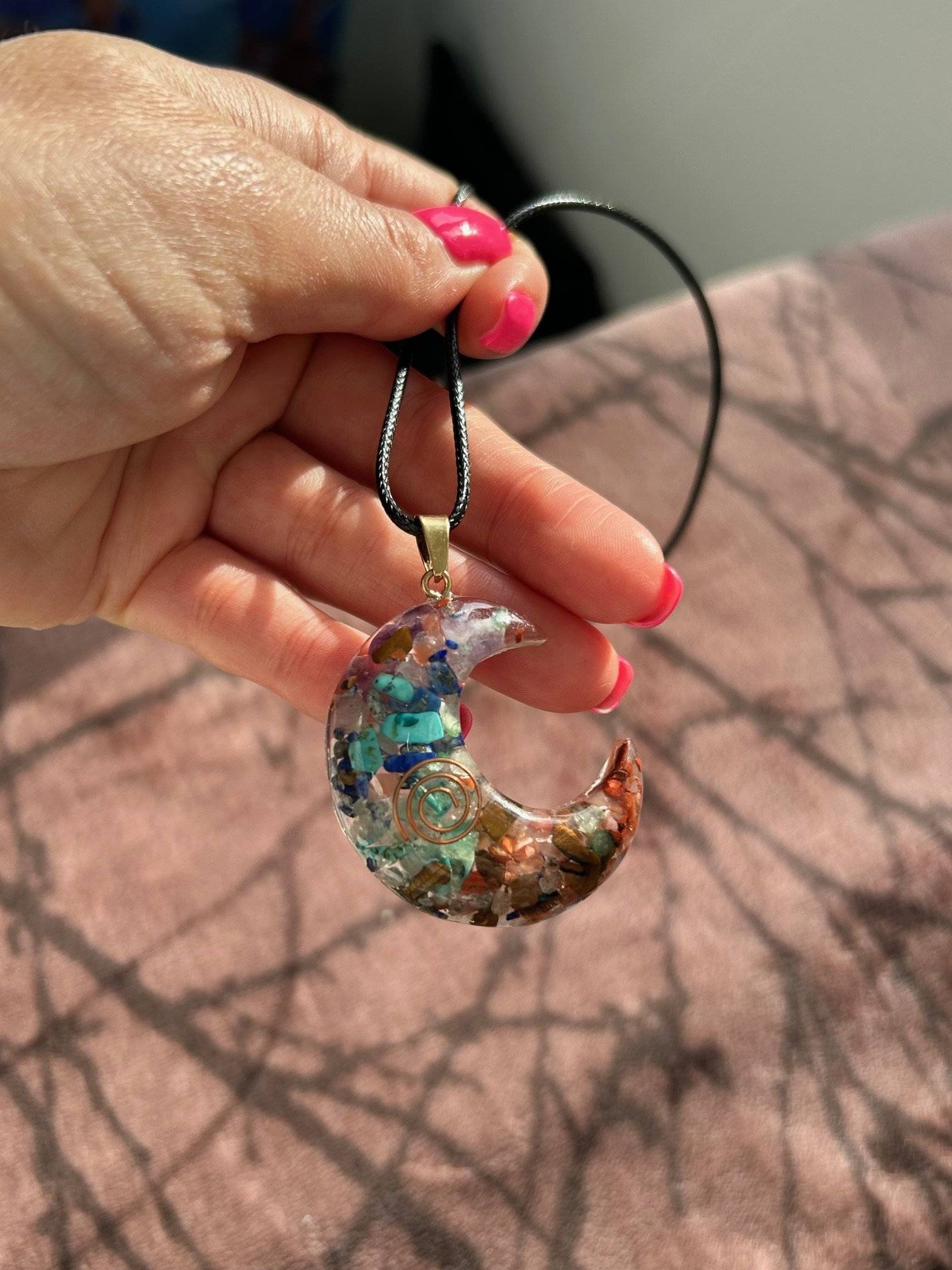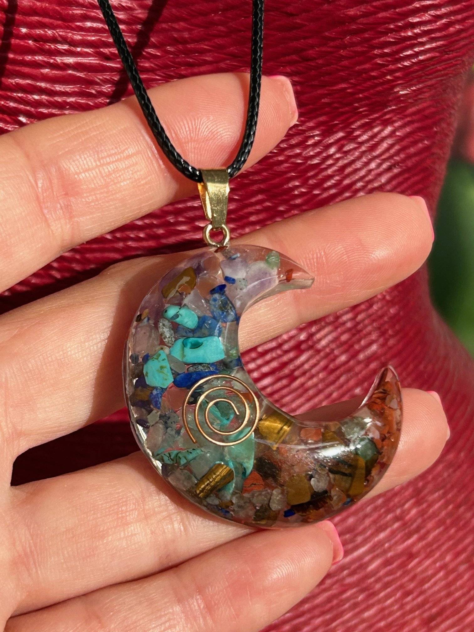 Un mijloc potrivit de a te proteja de energiile malefice emanate în jurul tău de oamenii toxici este și purtarea acestui pandantiv orgonic, confecționat din rășină și cristale naturale în culorile specifice Chakrelor corpului uman.