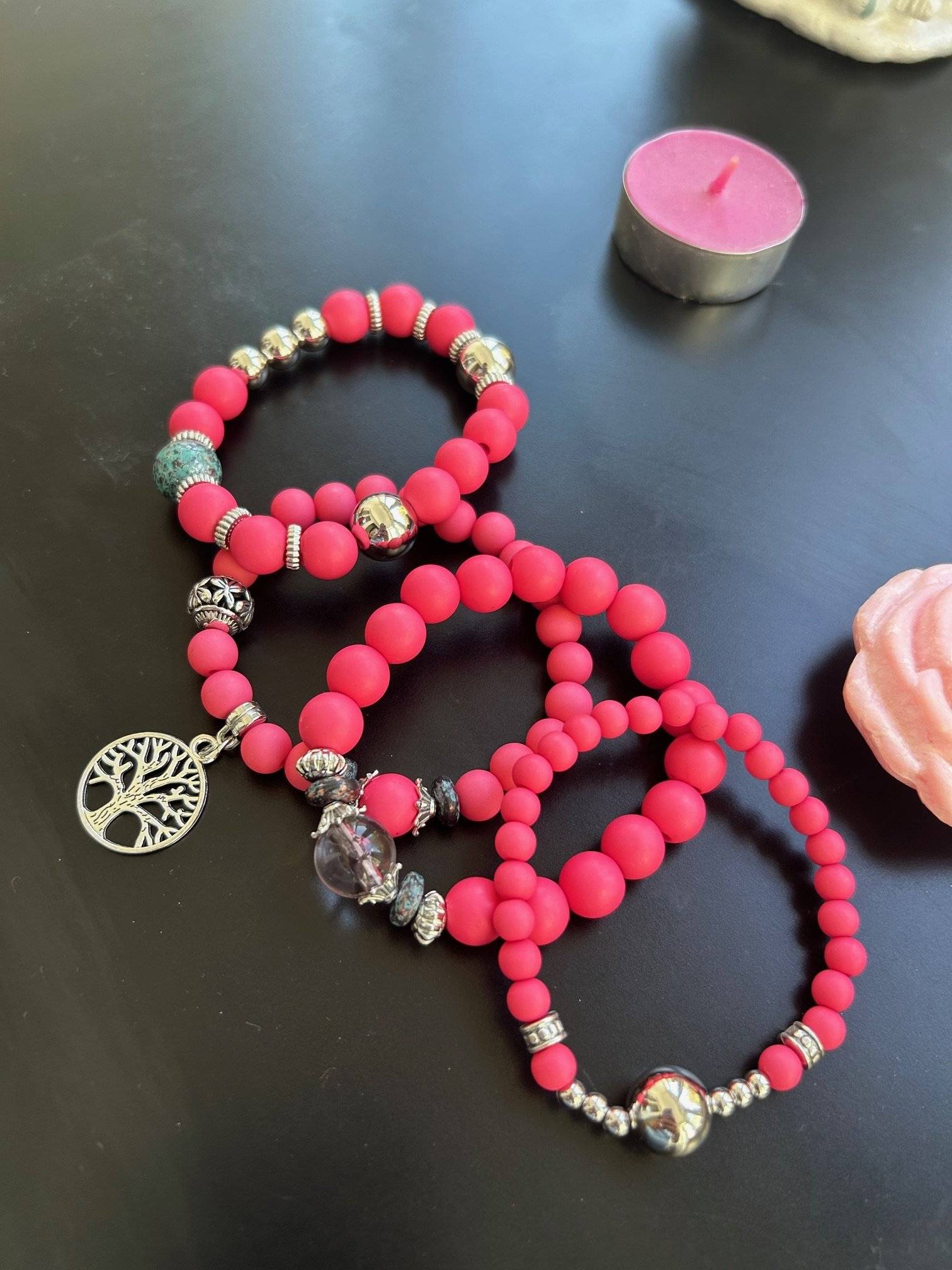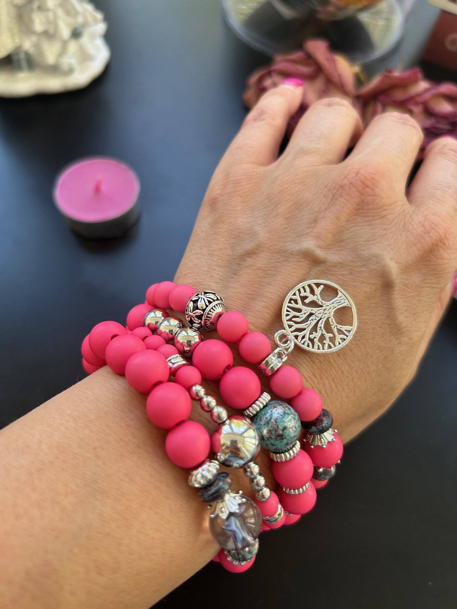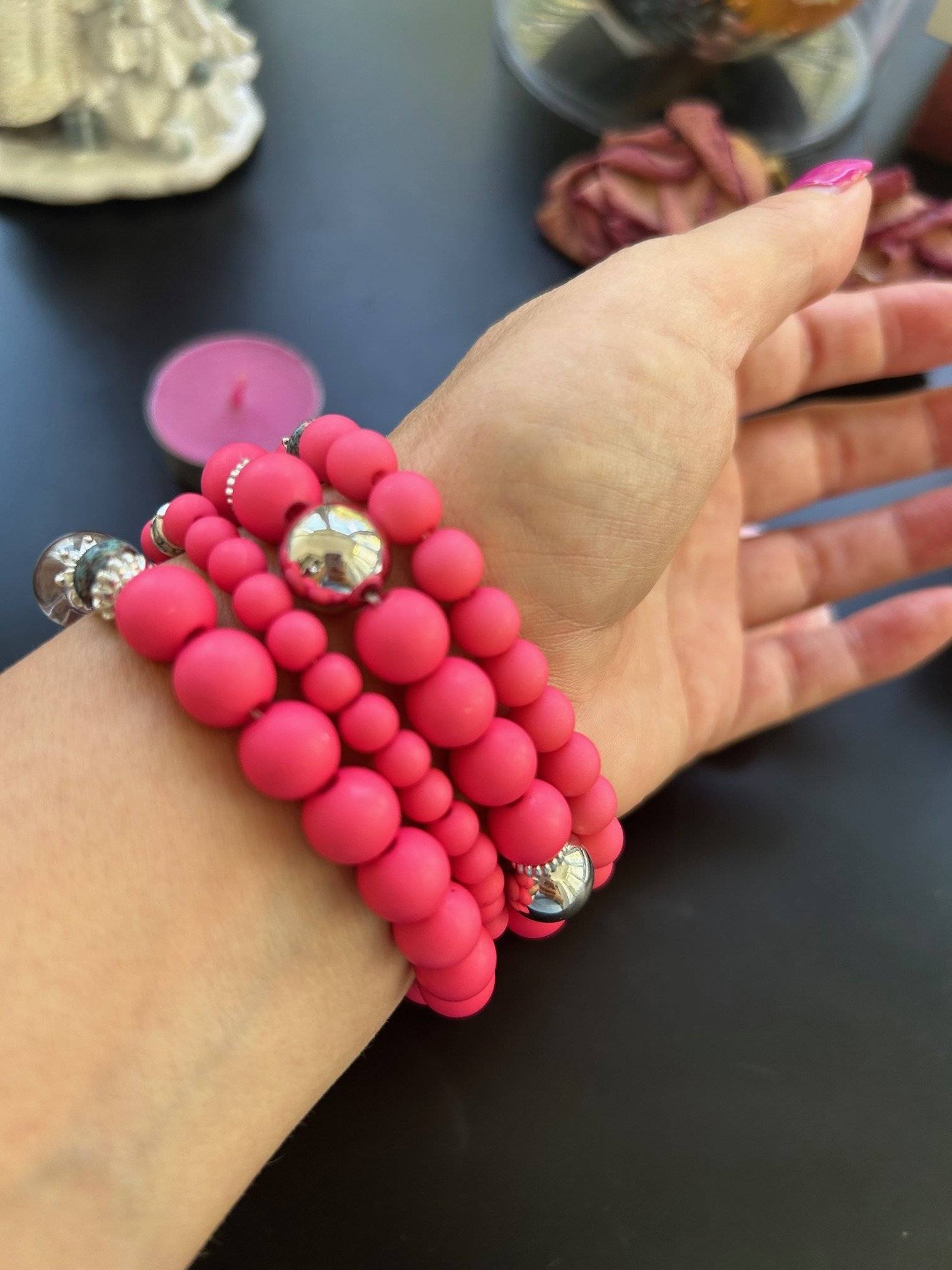 Set de 4 brățări - fantezie cu sfere acrilice de diferite dimensiuni și inserții metalice.