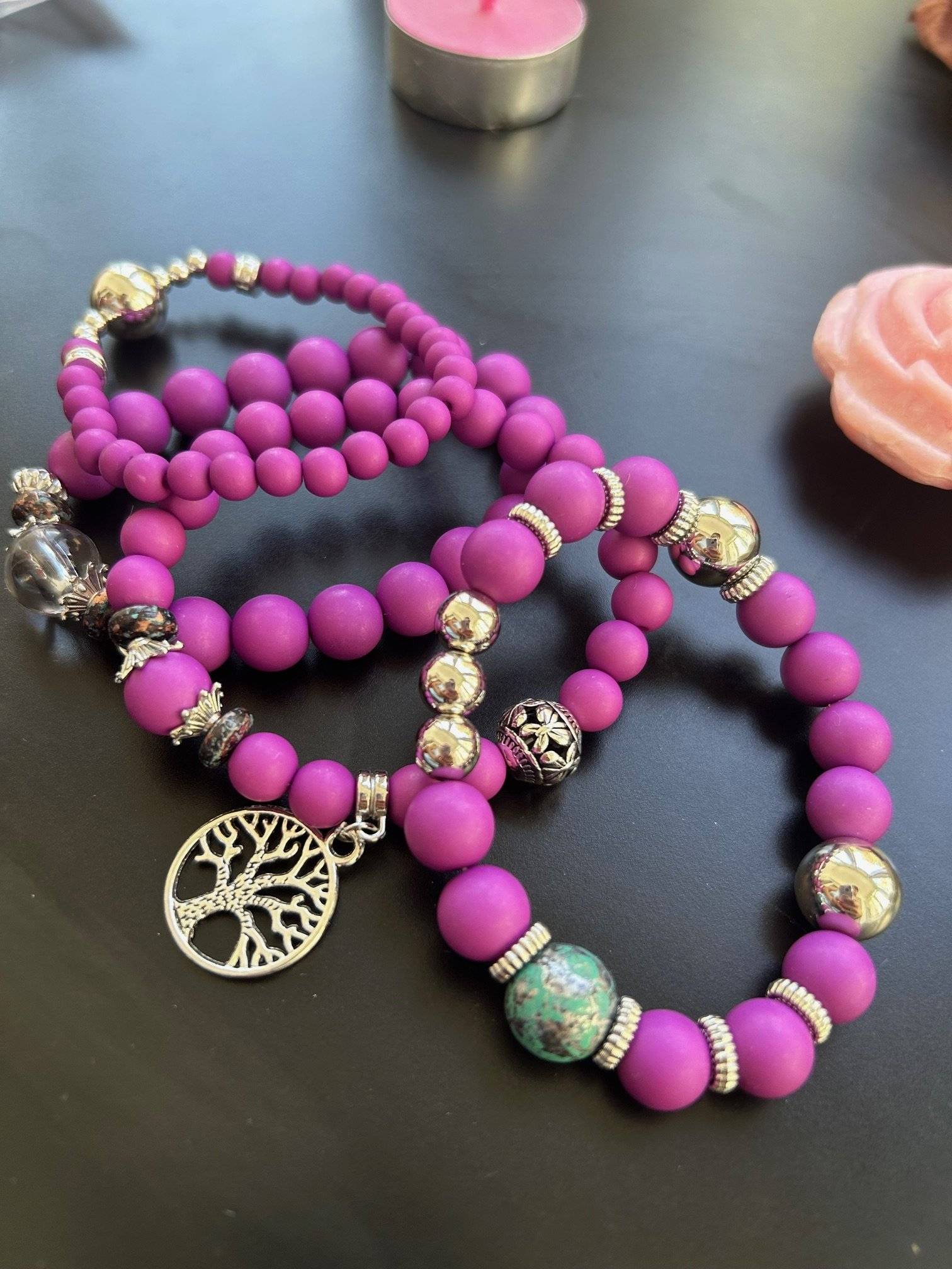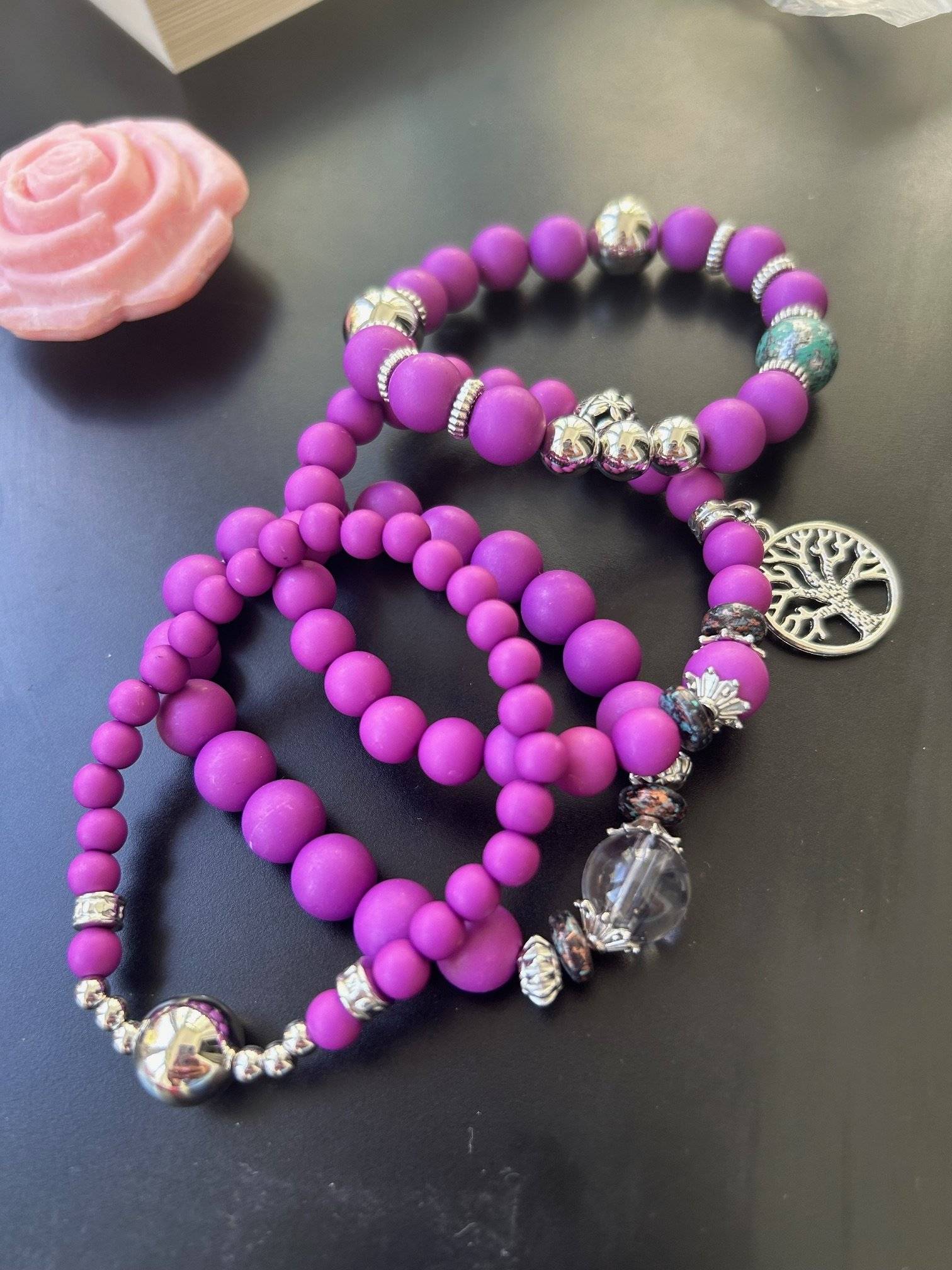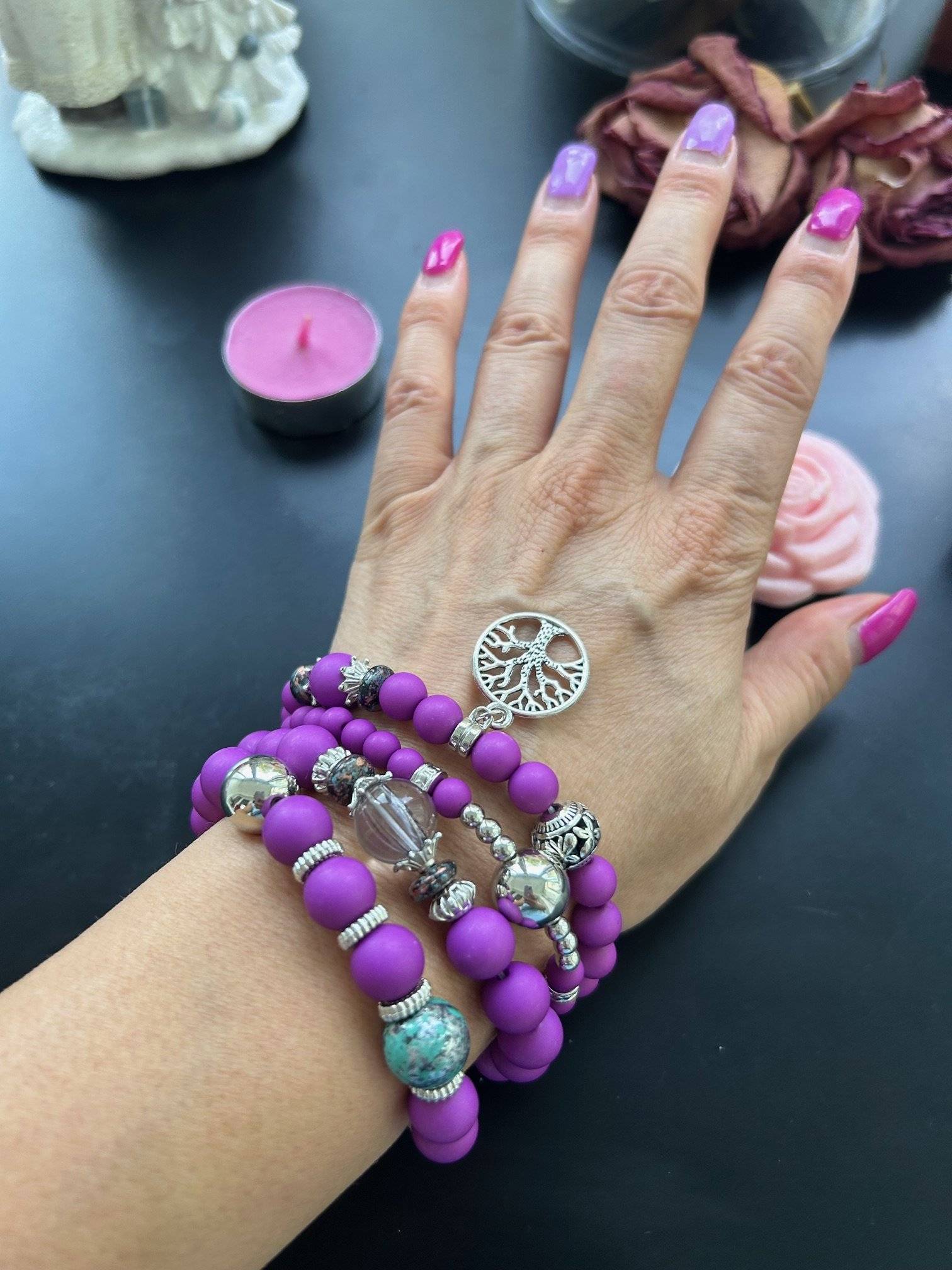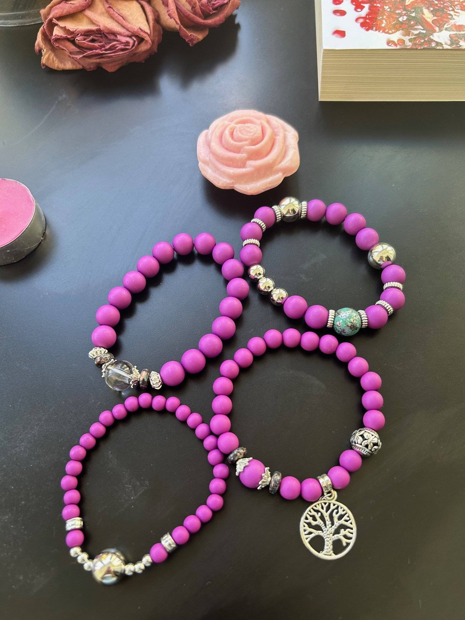 Set de 4 brățări - fantezie cu sfere acrilice de diferite dimensiuni și inserții metalice.