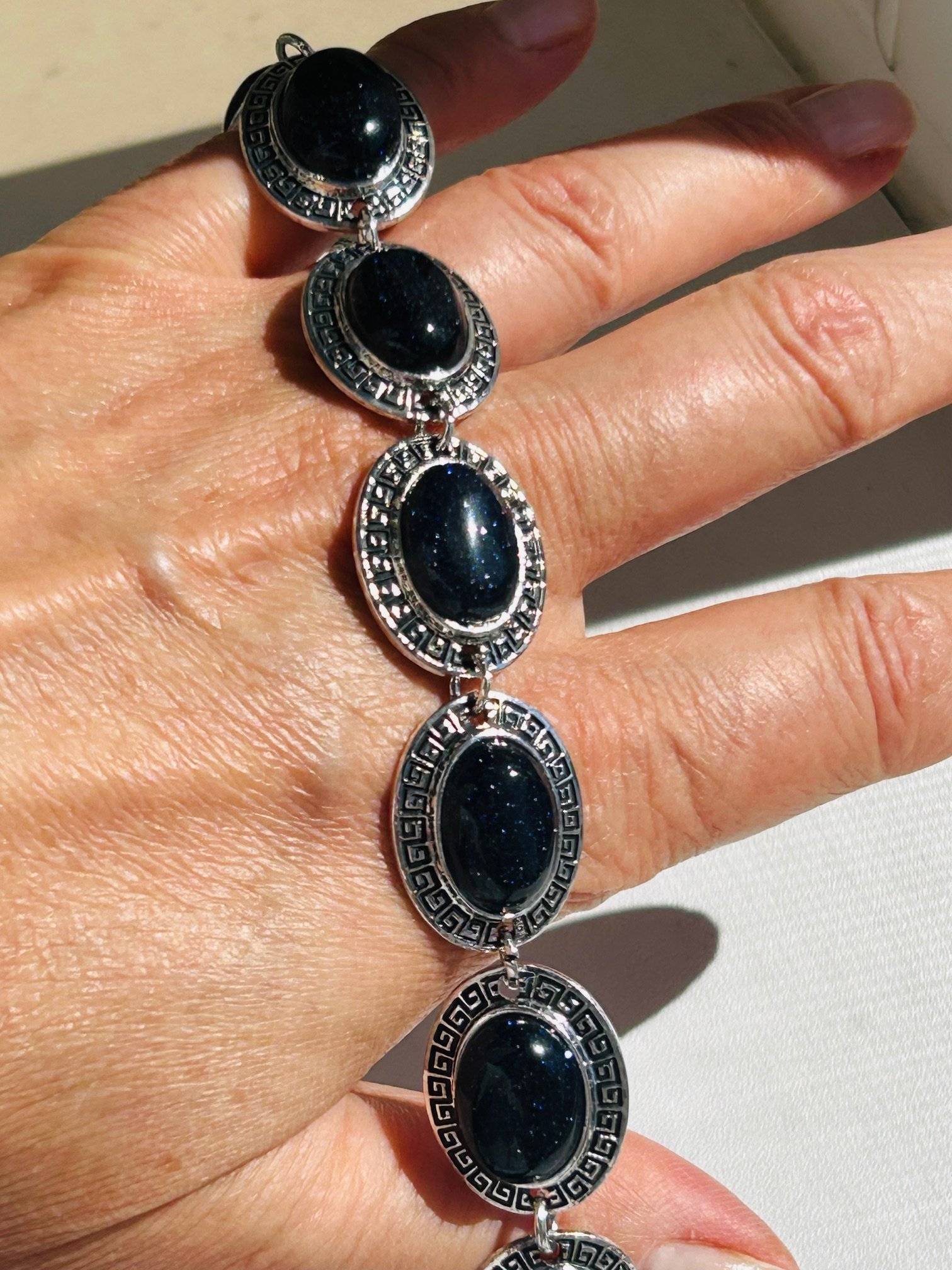- brățară supradimensionată din aliaj inoxidabil cu montură piatră sintetică goldstone albastru.